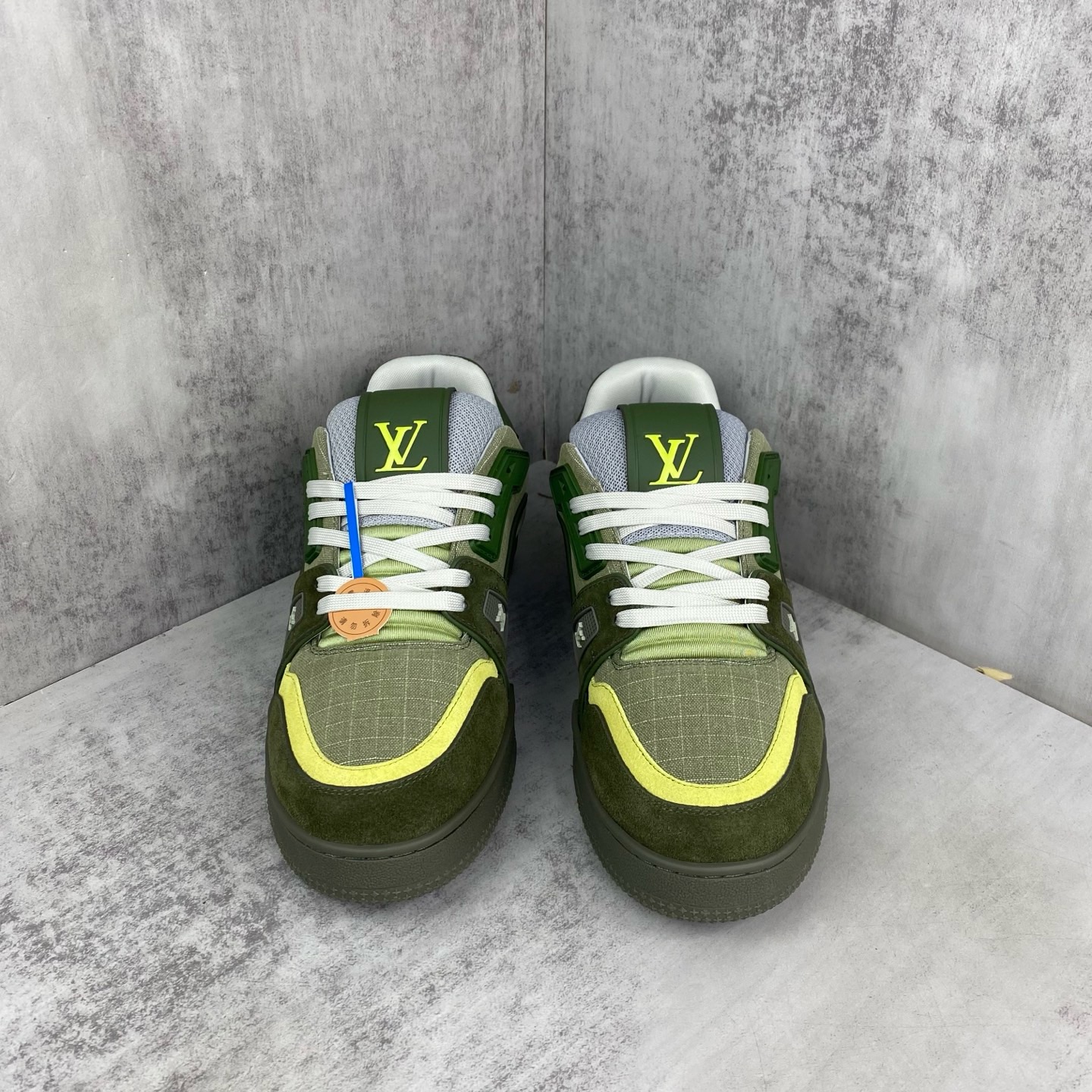 这款鞋子是AAAAA 1:1 质量 (非常棒). 使用了和原版一模一样的材料. 商标部分也保持了和路易威登/Louis Vuitton一样. 图片拍摄是实物鞋子拍摄, 您所收到的实物保证和我们图片一模一样.