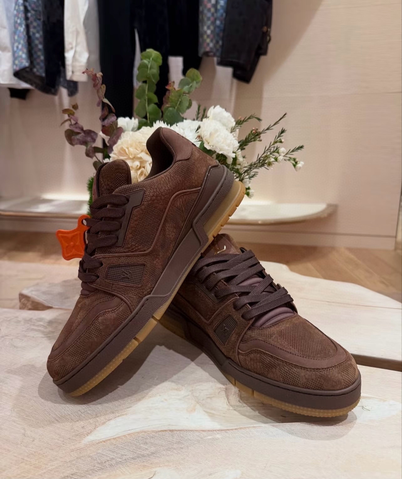 这款鞋子是AAAAA 1:1 质量 (非常棒). 使用了和原版一模一样的材料. 商标部分也保持了和路易威登/Louis Vuitton一样. 图片拍摄是实物鞋子拍摄, 您所收到的实物保证和我们图片一模一样.