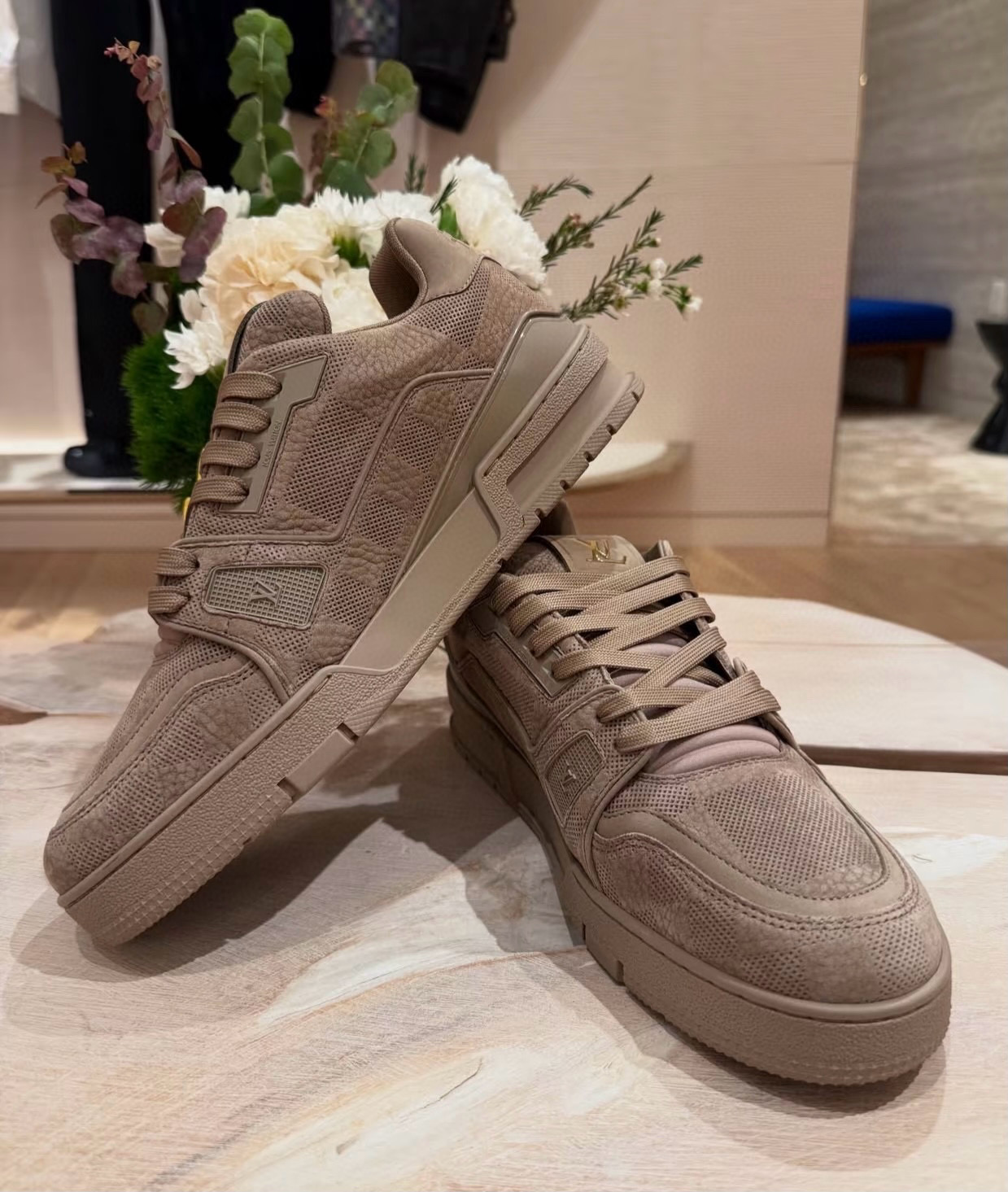 这款鞋子是AAAAA 1:1 质量 (非常棒). 使用了和原版一模一样的材料. 商标部分也保持了和路易威登/Louis Vuitton一样. 图片拍摄是实物鞋子拍摄, 您所收到的实物保证和我们图片一模一样.
