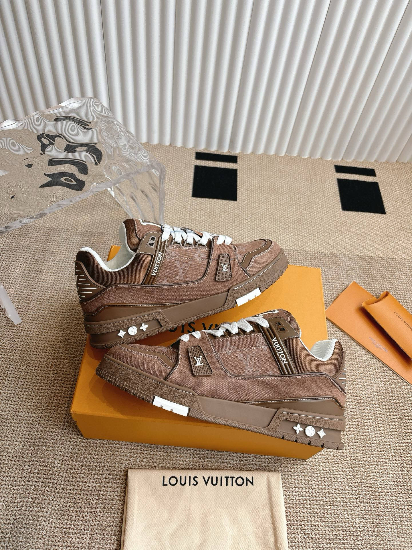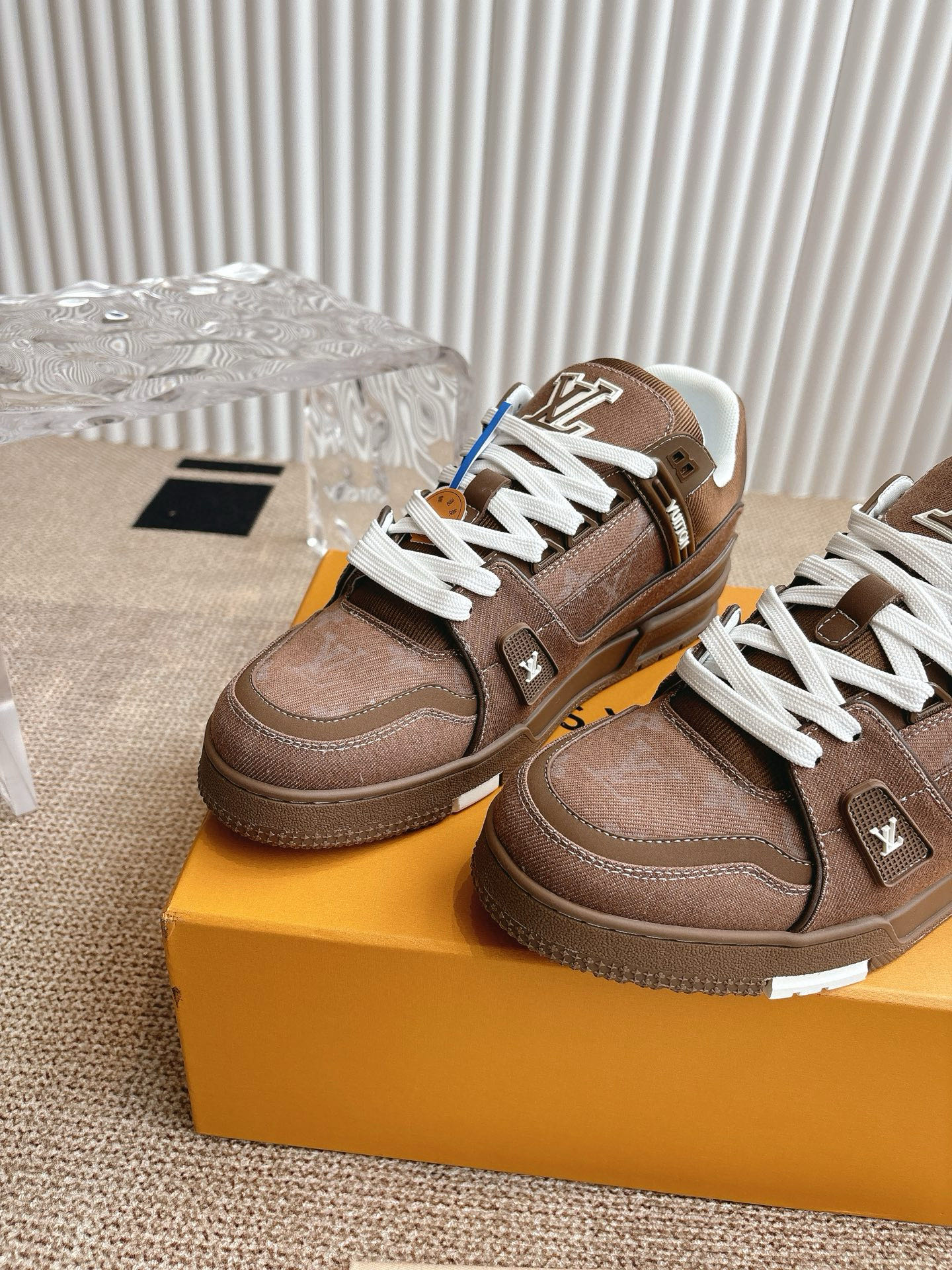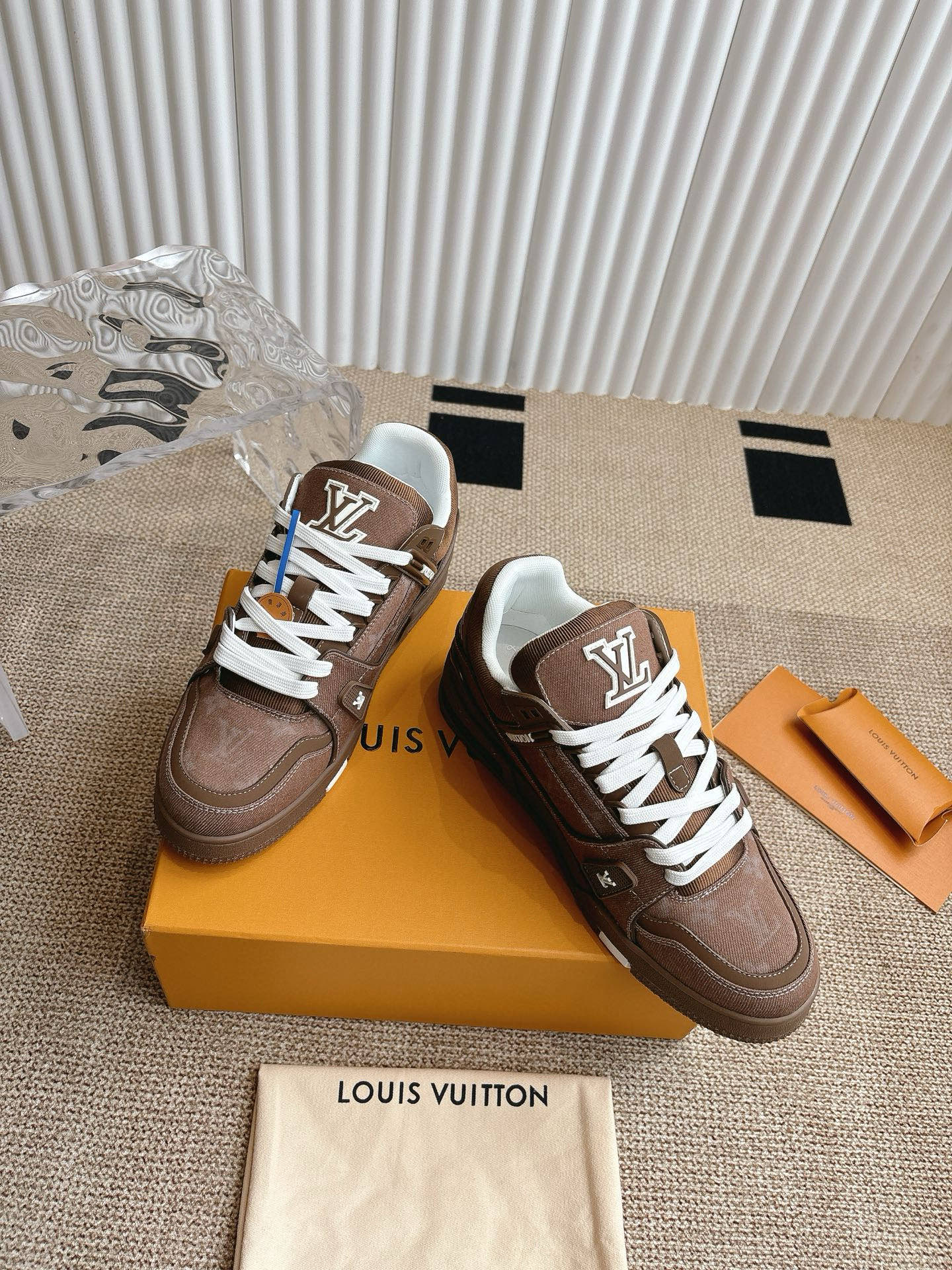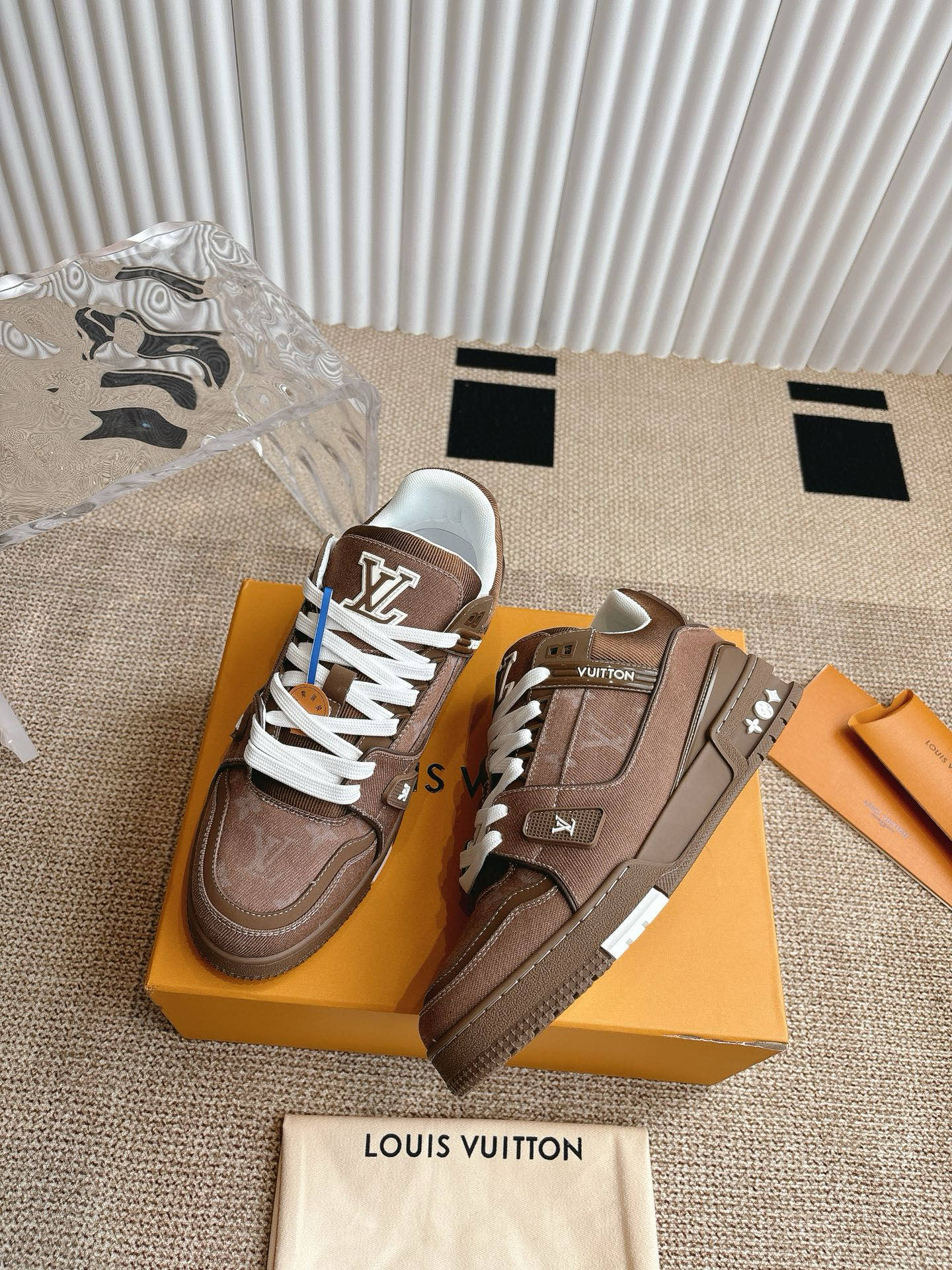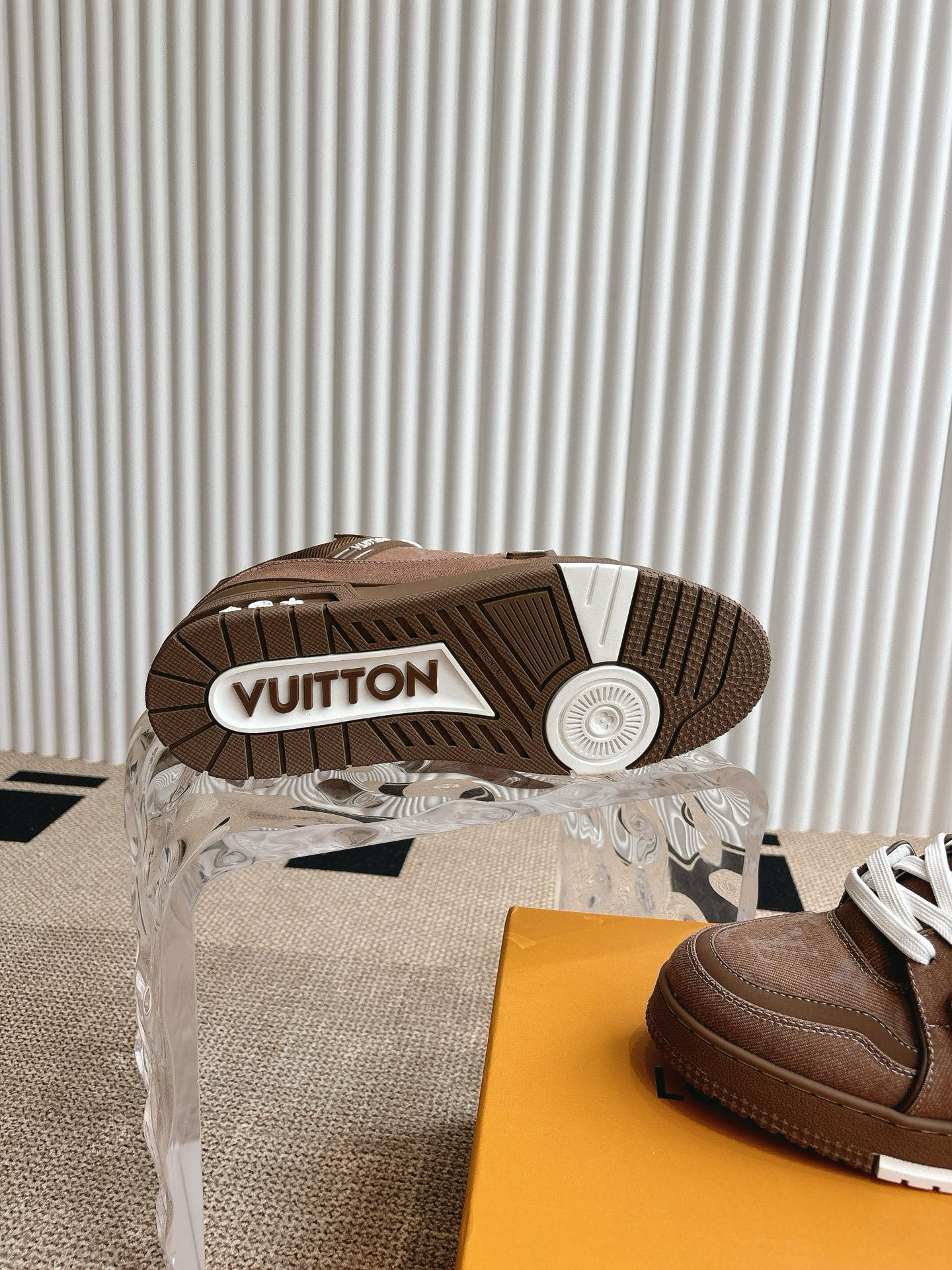 这款鞋子是AAAAA 1:1 质量 (非常棒). 使用了和原版一模一样的材料. 商标部分也保持了和路易威登/Louis Vuitton一样. 图片拍摄是实物鞋子拍摄, 您所收到的实物保证和我们图片一模一样.