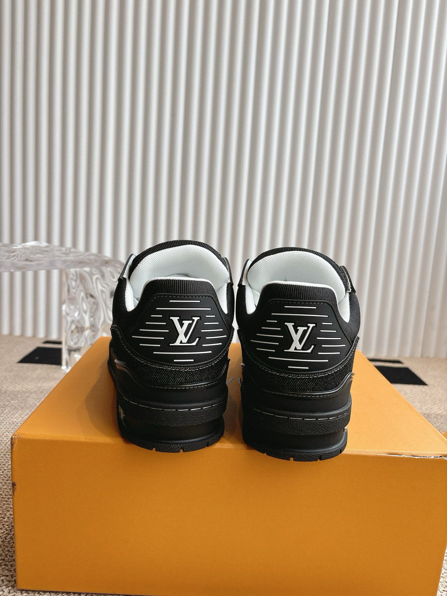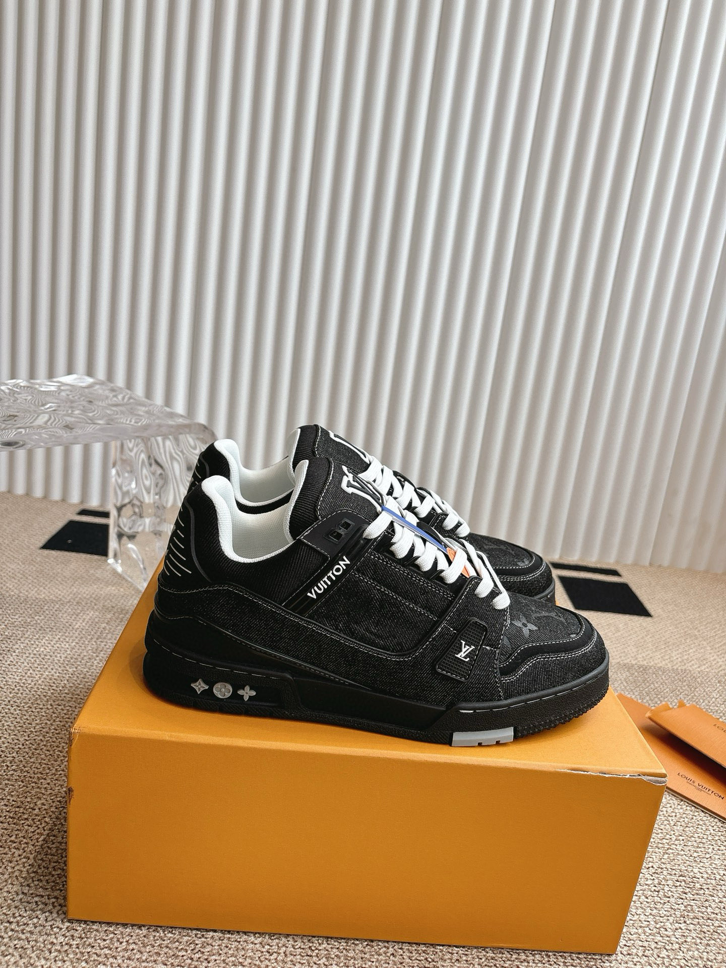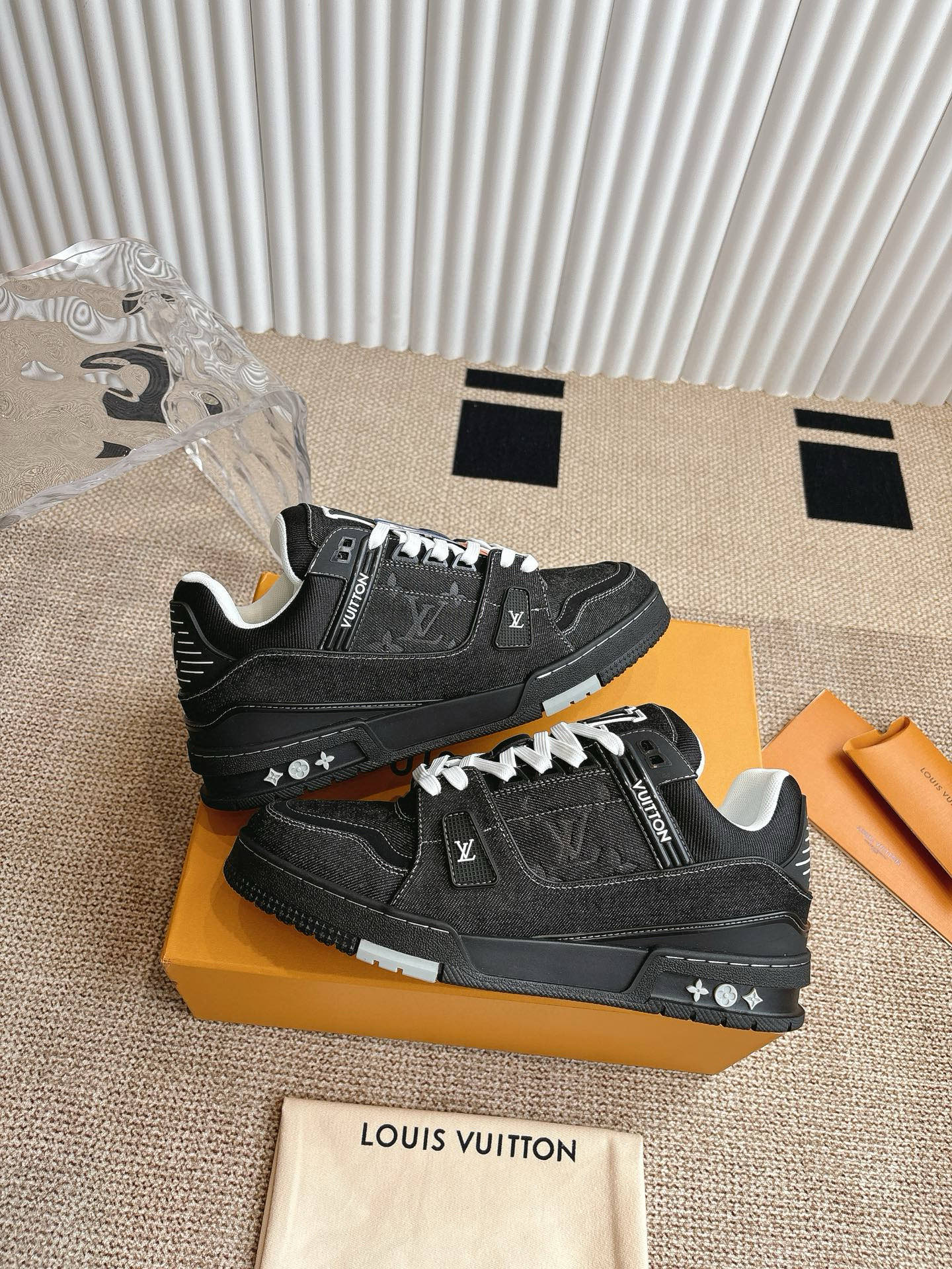 这款鞋子是AAAAA 1:1 质量 (非常棒). 使用了和原版一模一样的材料. 商标部分也保持了和路易威登/Louis Vuitton一样. 图片拍摄是实物鞋子拍摄, 您所收到的实物保证和我们图片一模一样.