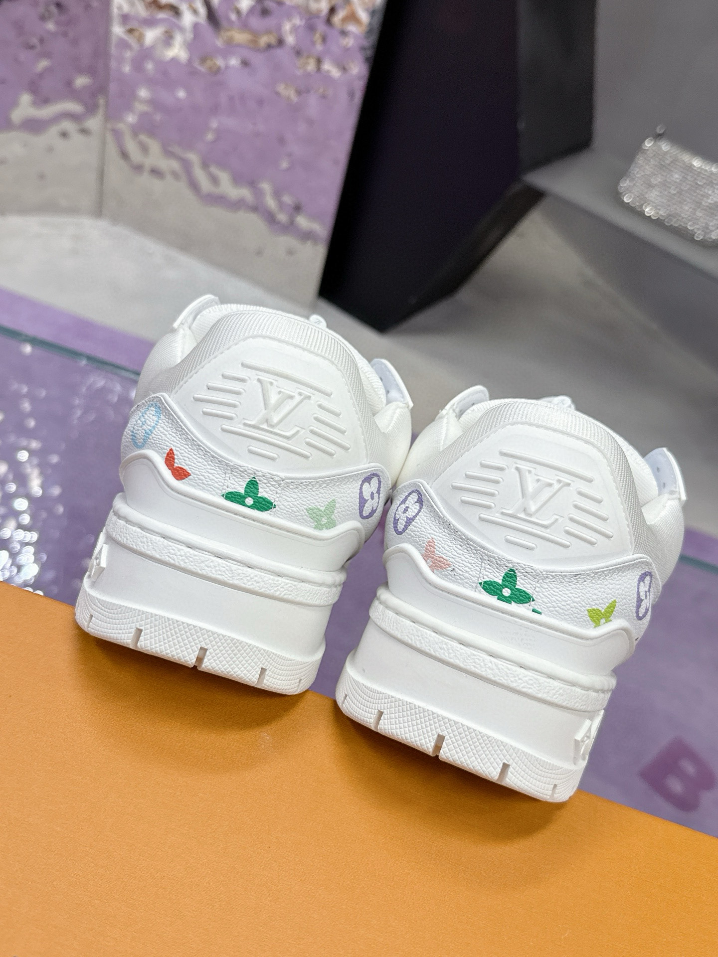 这款鞋子是AAAAA 1:1 质量 (非常棒). 使用了和原版一模一样的材料. 商标部分也保持了和路易威登/Louis Vuitton一样. 图片拍摄是实物鞋子拍摄, 您所收到的实物保证和我们图片一模一样.