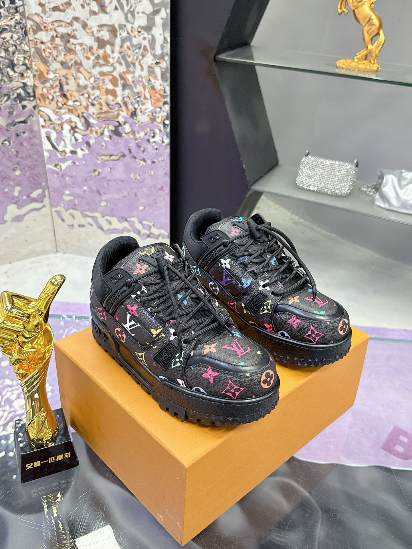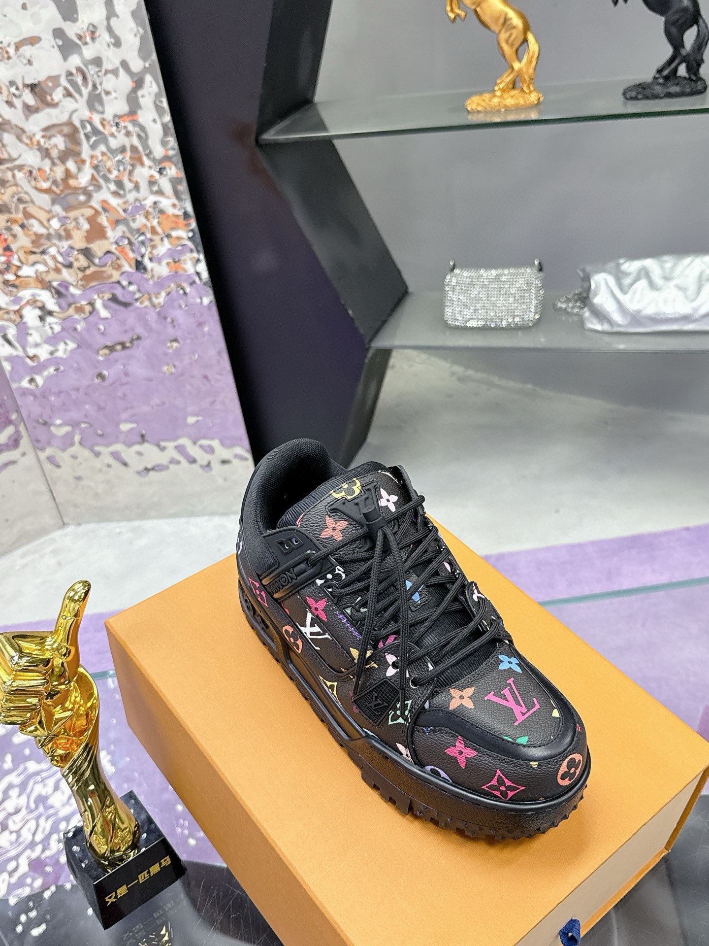 这款鞋子是AAAAA 1:1 质量 (非常棒). 使用了和原版一模一样的材料. 商标部分也保持了和路易威登/Louis Vuitton一样. 图片拍摄是实物鞋子拍摄, 您所收到的实物保证和我们图片一模一样.