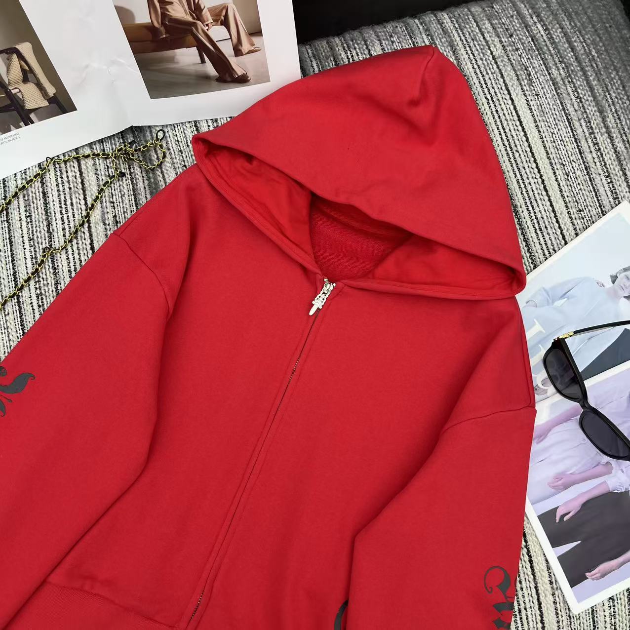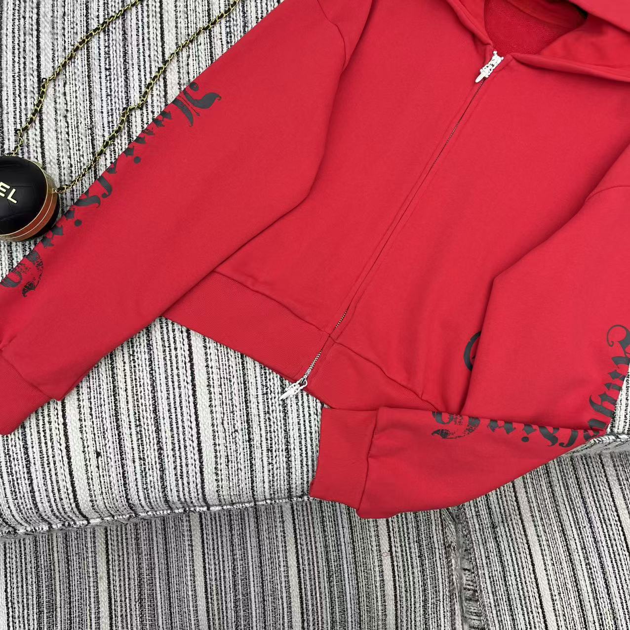 这款衣服是AAAAA 1:1 质量 (非常棒). 使用了和原版一模一样的材料. 商标部分也保持了和克罗心/Chrome Hearts一样. 图片拍摄是实物衣服拍摄, 您所收到的实物保证和我们图片一模一样.