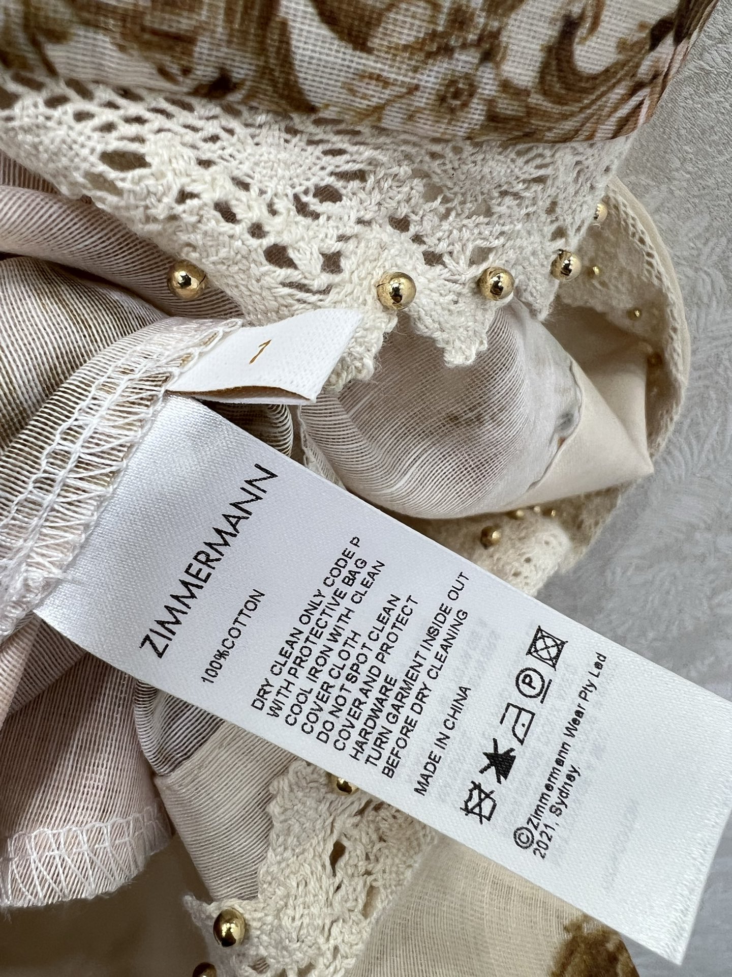 这款衣服是AAAAA 1:1 质量 (非常棒). 使用了和原版一模一样的材料. 商标部分也保持了和ZIMMERMANN一样. 图片拍摄是实物衣服拍摄, 您所收到的实物保证和我们图片一模一样.