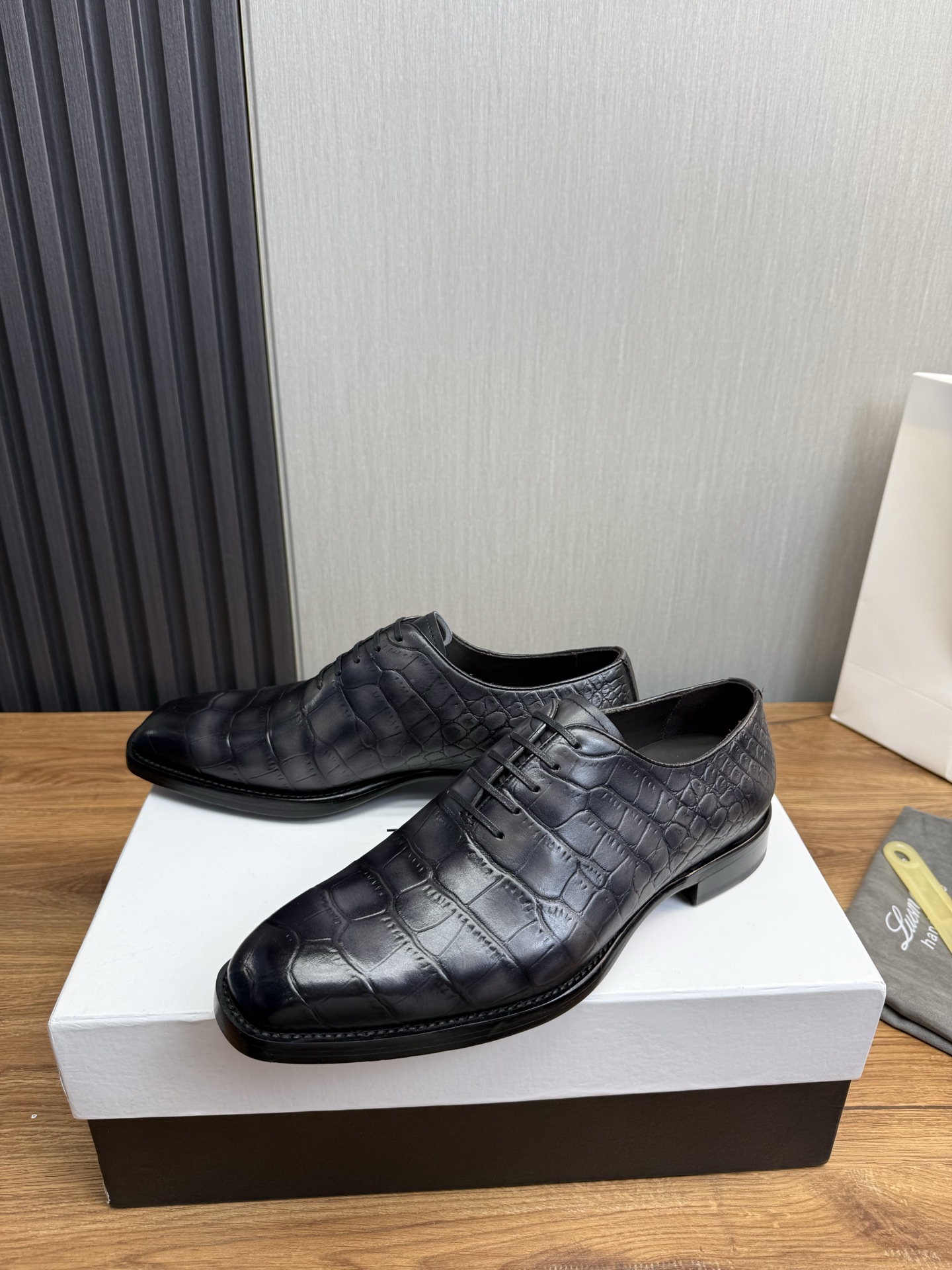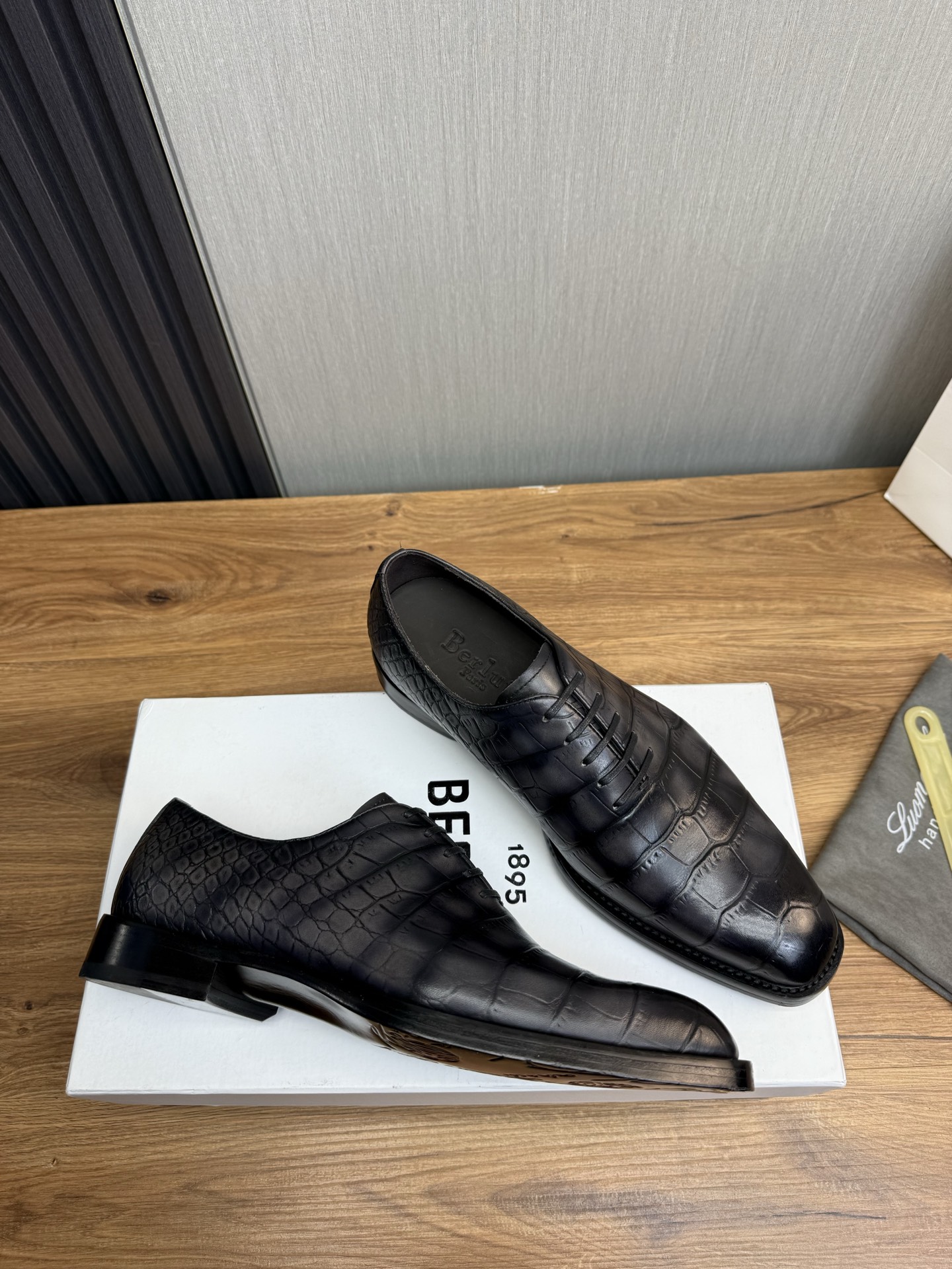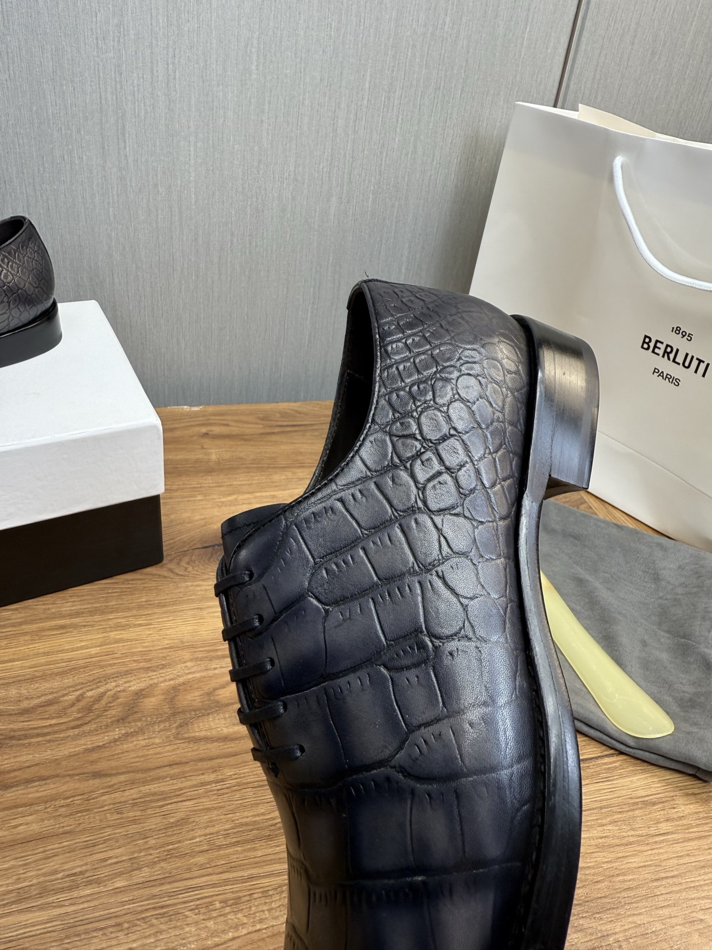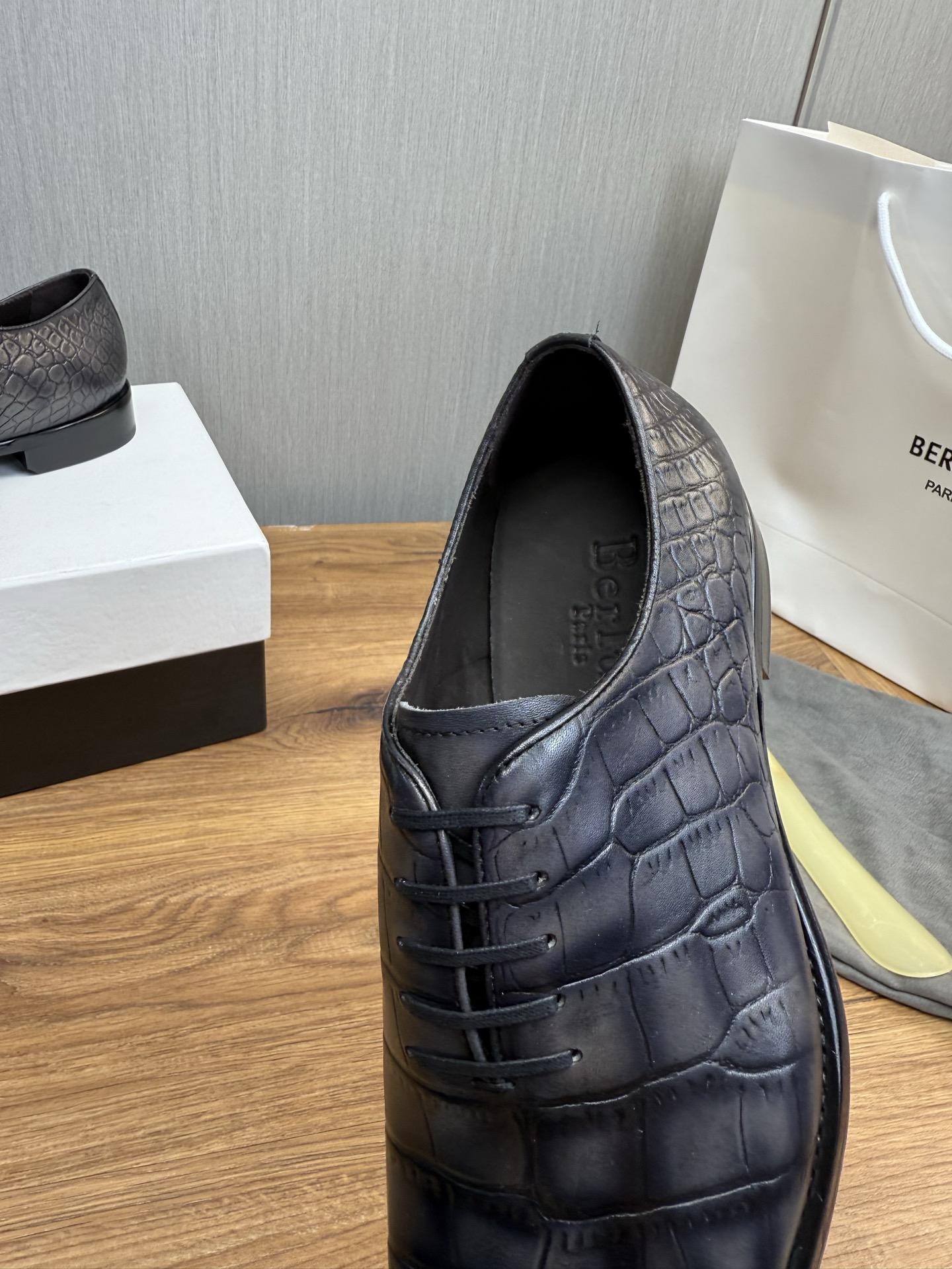 这款鞋子是AAAAA 1:1 质量 (非常棒). 使用了和原版一模一样的材料. 商标部分也保持了和Berluti一样. 图片拍摄是实物鞋子拍摄, 您所收到的实物保证和我们图片一模一样.