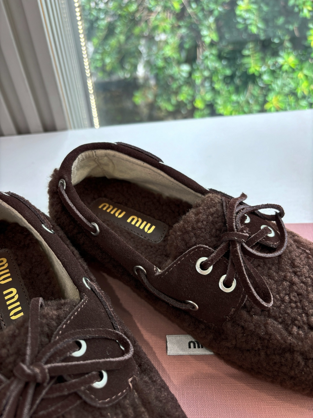 这款鞋子是AAAAA 1:1 质量 (非常棒). 使用了和原版一模一样的材料. 商标部分也保持了和缪缪/Miu Miu一样. 图片拍摄是实物鞋子拍摄, 您所收到的实物保证和我们图片一模一样.