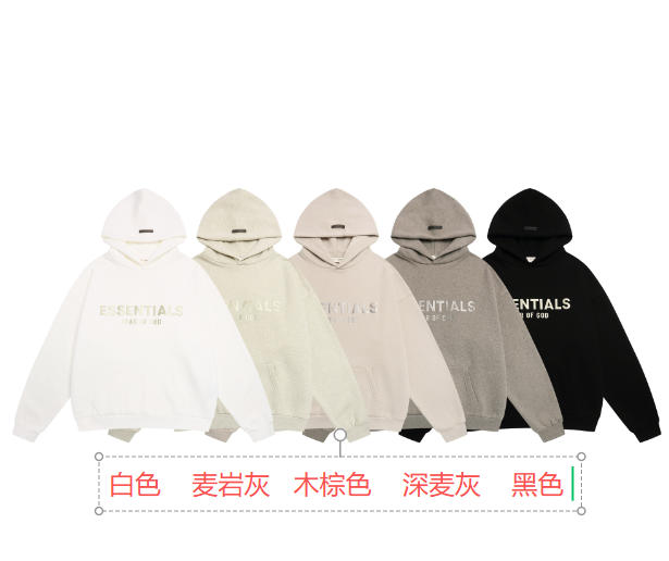 这款衣服是AAAAA 1:1 质量 (非常棒). 使用了和原版一模一样的材料. 商标部分也保持了和ESSENTIALS一样. 图片拍摄是实物衣服拍摄, 您所收到的实物保证和我们图片一模一样.