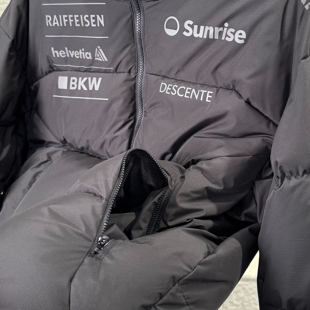 这款衣服是AAAAA 1:1 质量 (非常棒). 使用了和原版一模一样的材料. 商标部分也保持了和Descente一样. 图片拍摄是实物衣服拍摄, 您所收到的实物保证和我们图片一模一样.