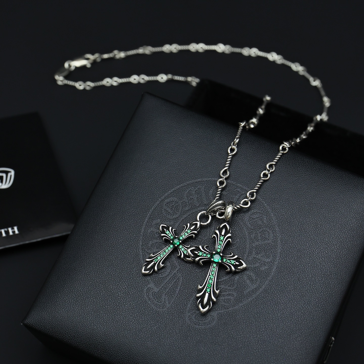 这款首饰是AAAAA 1:1 质量 (非常棒). 使用了和原版一模一样的材料. 商标部分也保持了和克罗心/Chrome Hearts一样. 图片拍摄是实物首饰拍摄, 您所收到的实物保证和我们图片一模一样.