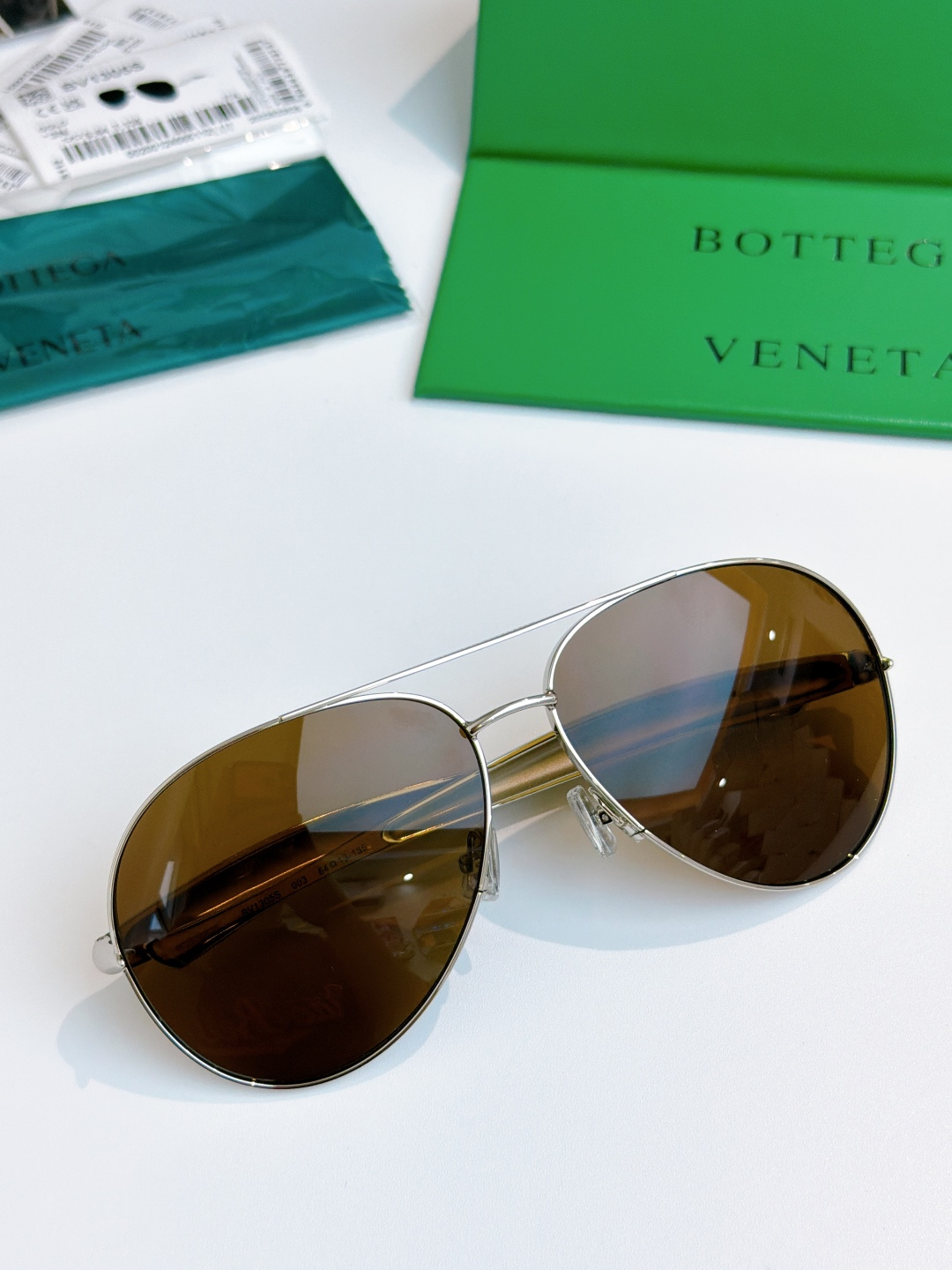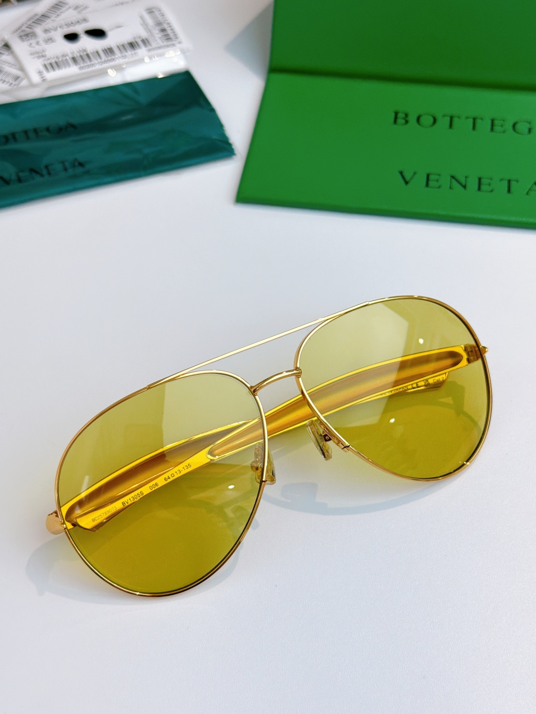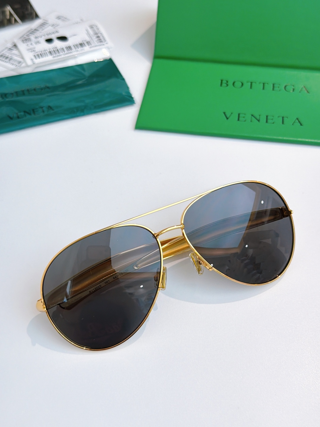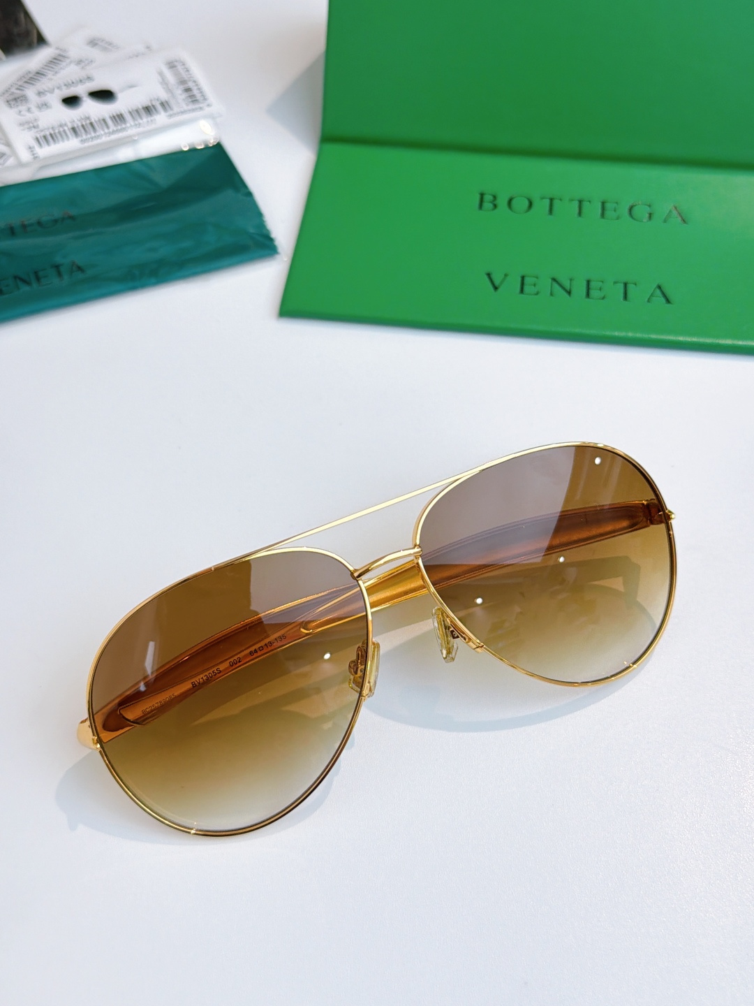 这款太阳眼镜是AAAAA 1:1 质量 (非常棒). 使用了和原版一模一样的材料. 商标部分也保持了和葆蝶家/Bottega Veneta一样. 图片拍摄是实物太阳眼镜拍摄, 您所收到的实物保证和我们图片一模一样.