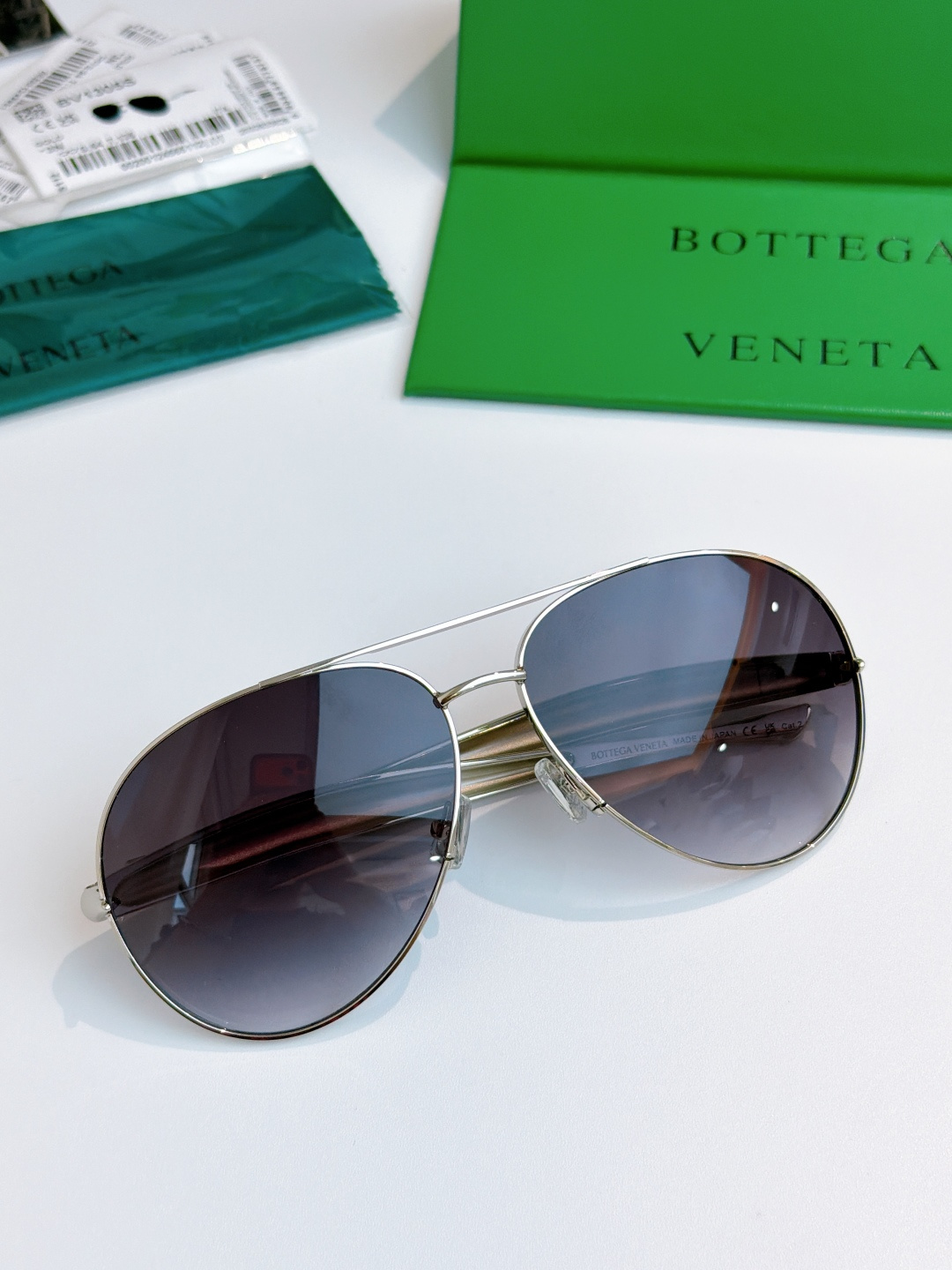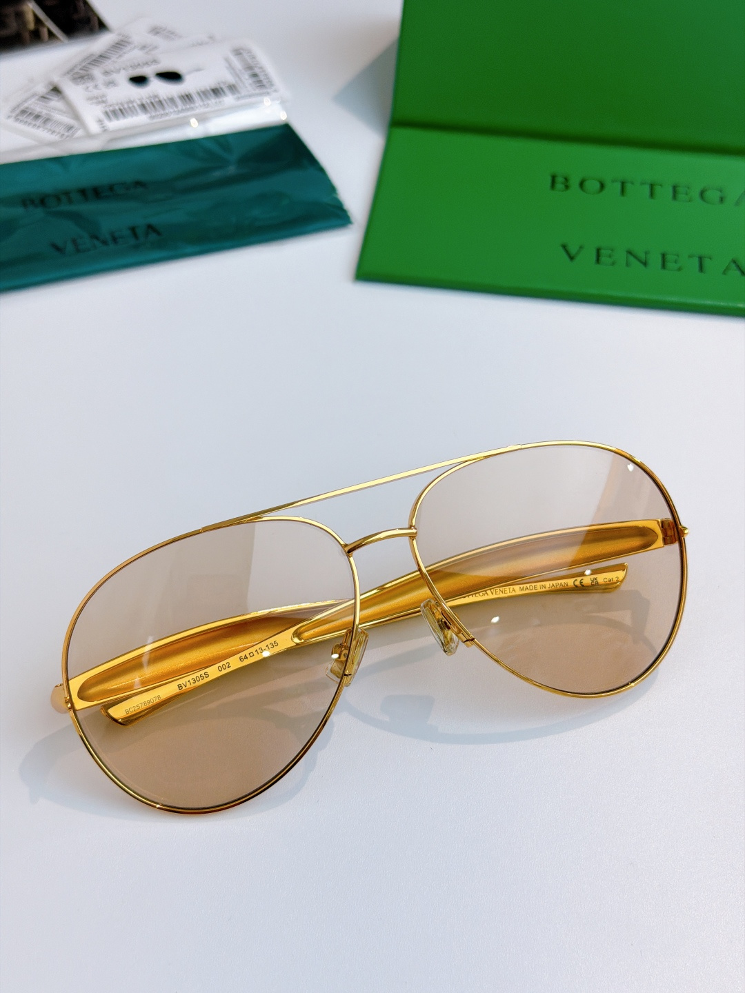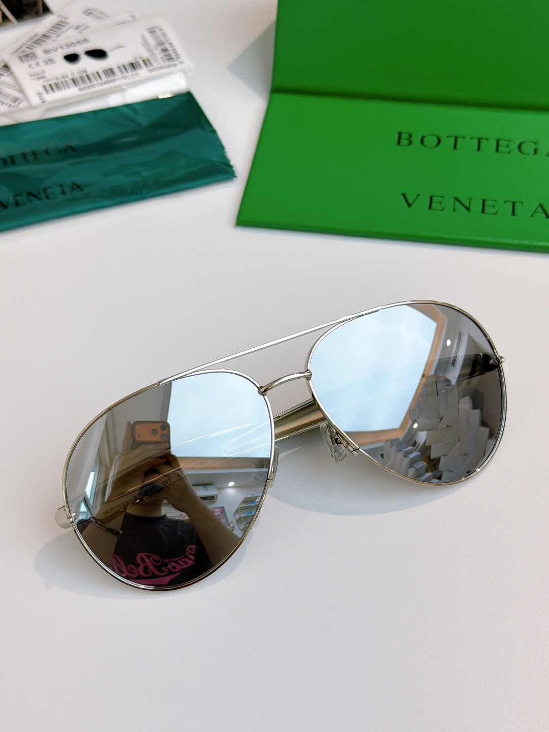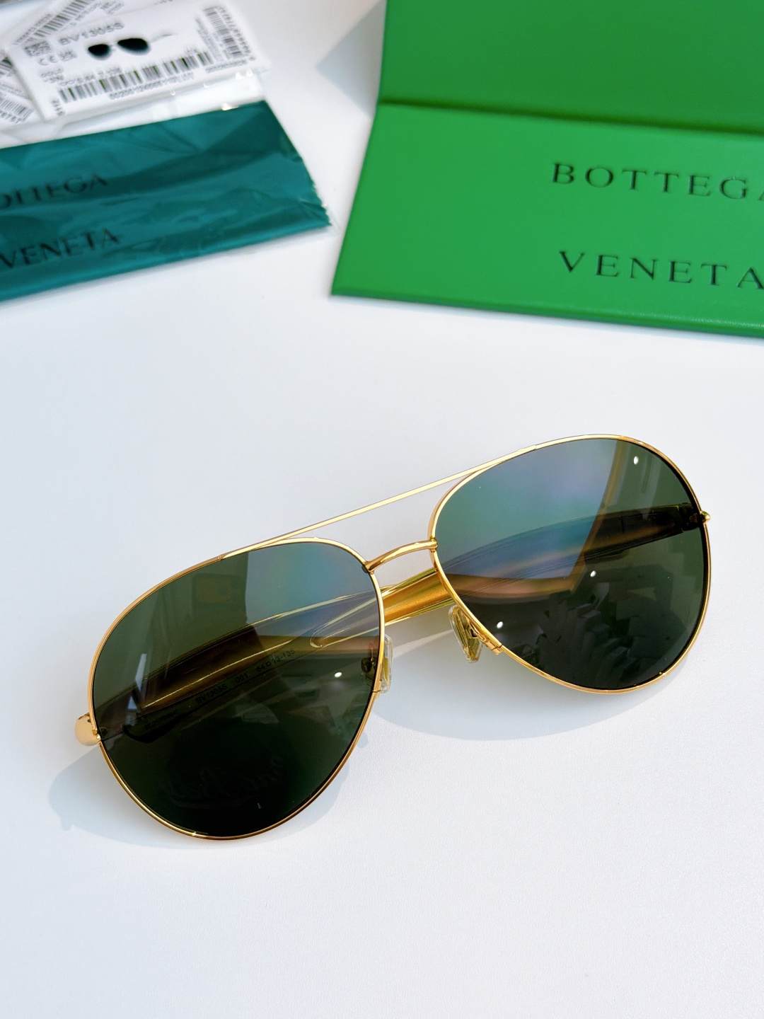 这款太阳眼镜是AAAAA 1:1 质量 (非常棒). 使用了和原版一模一样的材料. 商标部分也保持了和葆蝶家/Bottega Veneta一样. 图片拍摄是实物太阳眼镜拍摄, 您所收到的实物保证和我们图片一模一样.
