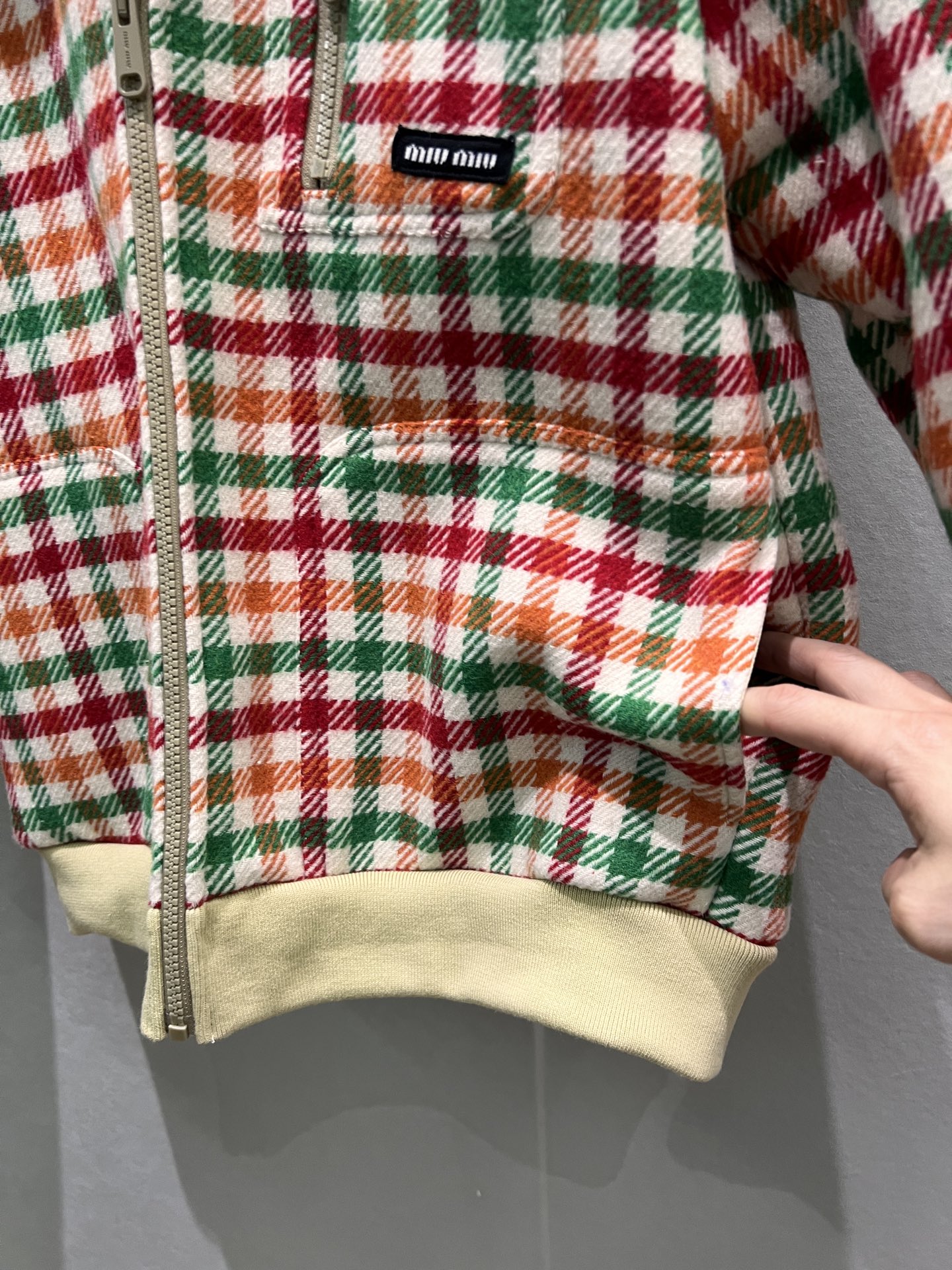 这款衣服是AAAAA 1:1 质量 (非常棒). 使用了和原版一模一样的材料. 商标部分也保持了和缪缪/Miu Miu一样. 图片拍摄是实物衣服拍摄, 您所收到的实物保证和我们图片一模一样.
