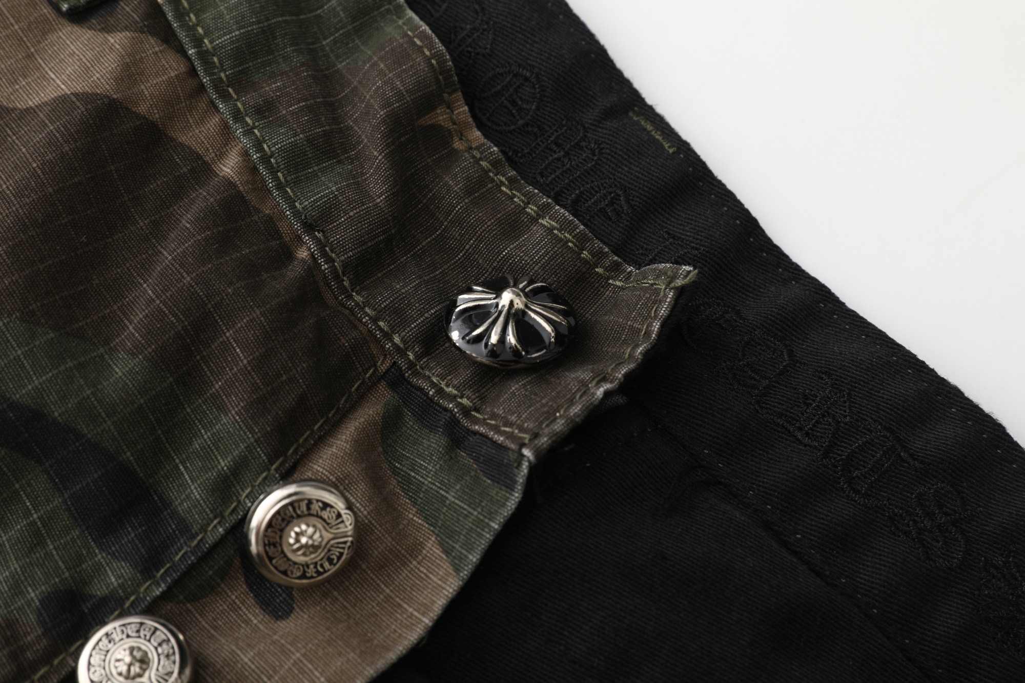 这款衣服是AAAAA 1:1 质量 (非常棒). 使用了和原版一模一样的材料. 商标部分也保持了和克罗心/Chrome Hearts一样. 图片拍摄是实物衣服拍摄, 您所收到的实物保证和我们图片一模一样.