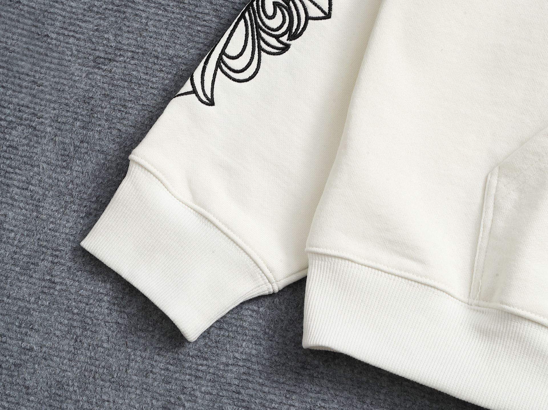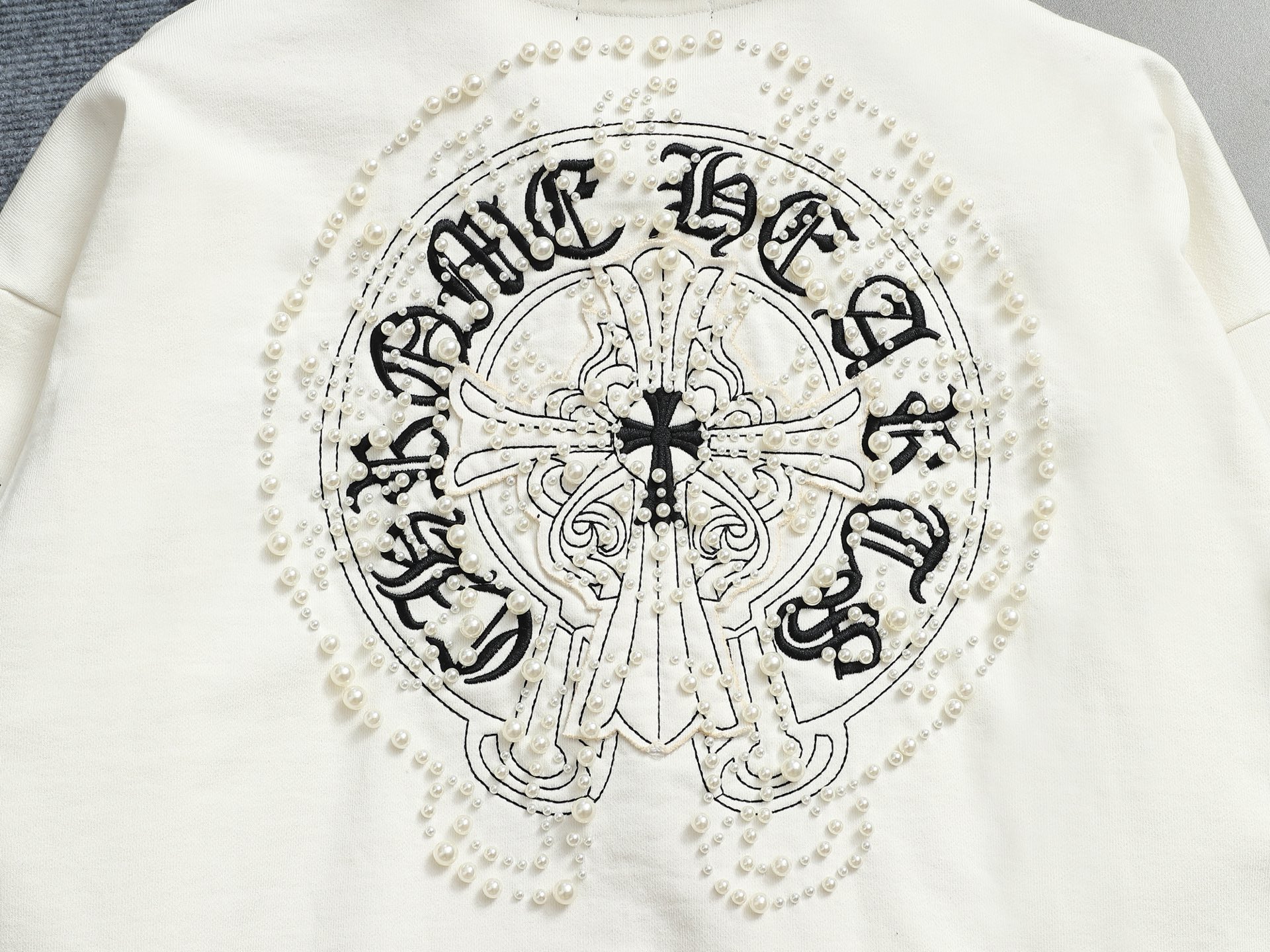 这款衣服是AAAAA 1:1 质量 (非常棒). 使用了和原版一模一样的材料. 商标部分也保持了和克罗心/Chrome Hearts一样. 图片拍摄是实物衣服拍摄, 您所收到的实物保证和我们图片一模一样.