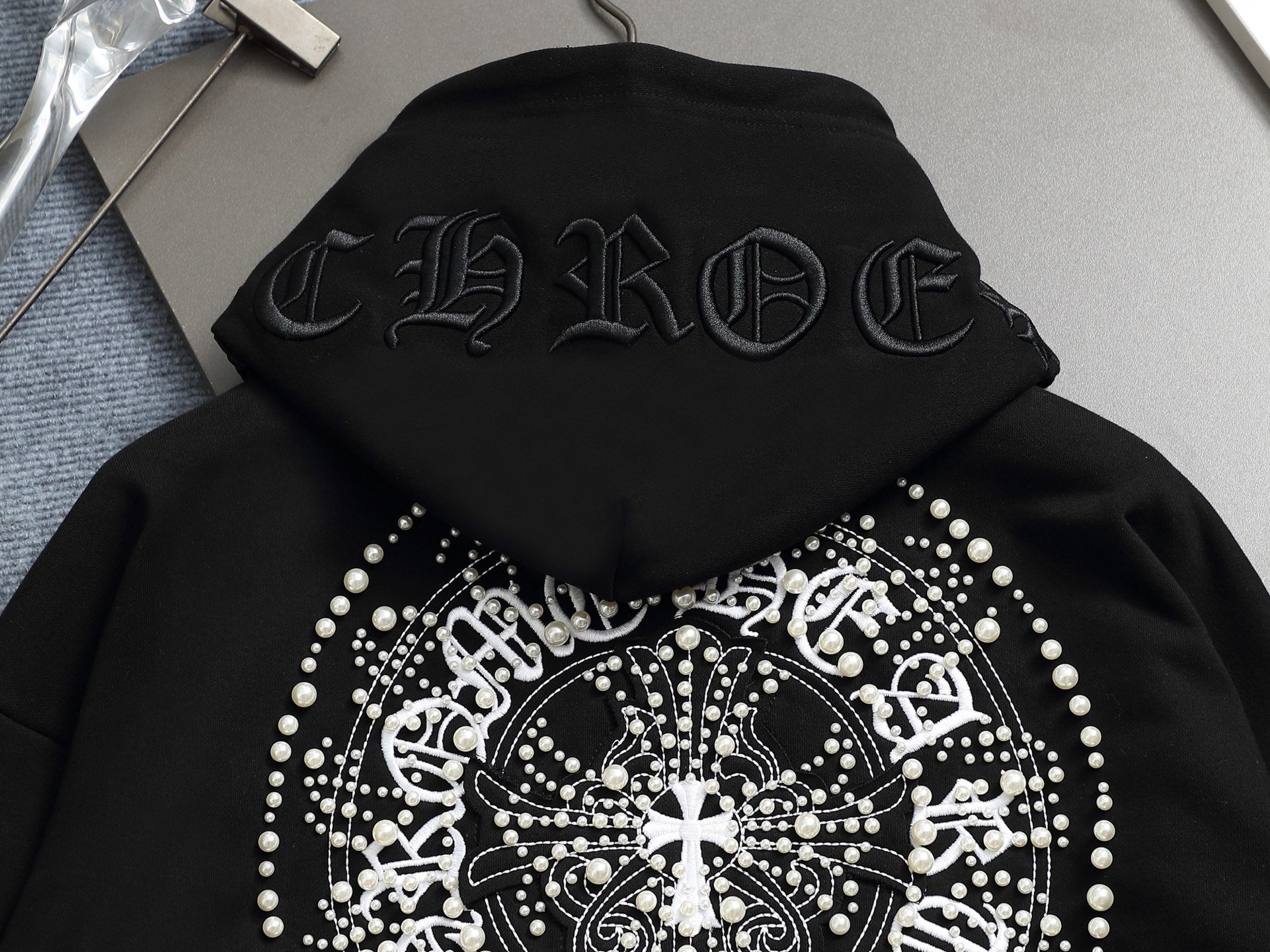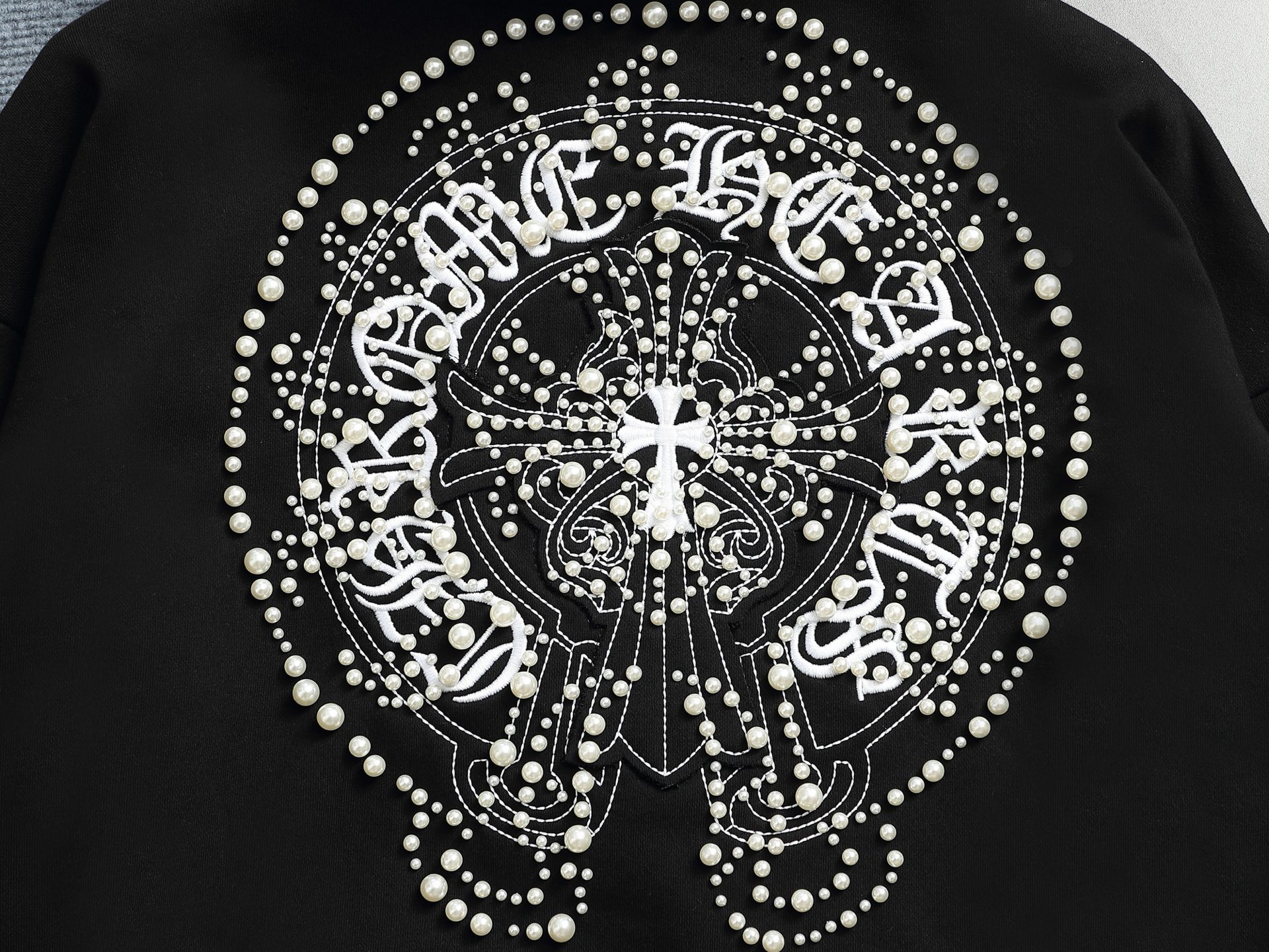 这款衣服是AAAAA 1:1 质量 (非常棒). 使用了和原版一模一样的材料. 商标部分也保持了和克罗心/Chrome Hearts一样. 图片拍摄是实物衣服拍摄, 您所收到的实物保证和我们图片一模一样.