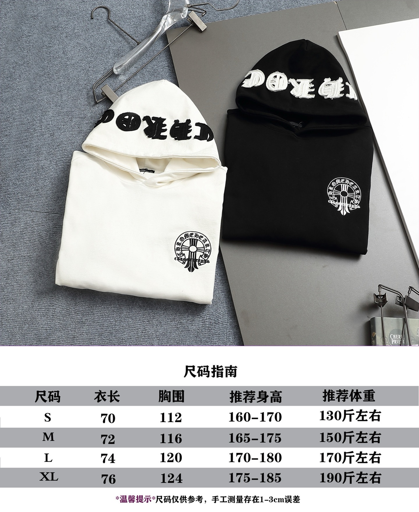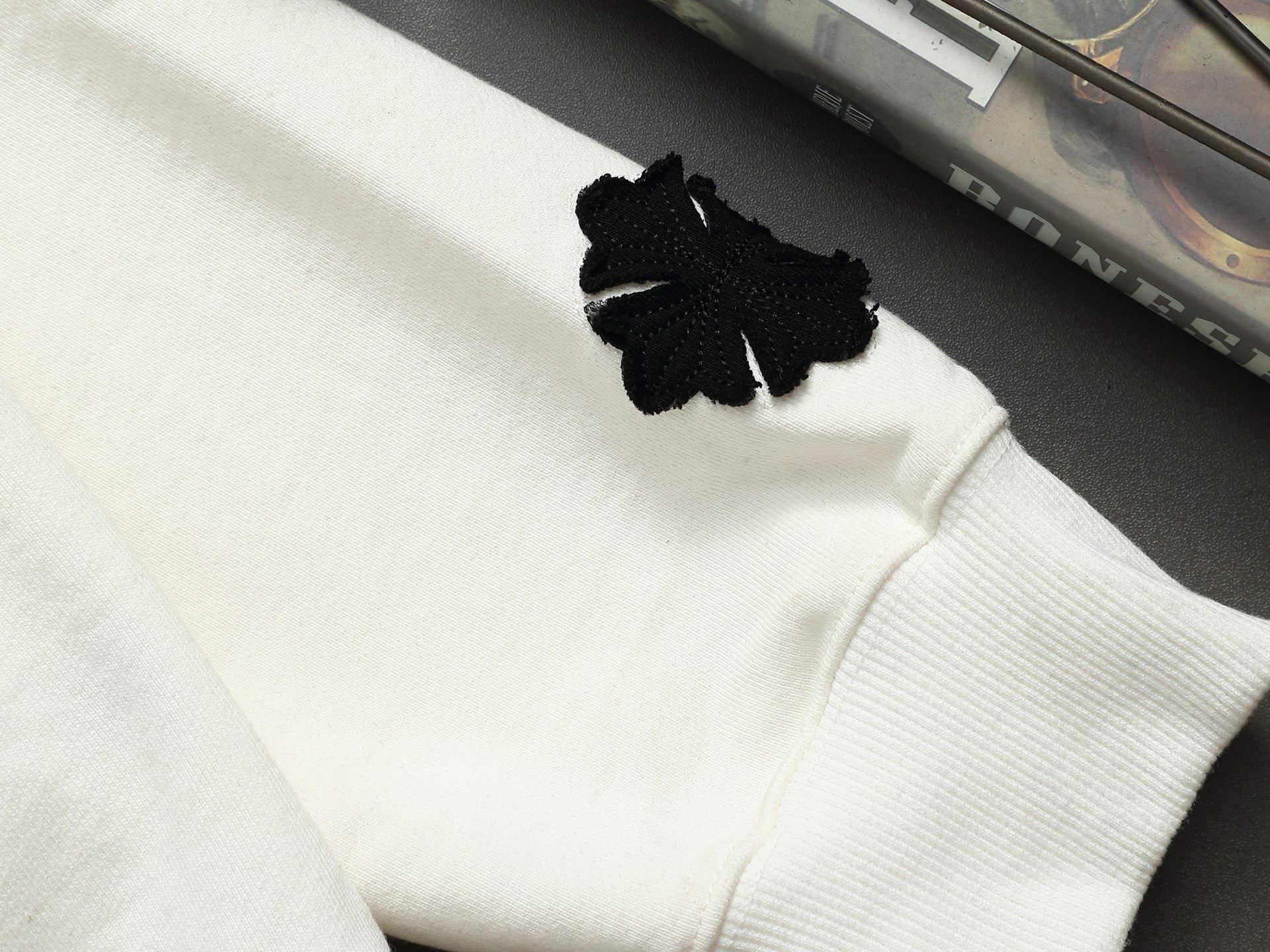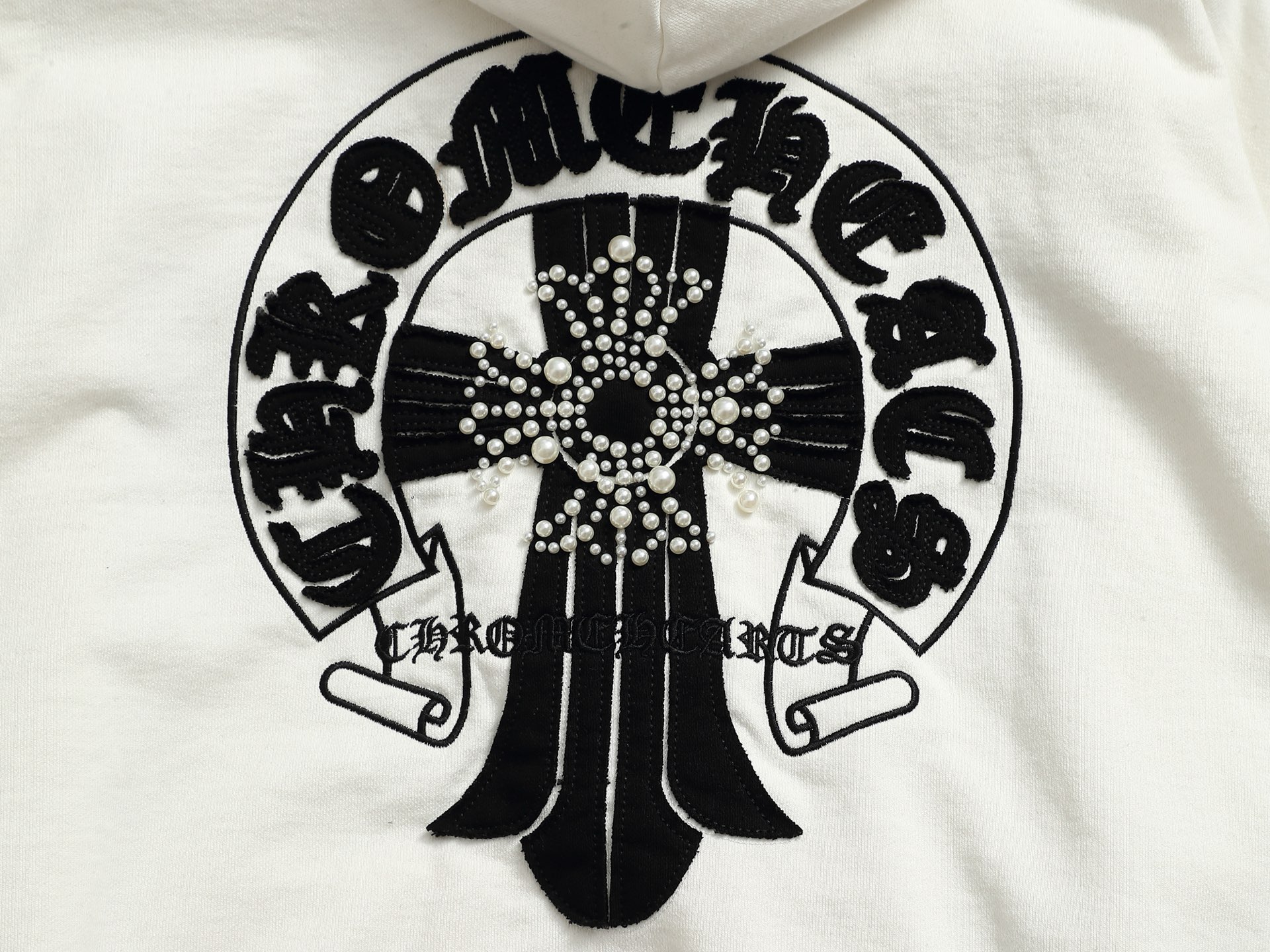 这款衣服是AAAAA 1:1 质量 (非常棒). 使用了和原版一模一样的材料. 商标部分也保持了和克罗心/Chrome Hearts一样. 图片拍摄是实物衣服拍摄, 您所收到的实物保证和我们图片一模一样.