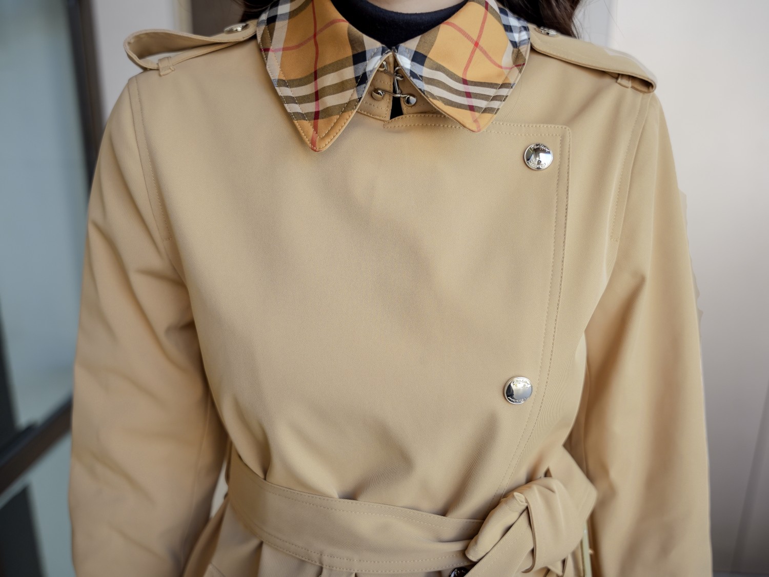 这款衣服是AAAAA 1:1 质量 (非常棒). 使用了和原版一模一样的材料. 商标部分也保持了和巴宝莉/Burberry一样. 图片拍摄是实物衣服拍摄, 您所收到的实物保证和我们图片一模一样.