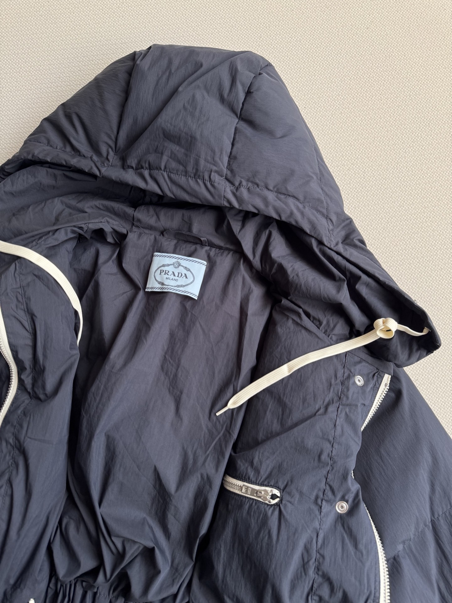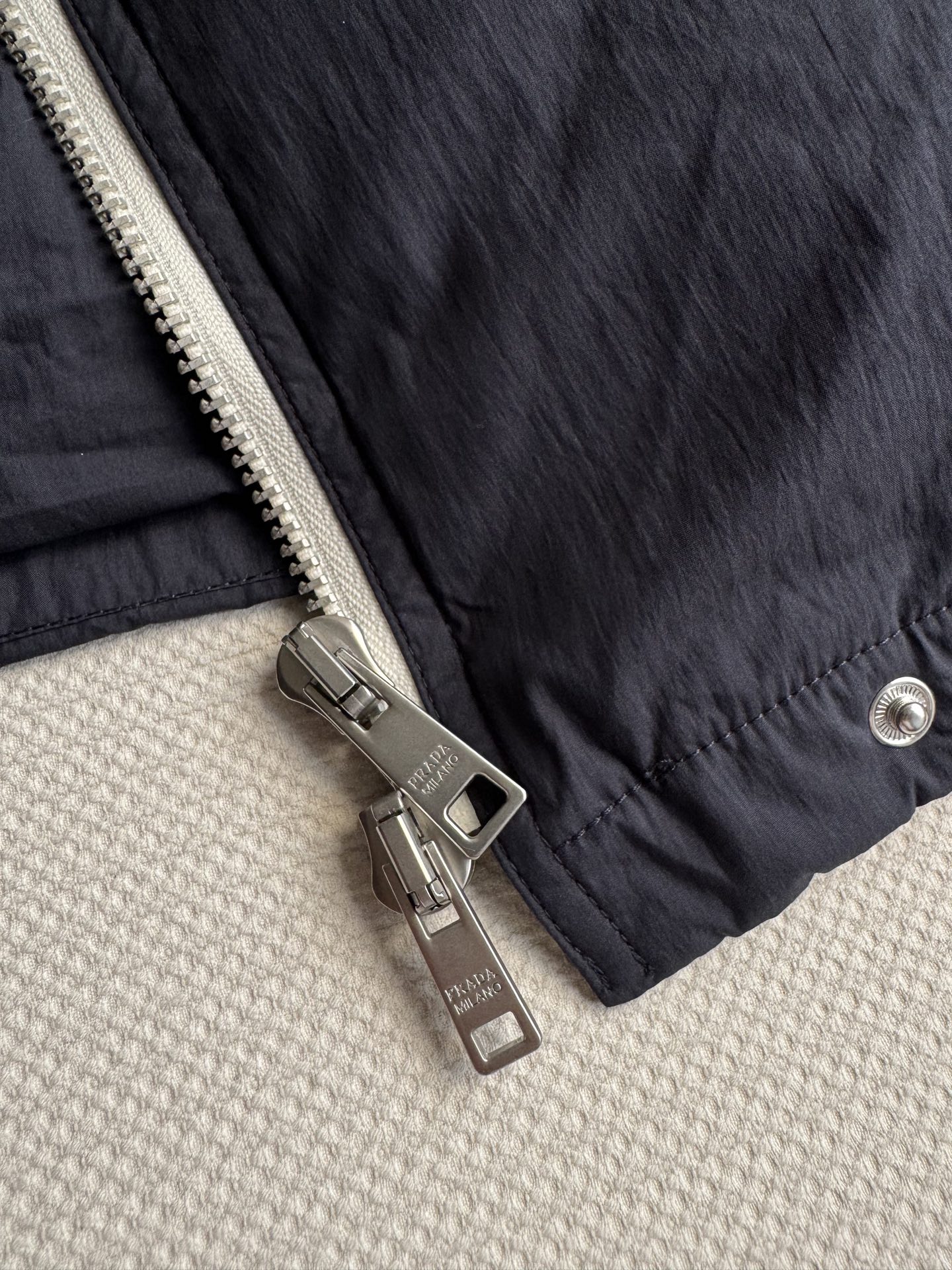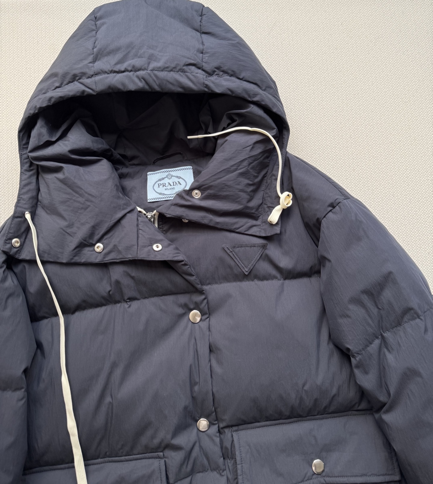 这款衣服是AAAAA 1:1 质量 (非常棒). 使用了和原版一模一样的材料. 商标部分也保持了和普拉达/Prada一样. 图片拍摄是实物衣服拍摄, 您所收到的实物保证和我们图片一模一样.