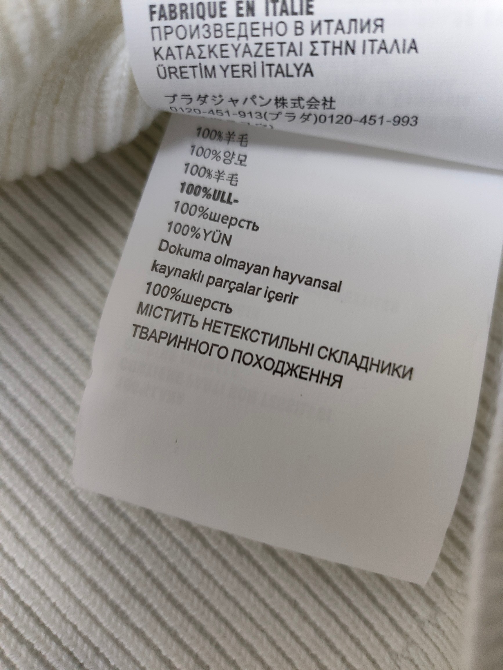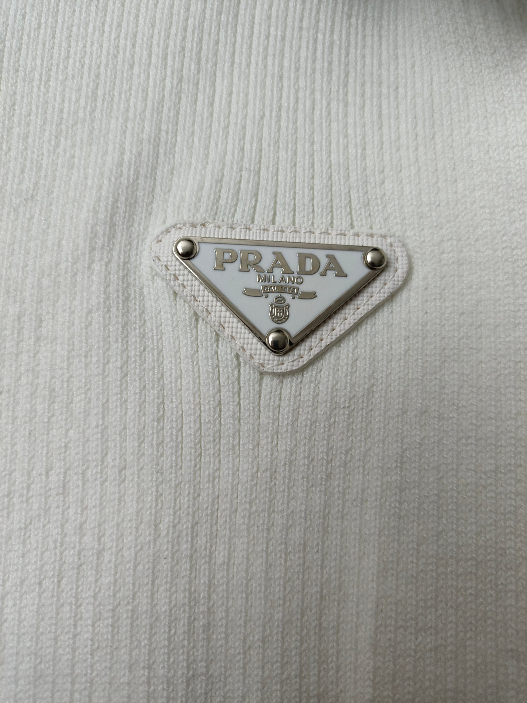 这款衣服是AAAAA 1:1 质量 (非常棒). 使用了和原版一模一样的材料. 商标部分也保持了和普拉达/Prada一样. 图片拍摄是实物衣服拍摄, 您所收到的实物保证和我们图片一模一样.