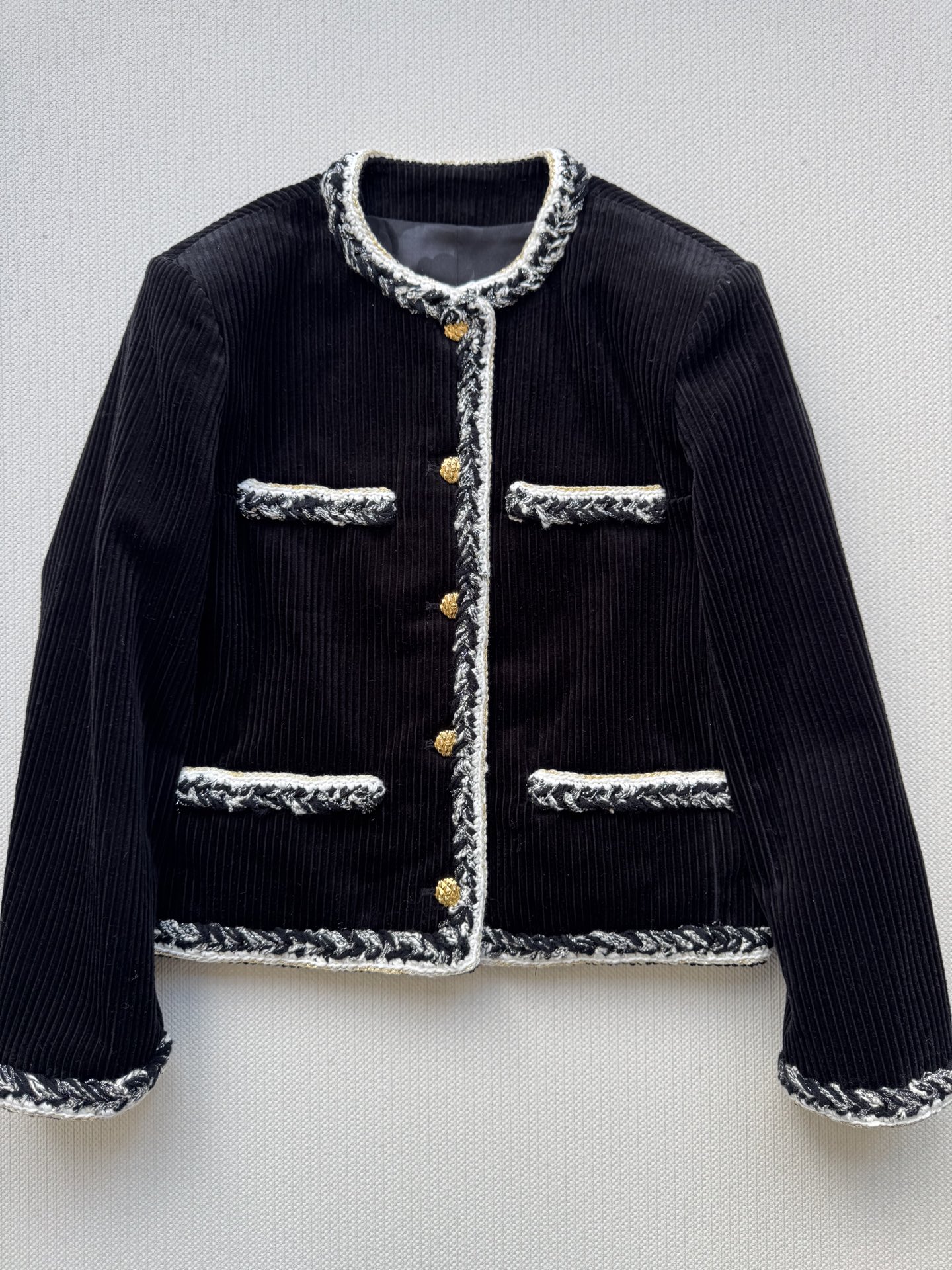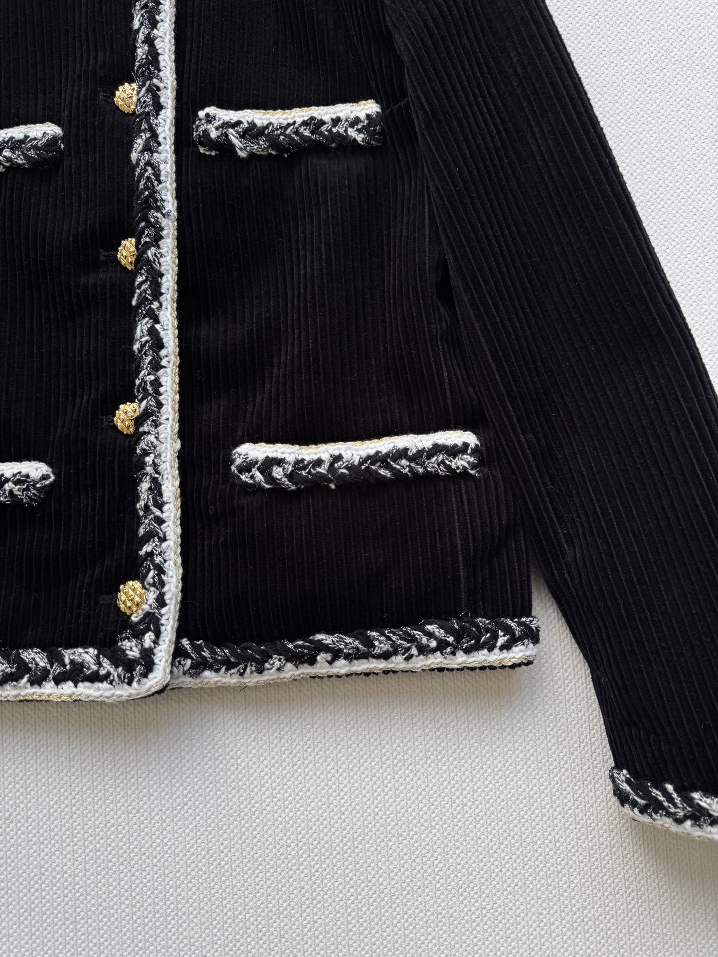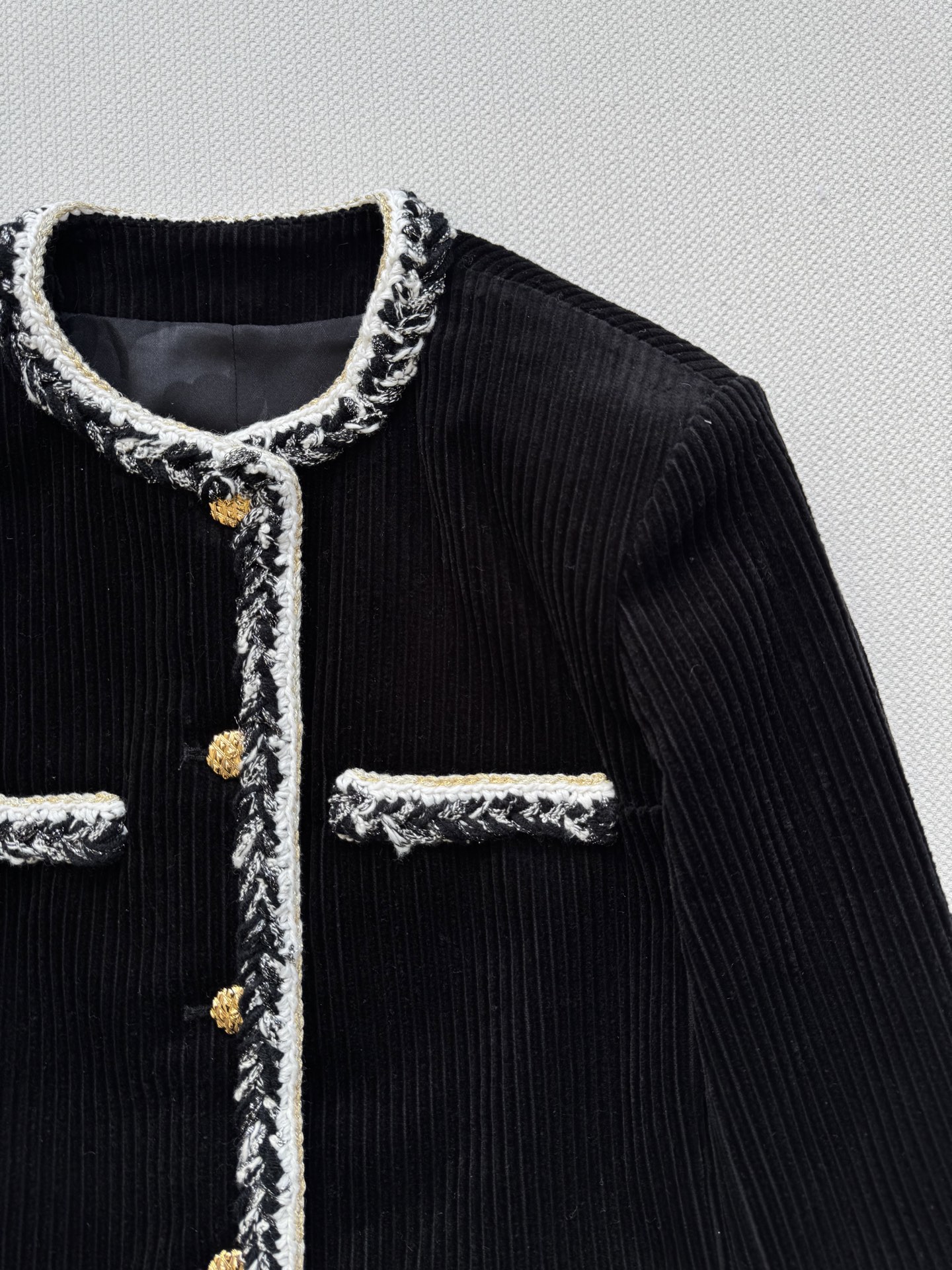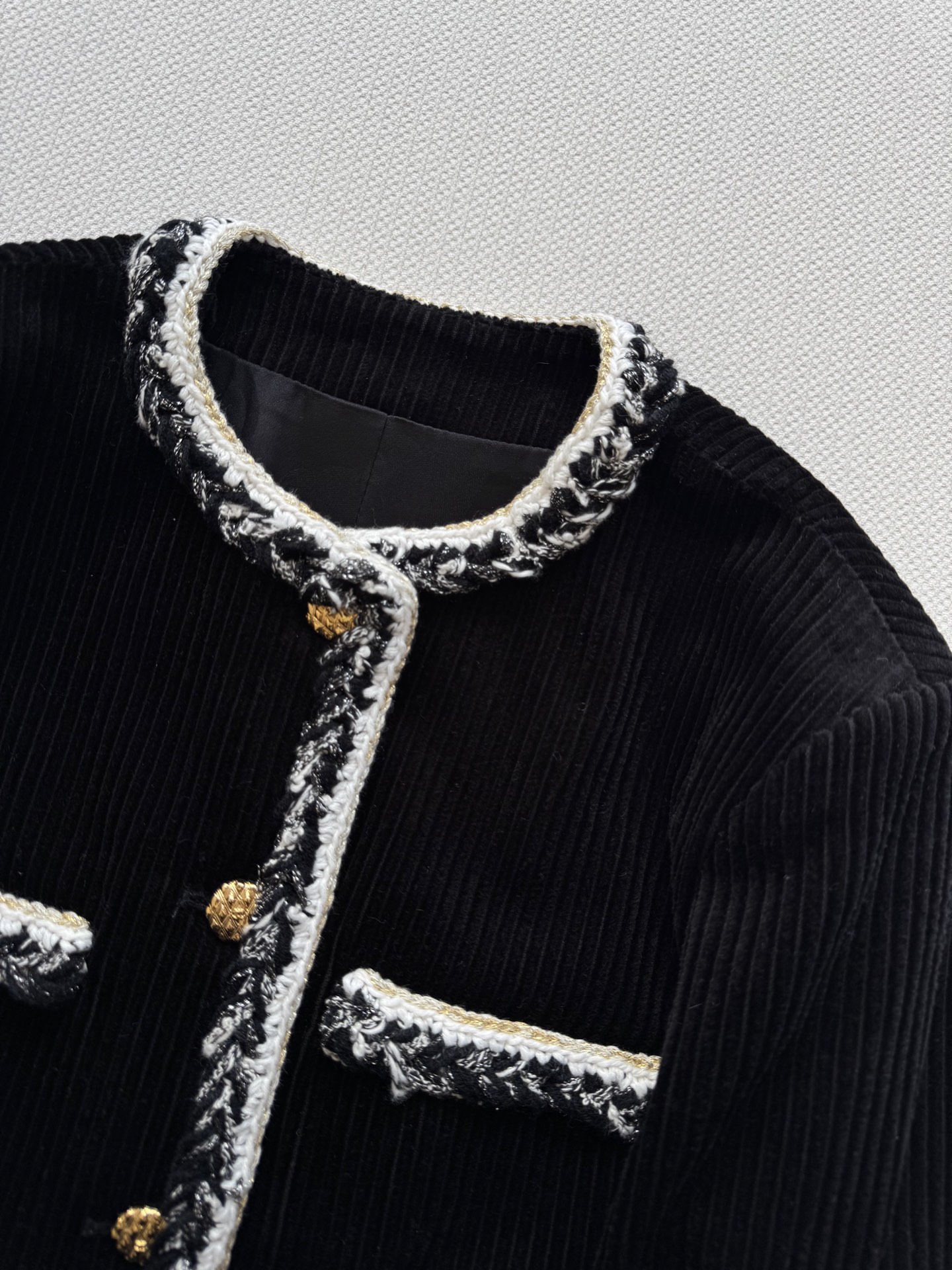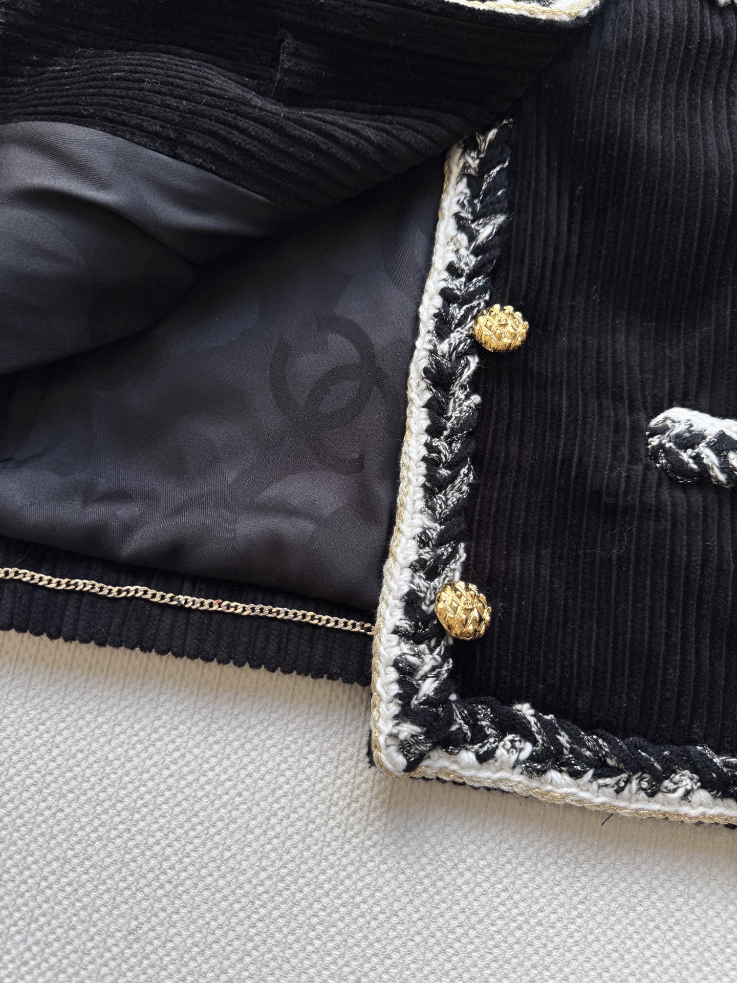 这款衣服是AAAAA 1:1 质量 (非常棒). 使用了和原版一模一样的材料. 商标部分也保持了和香奈儿/Chanel一样. 图片拍摄是实物衣服拍摄, 您所收到的实物保证和我们图片一模一样.
