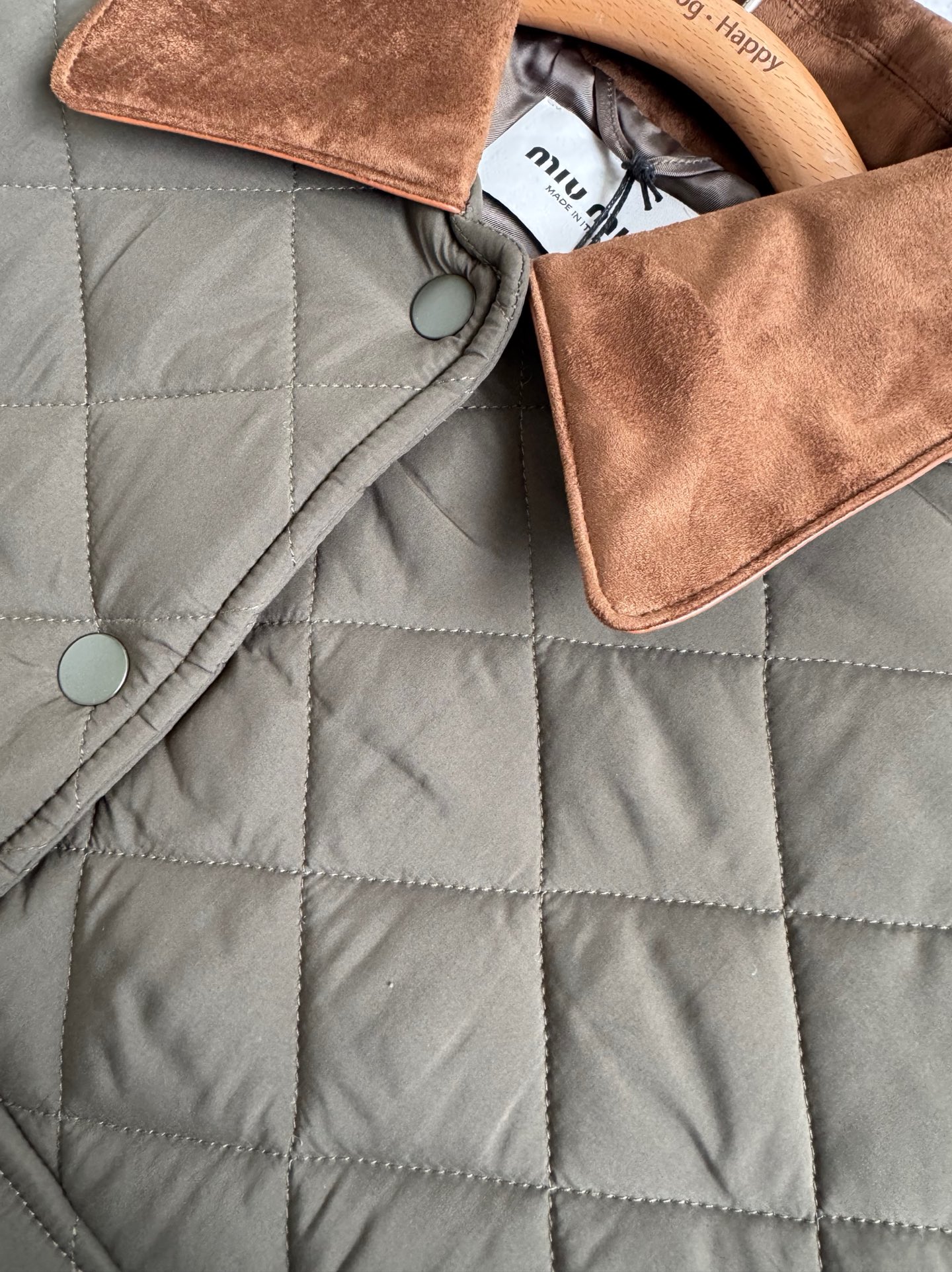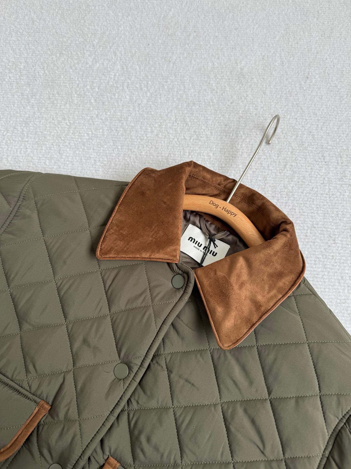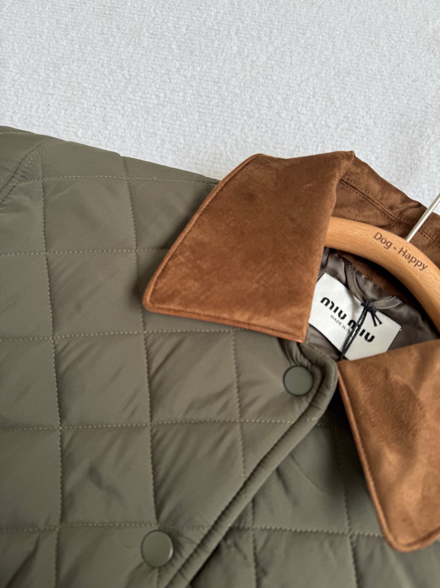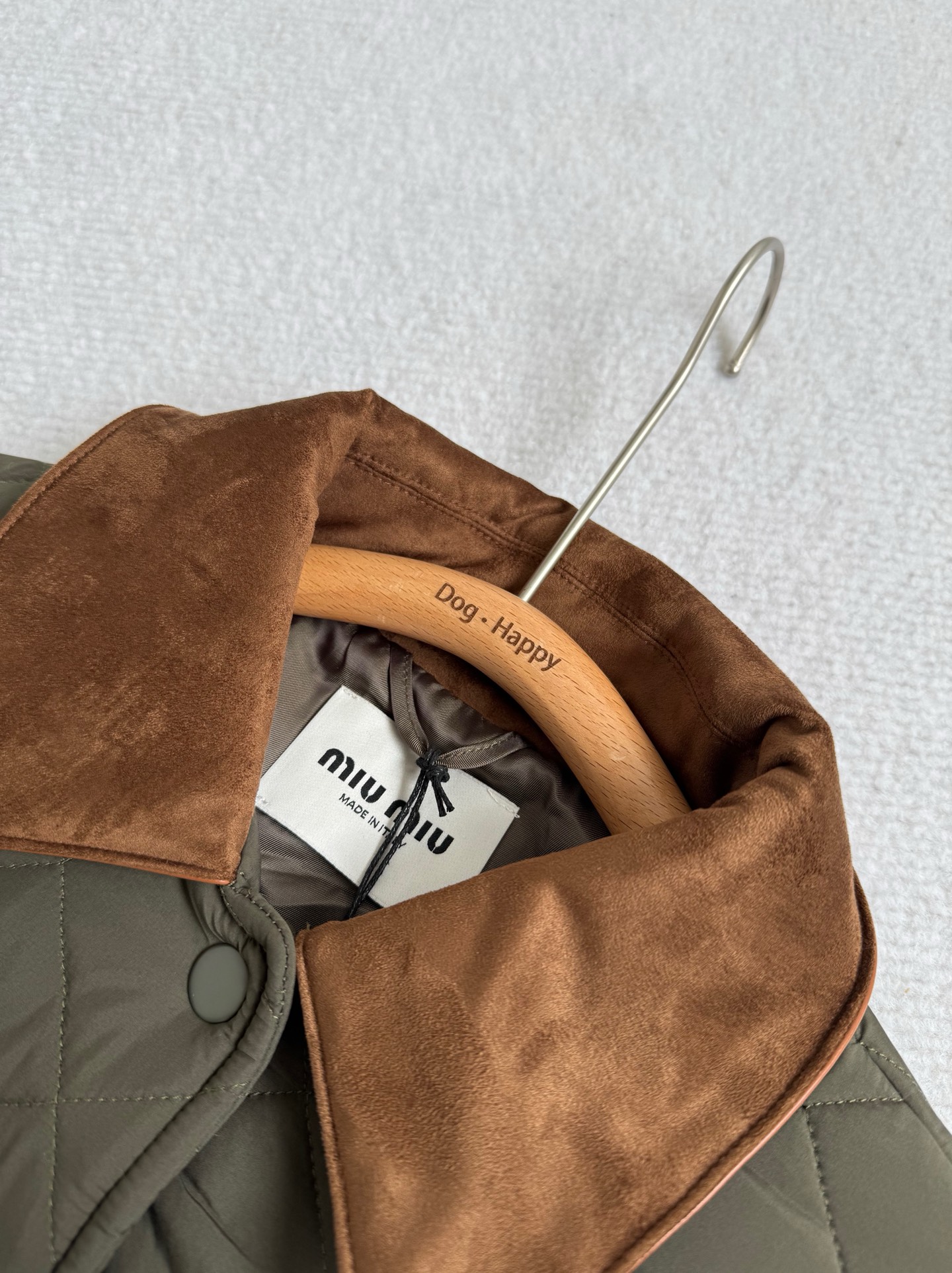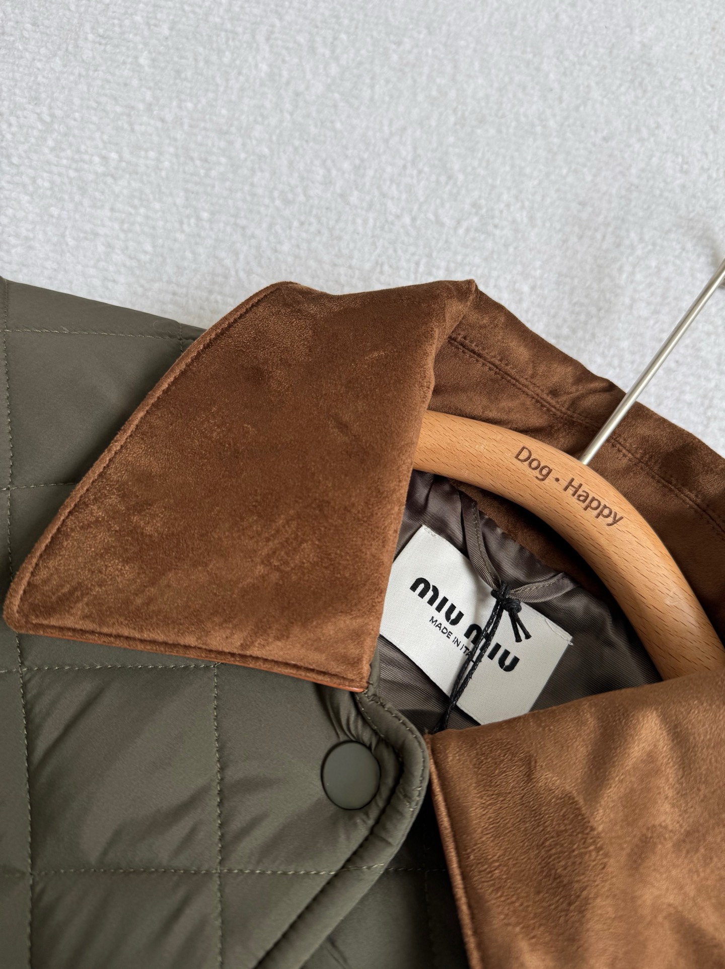 这款衣服是AAAAA 1:1 质量 (非常棒). 使用了和原版一模一样的材料. 商标部分也保持了和缪缪/Miu Miu一样. 图片拍摄是实物衣服拍摄, 您所收到的实物保证和我们图片一模一样.
