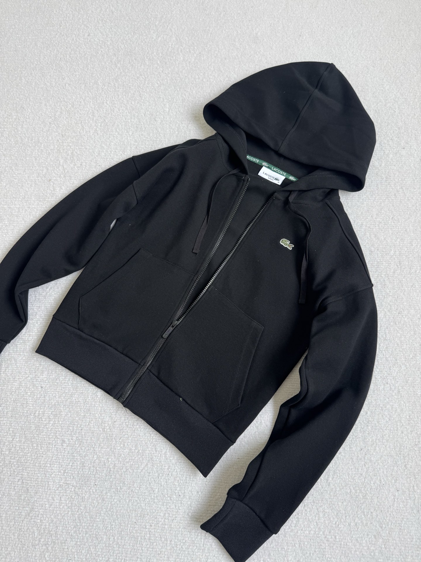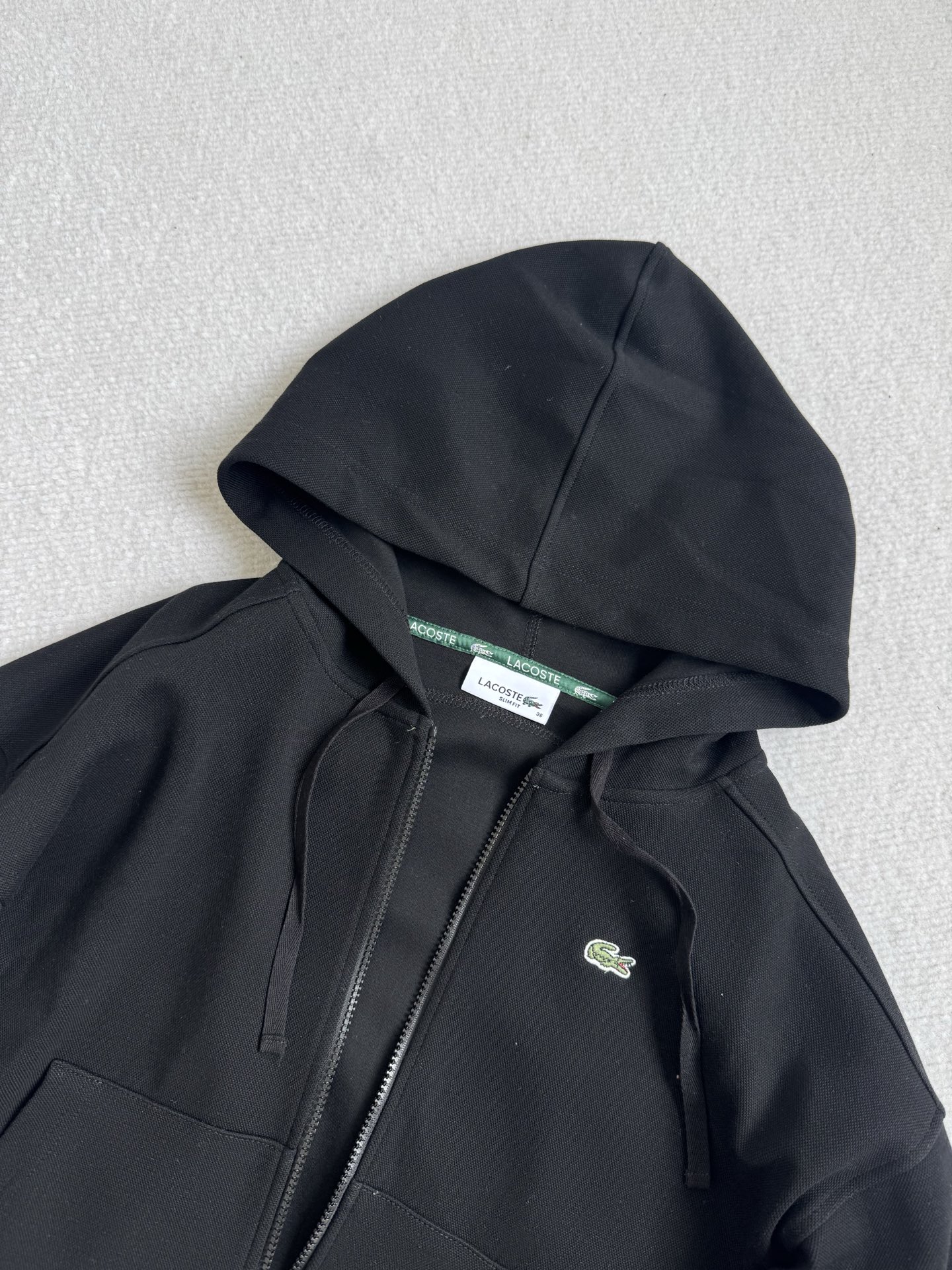 这款衣服是AAAAA 1:1 质量 (非常棒). 使用了和原版一模一样的材料. 商标部分也保持了和LACOSTE一样. 图片拍摄是实物衣服拍摄, 您所收到的实物保证和我们图片一模一样.