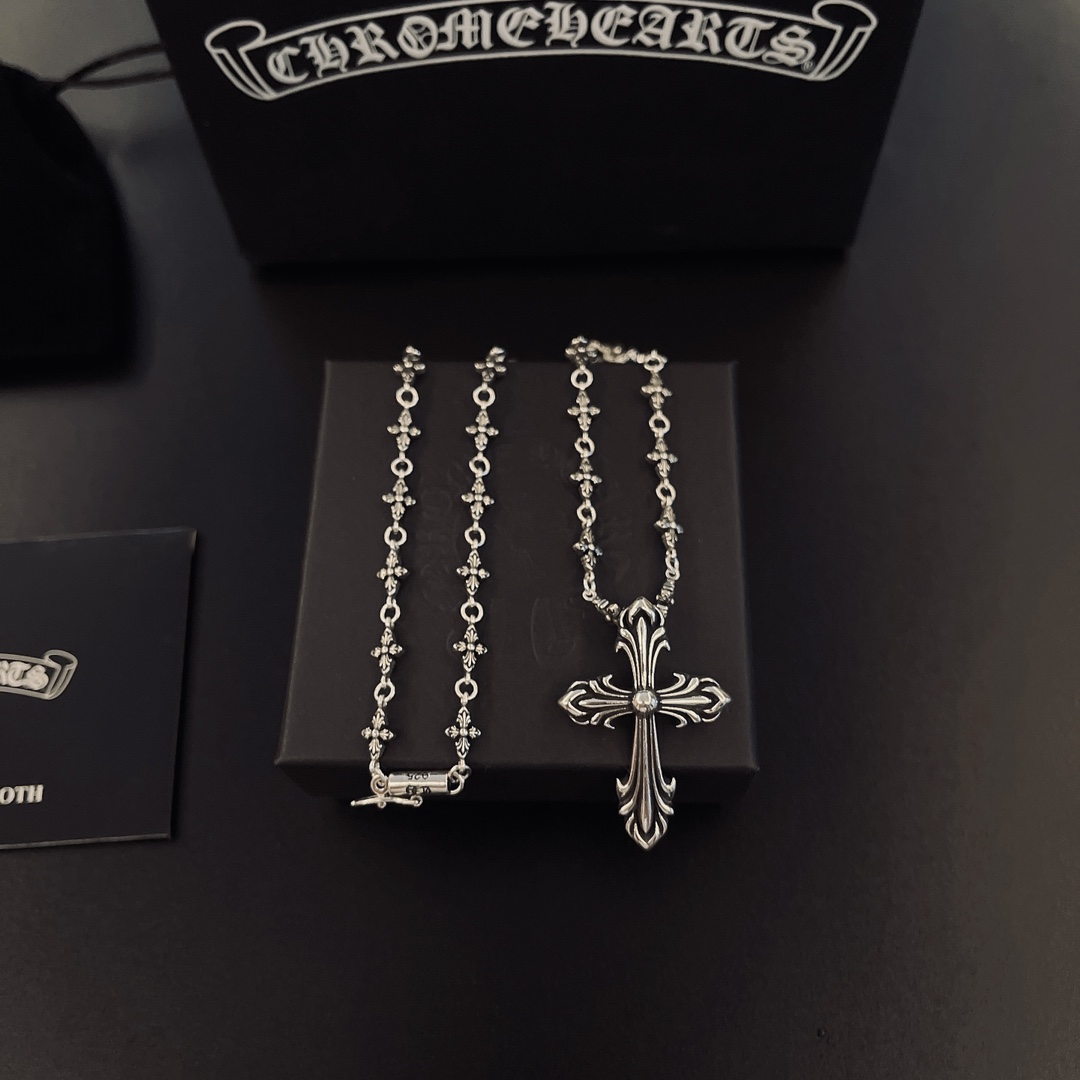 这款首饰是AAAAA 1:1 质量 (非常棒). 使用了和原版一模一样的材料. 商标部分也保持了和克罗心/Chrome Hearts一样. 图片拍摄是实物首饰拍摄, 您所收到的实物保证和我们图片一模一样.
