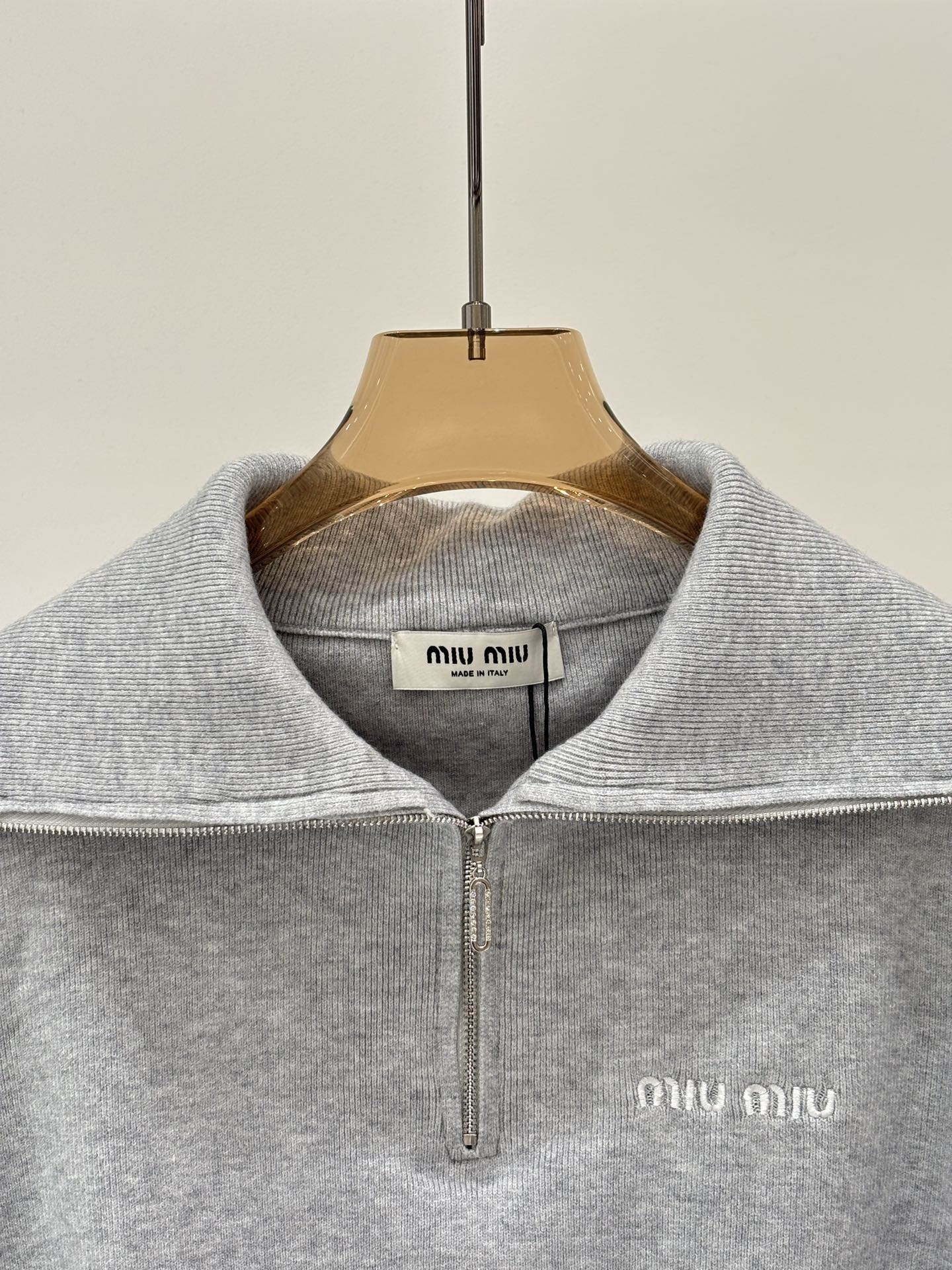 这款衣服是AAAAA 1:1 质量 (非常棒). 使用了和原版一模一样的材料. 商标部分也保持了和缪缪/Miu Miu一样. 图片拍摄是实物衣服拍摄, 您所收到的实物保证和我们图片一模一样.