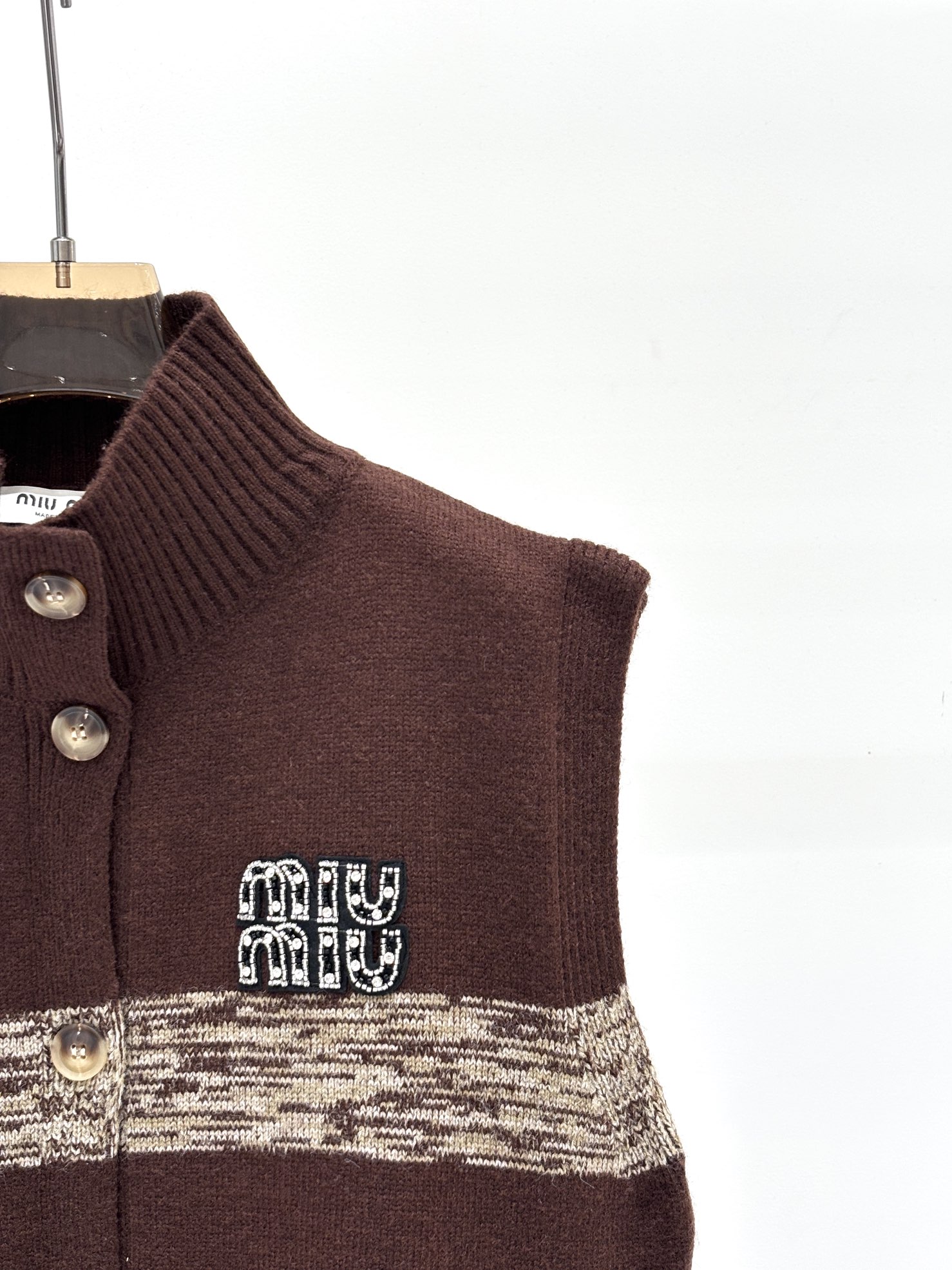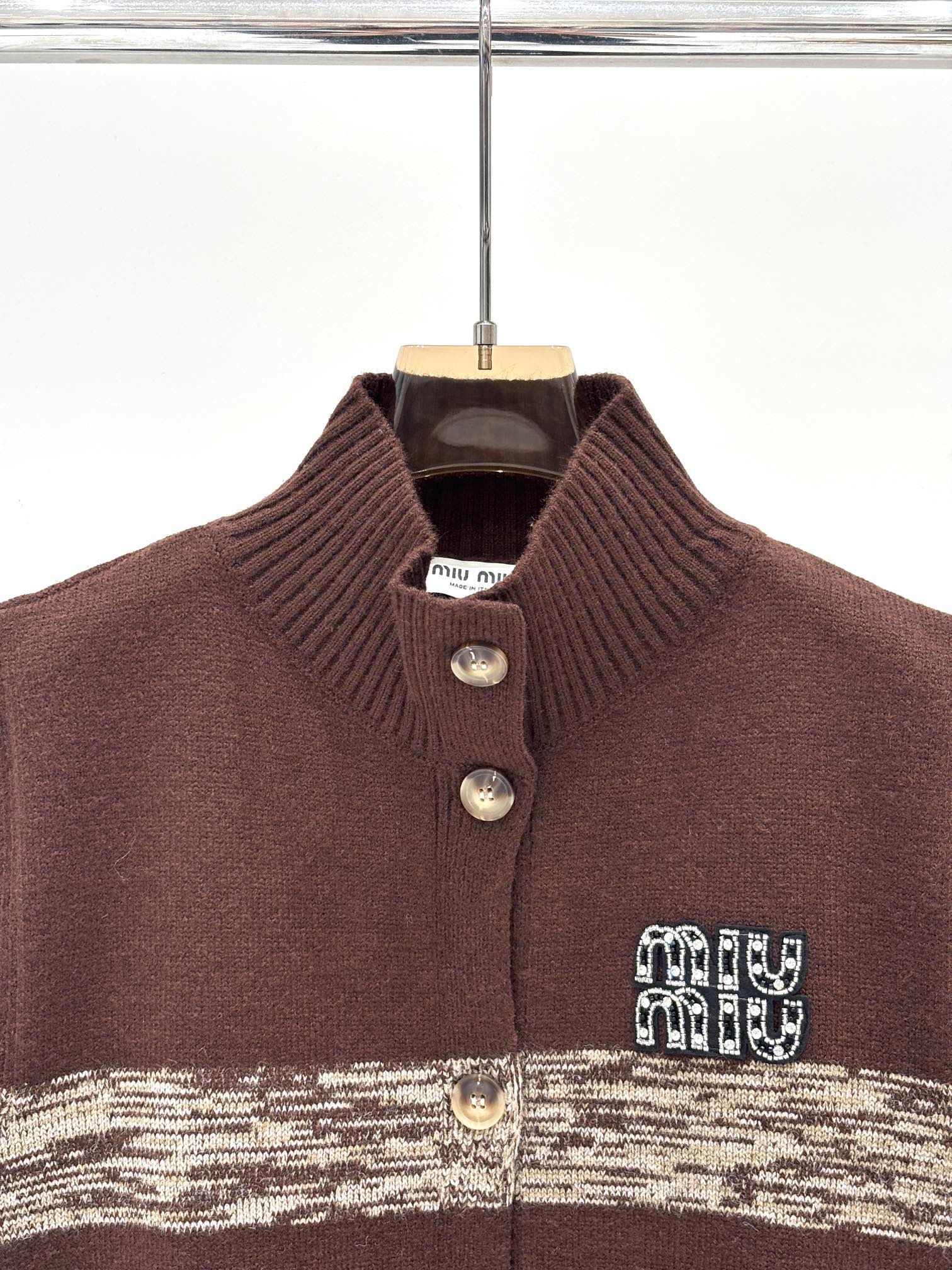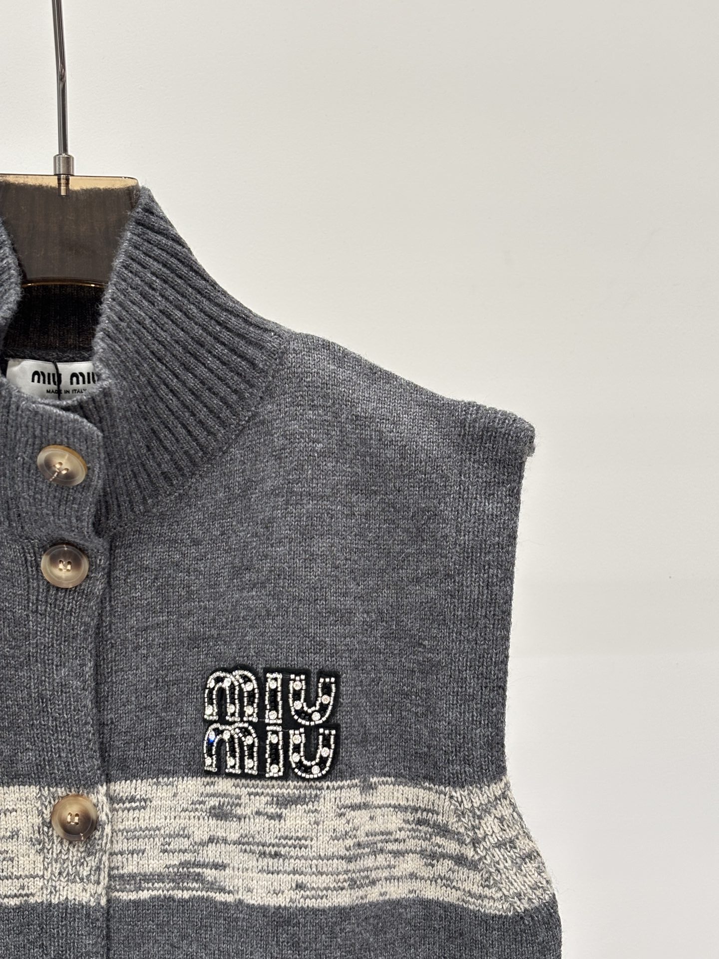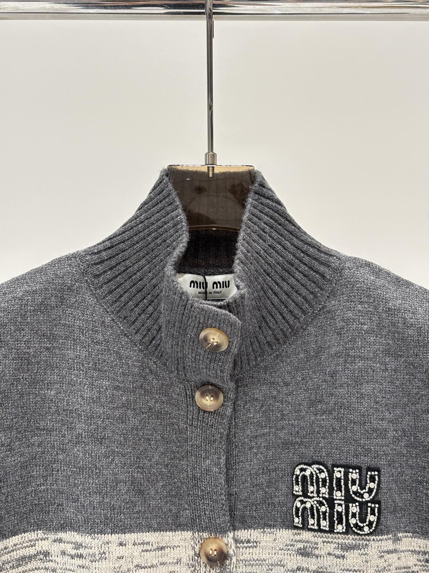 这款衣服是AAAAA 1:1 质量 (非常棒). 使用了和原版一模一样的材料. 商标部分也保持了和缪缪/Miu Miu一样. 图片拍摄是实物衣服拍摄, 您所收到的实物保证和我们图片一模一样.