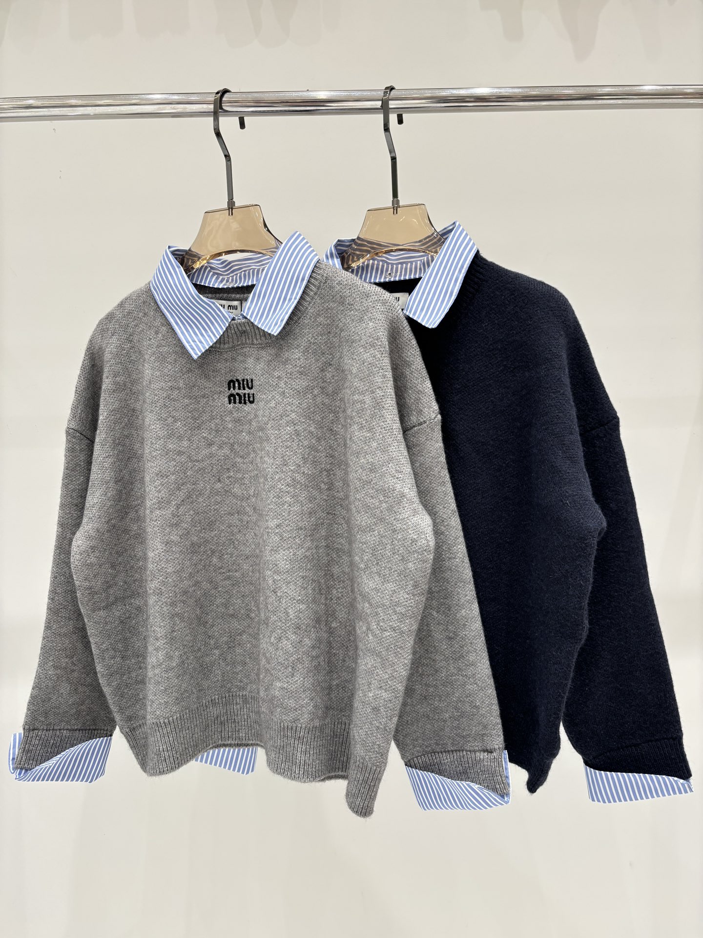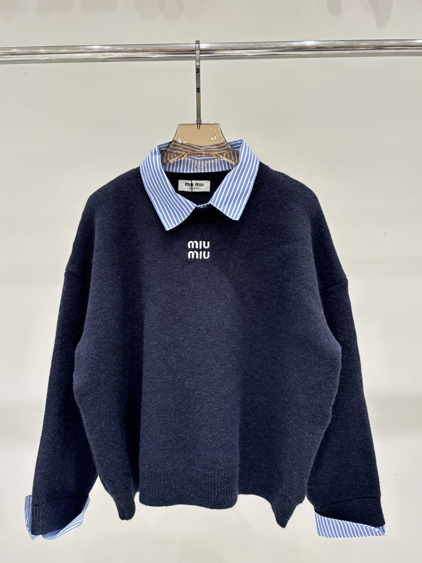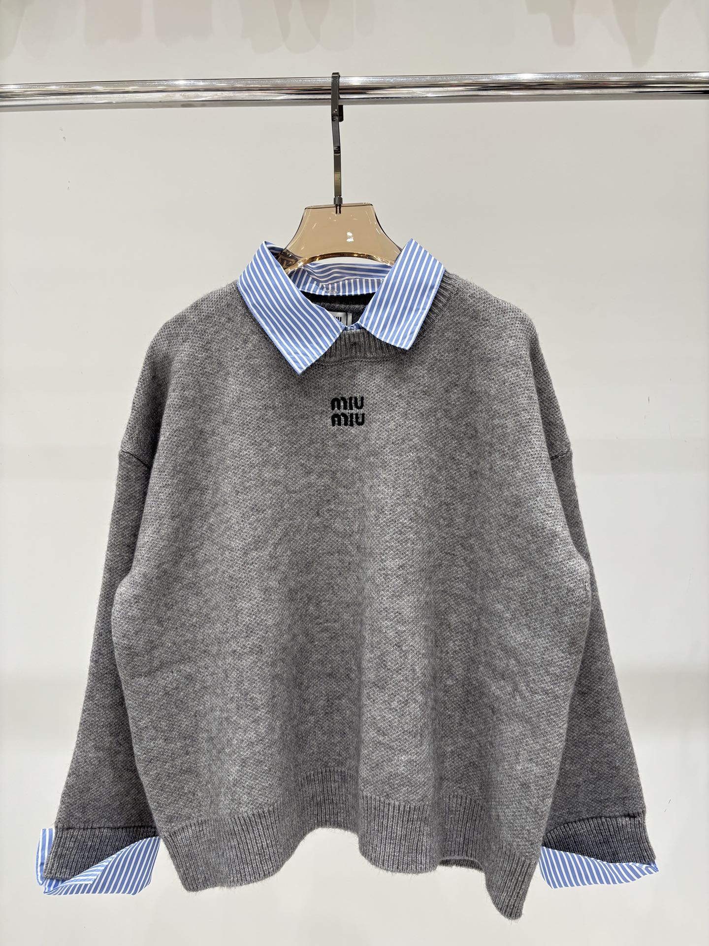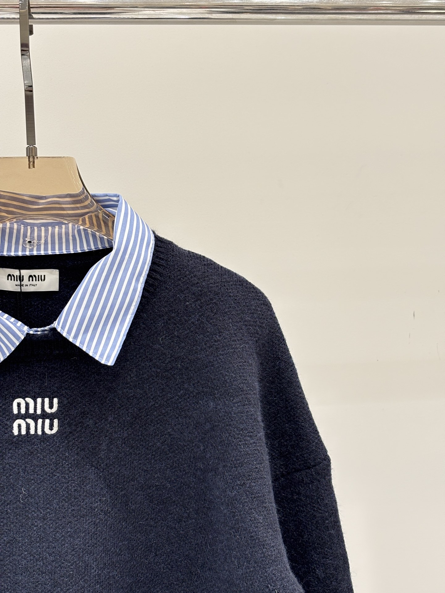 这款衣服是AAAAA 1:1 质量 (非常棒). 使用了和原版一模一样的材料. 商标部分也保持了和缪缪/Miu Miu一样. 图片拍摄是实物衣服拍摄, 您所收到的实物保证和我们图片一模一样.