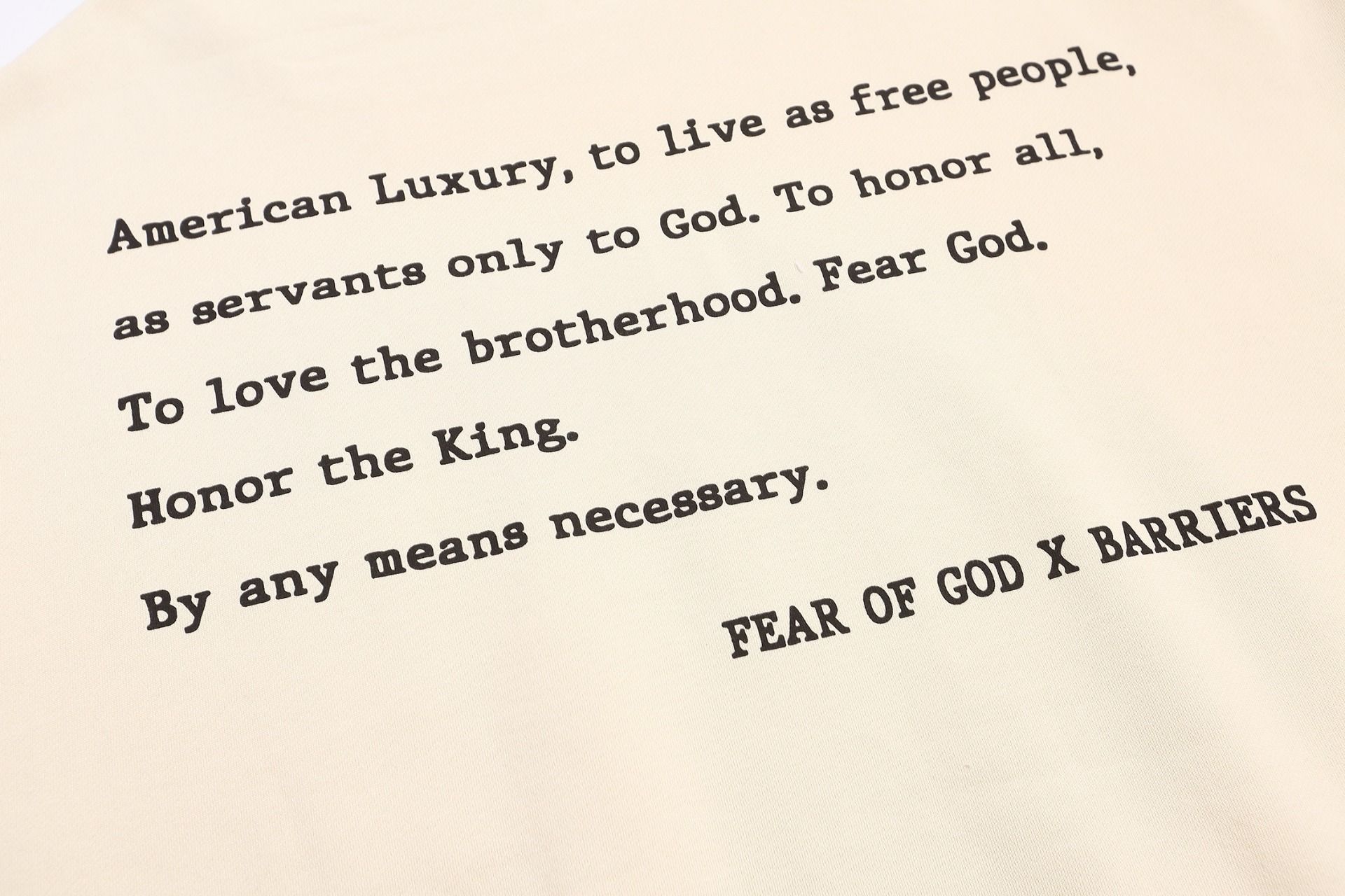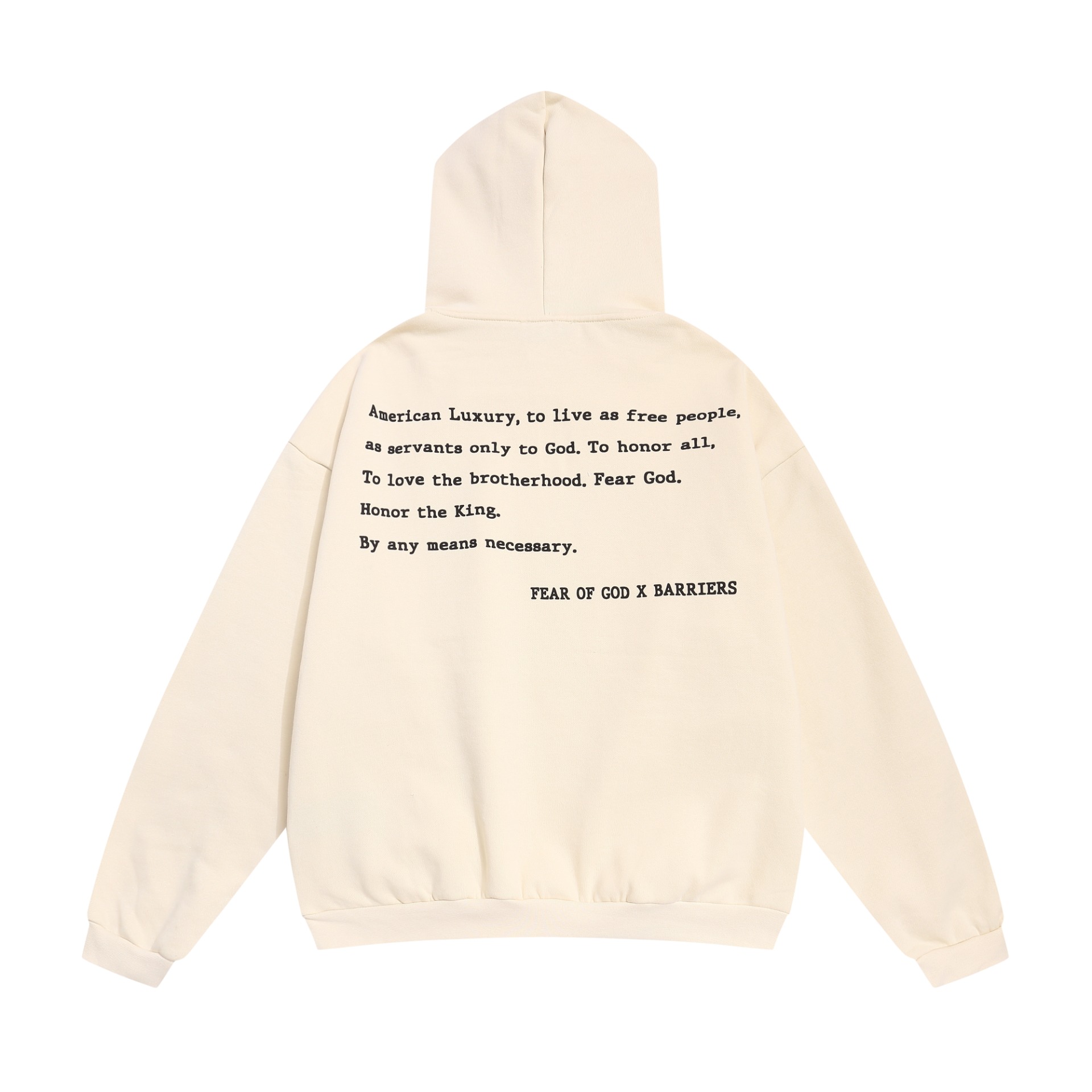 这款衣服是AAAAA 1:1 质量 (非常棒). 使用了和原版一模一样的材料. 商标部分也保持了和Fear of God一样. 图片拍摄是实物衣服拍摄, 您所收到的实物保证和我们图片一模一样.
