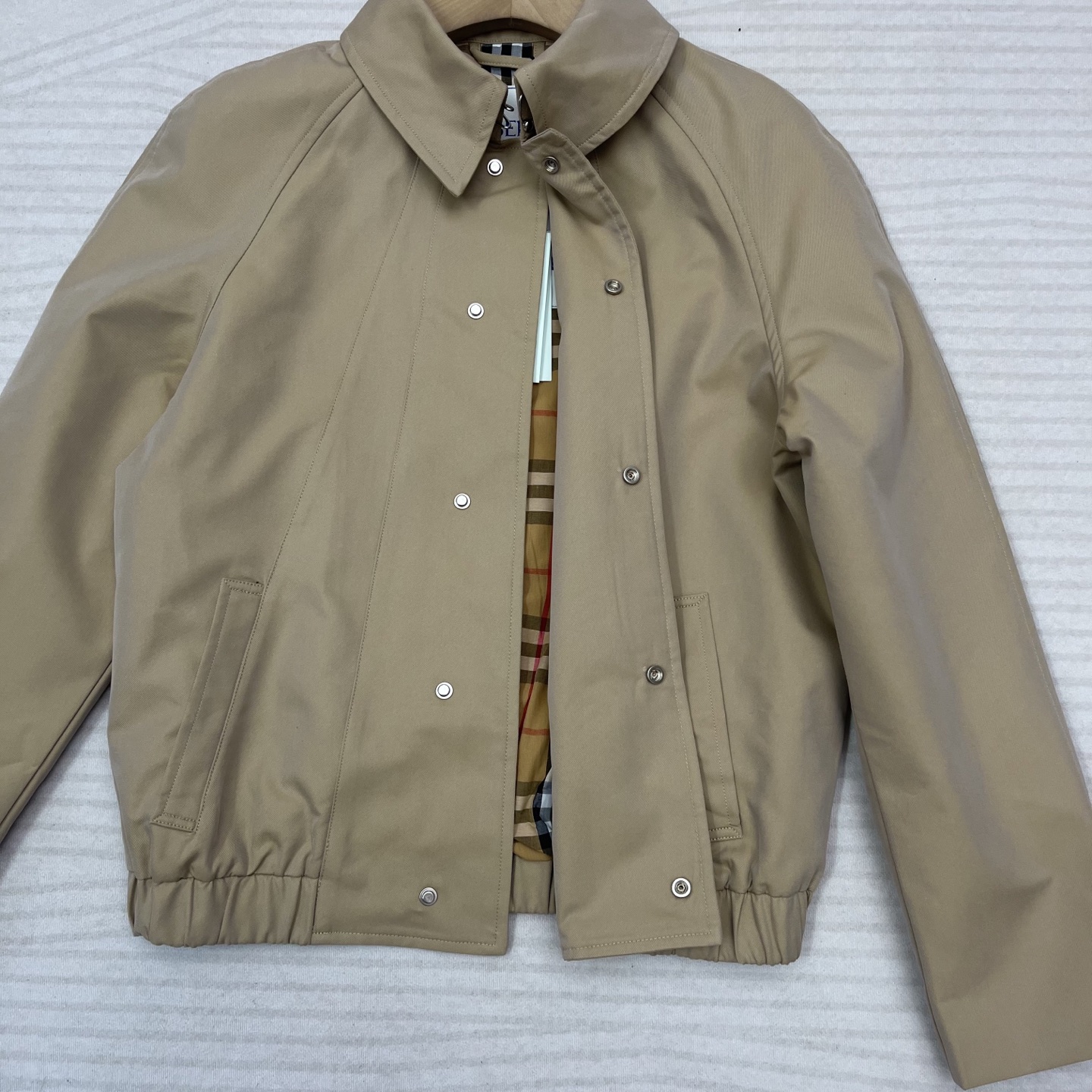 这款衣服是AAAAA 1:1 质量 (非常棒). 使用了和原版一模一样的材料. 商标部分也保持了和巴宝莉/Burberry一样. 图片拍摄是实物衣服拍摄, 您所收到的实物保证和我们图片一模一样.
