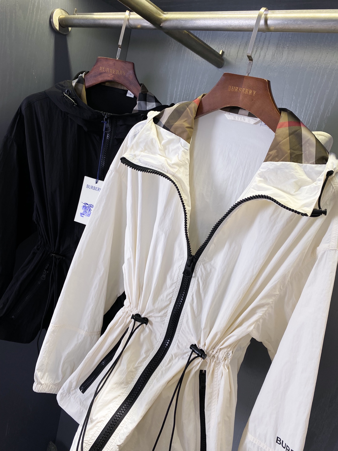 这款衣服是AAAAA 1:1 质量 (非常棒). 使用了和原版一模一样的材料. 商标部分也保持了和巴宝莉/Burberry一样. 图片拍摄是实物衣服拍摄, 您所收到的实物保证和我们图片一模一样.