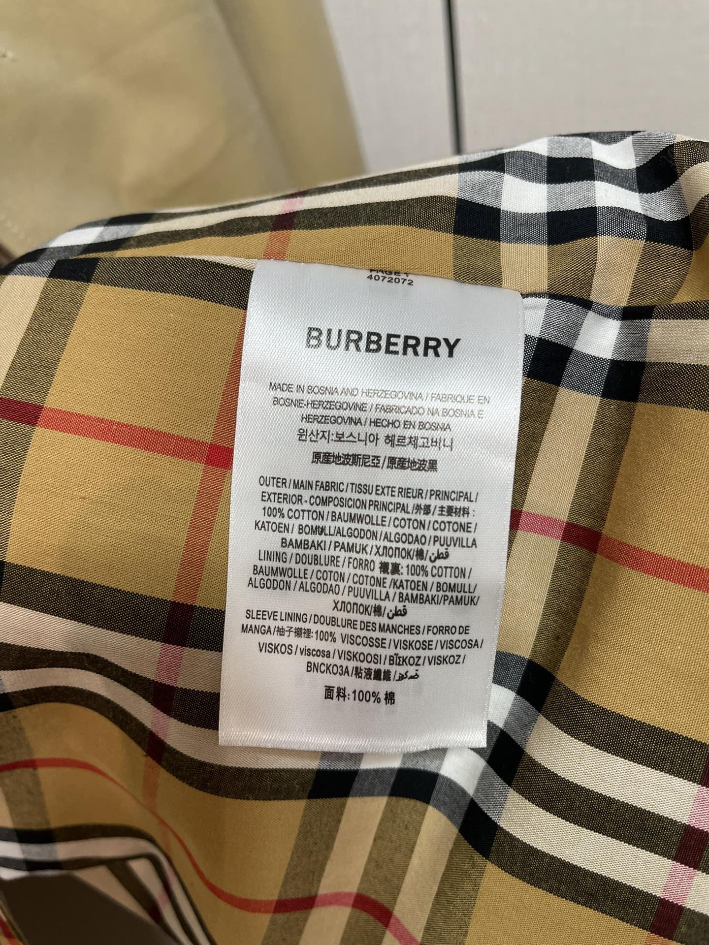 这款衣服是AAAAA 1:1 质量 (非常棒). 使用了和原版一模一样的材料. 商标部分也保持了和巴宝莉/Burberry一样. 图片拍摄是实物衣服拍摄, 您所收到的实物保证和我们图片一模一样.