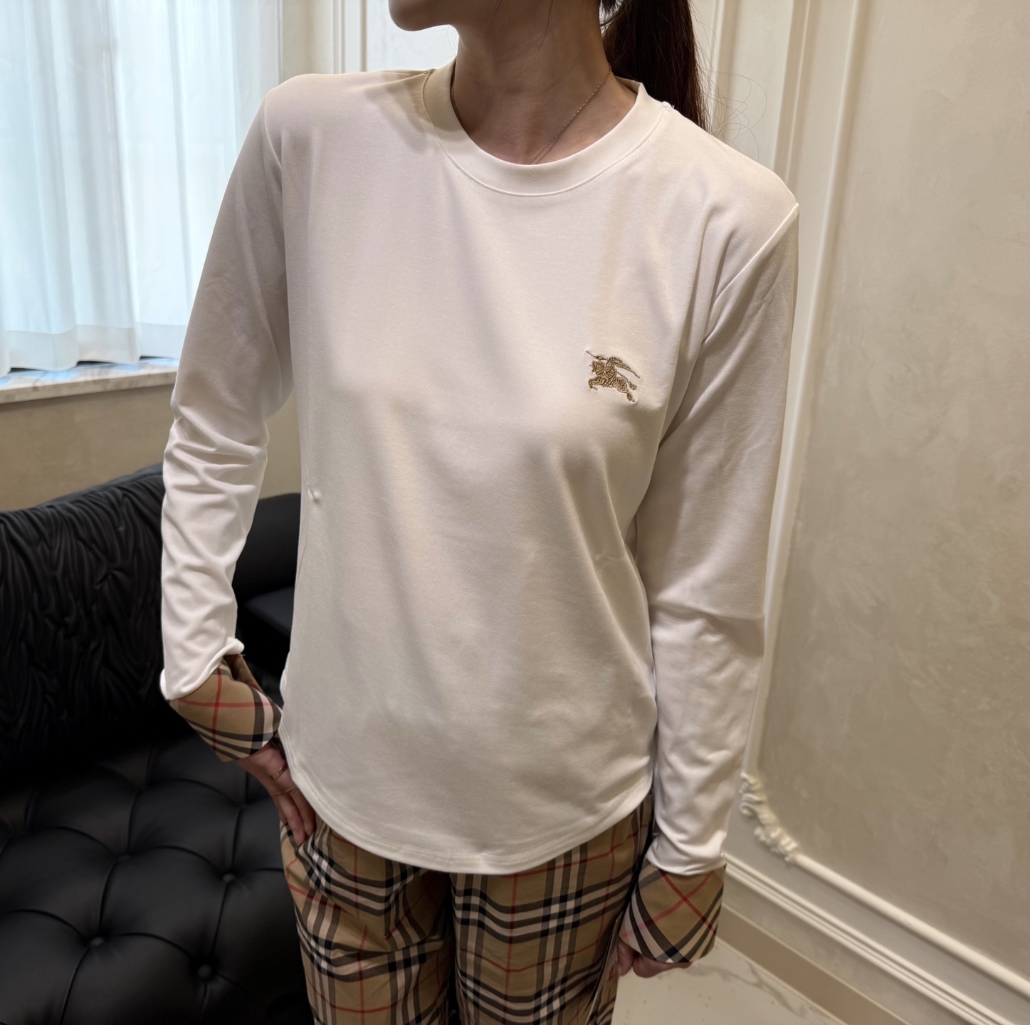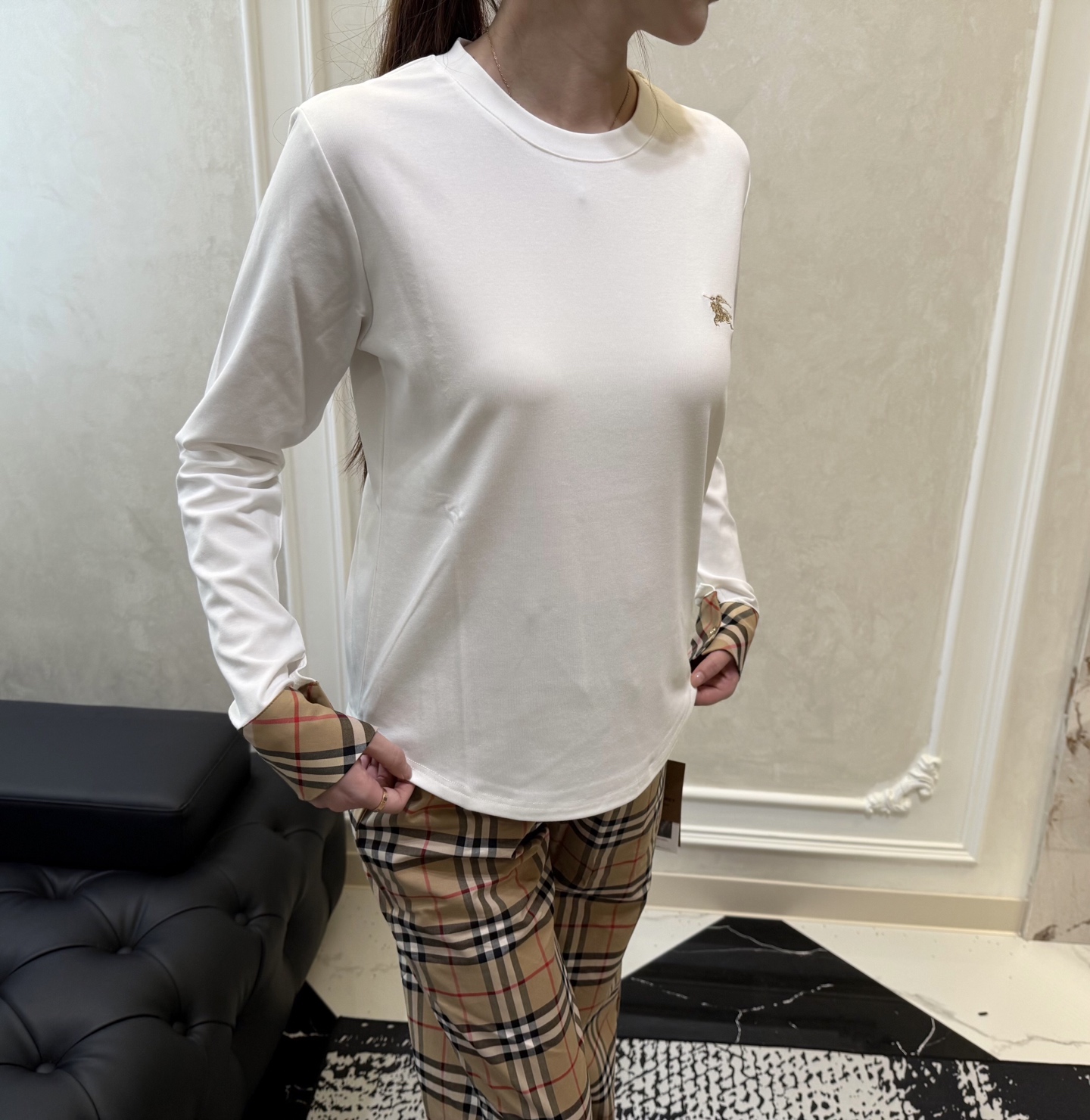 这款衣服是AAAAA 1:1 质量 (非常棒). 使用了和原版一模一样的材料. 商标部分也保持了和巴宝莉/Burberry一样. 图片拍摄是实物衣服拍摄, 您所收到的实物保证和我们图片一模一样.