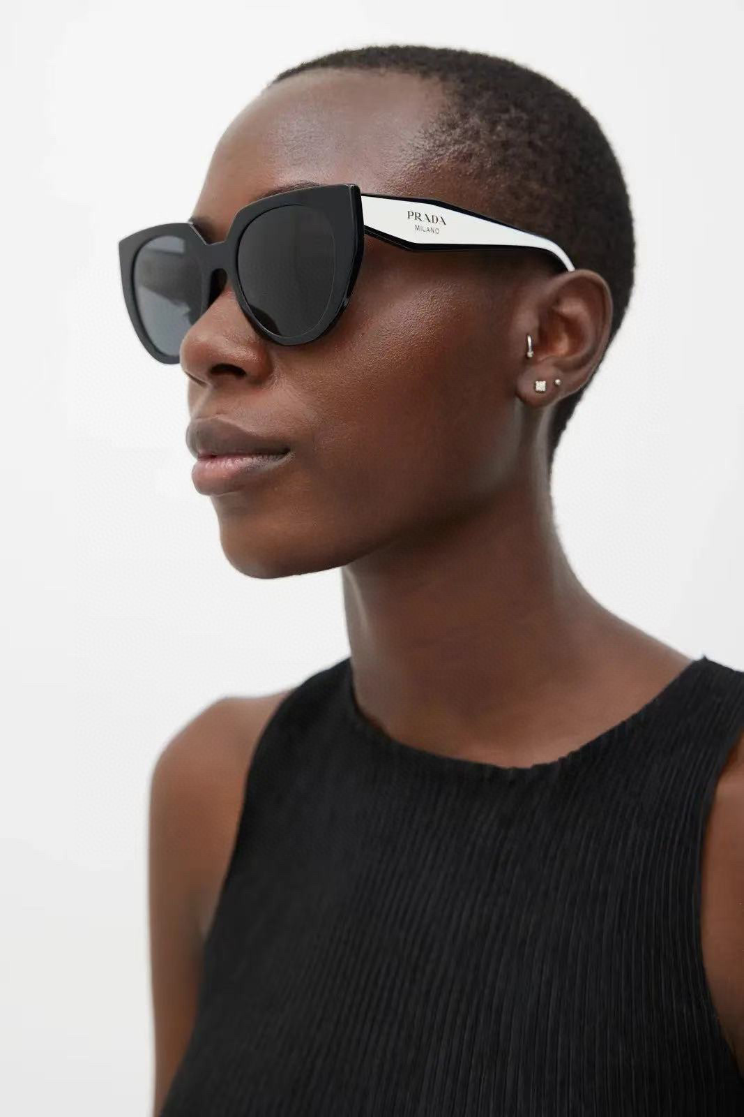 这款太阳眼镜是AAAAA 1:1 质量 (非常棒). 使用了和原版一模一样的材料. 商标部分也保持了和普拉达/Prada一样. 图片拍摄是实物太阳眼镜拍摄, 您所收到的实物保证和我们图片一模一样.