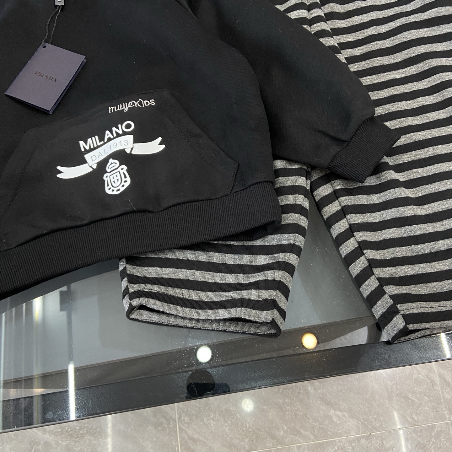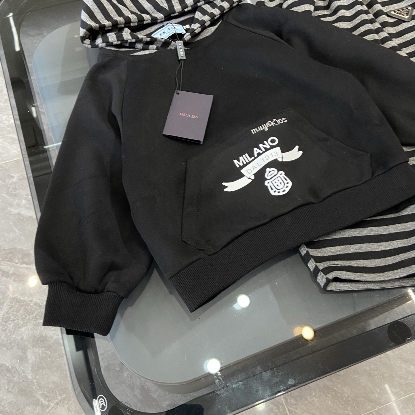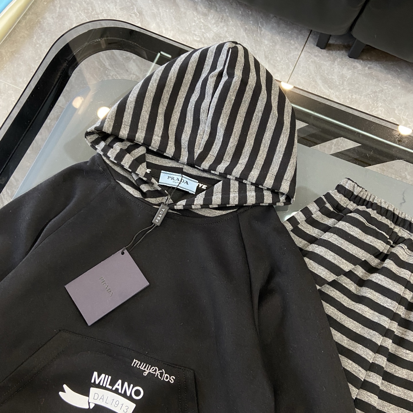 这款children's clothes是AAAAA 1:1 质量 (非常棒). 使用了和原版一模一样的材料. 商标部分也保持了和普拉达/Prada一样. 图片拍摄是实物children's clothes拍摄, 您所收到的实物保证和我们图片一模一样.