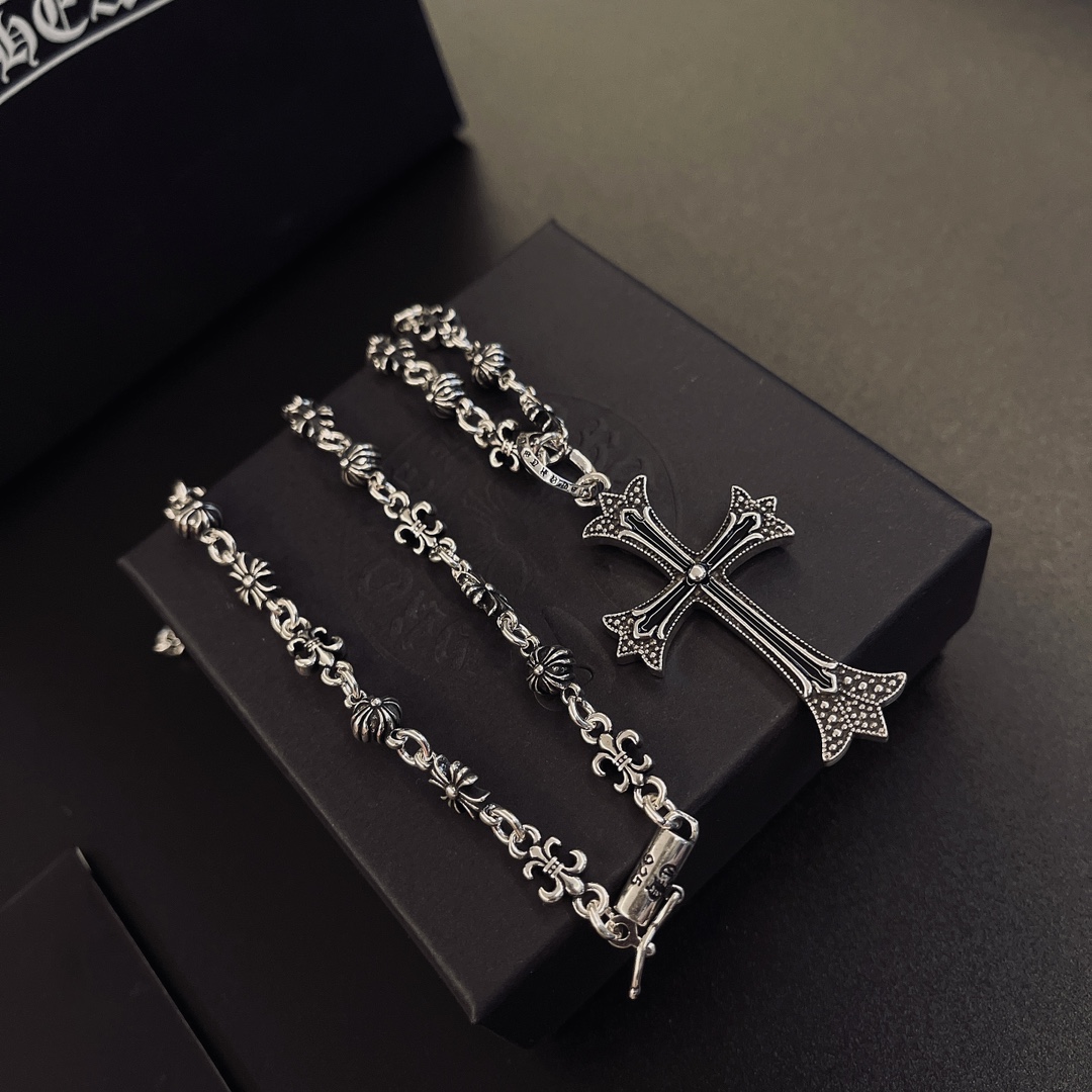 这款首饰是AAAAA 1:1 质量 (非常棒). 使用了和原版一模一样的材料. 商标部分也保持了和克罗心/Chrome Hearts一样. 图片拍摄是实物首饰拍摄, 您所收到的实物保证和我们图片一模一样.