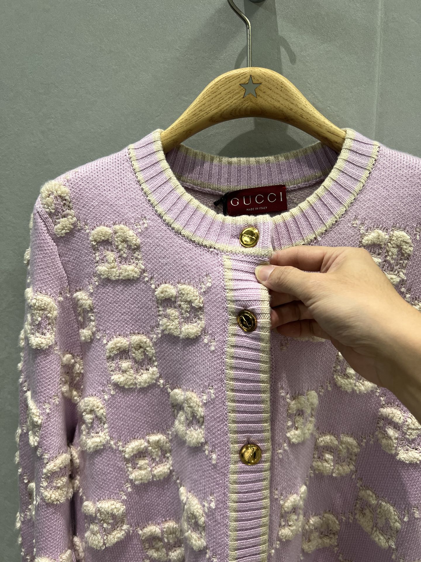 这款衣服是AAAAA 1:1 质量 (非常棒). 使用了和原版一模一样的材料. 商标部分也保持了和古奇/Gucci一样. 图片拍摄是实物衣服拍摄, 您所收到的实物保证和我们图片一模一样.