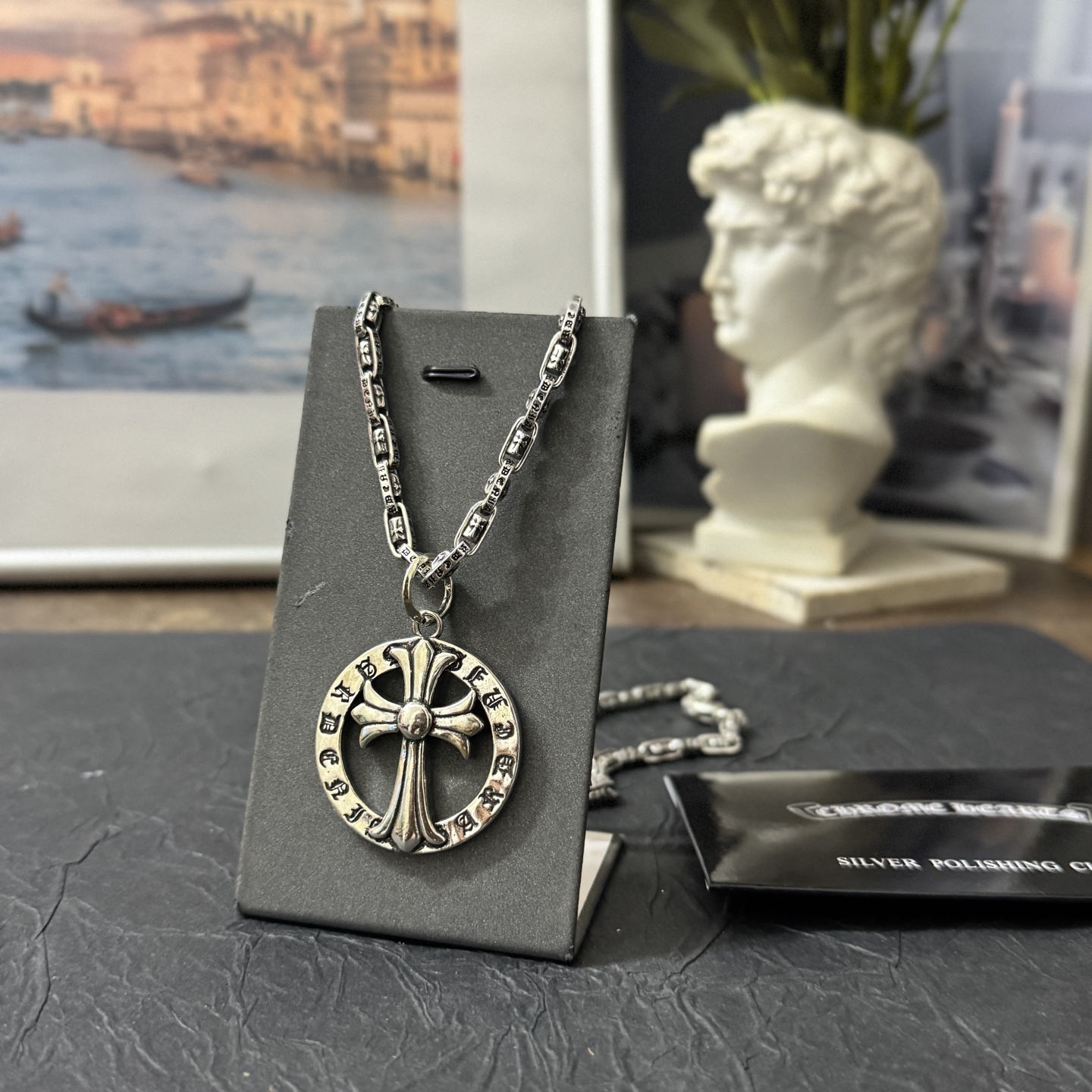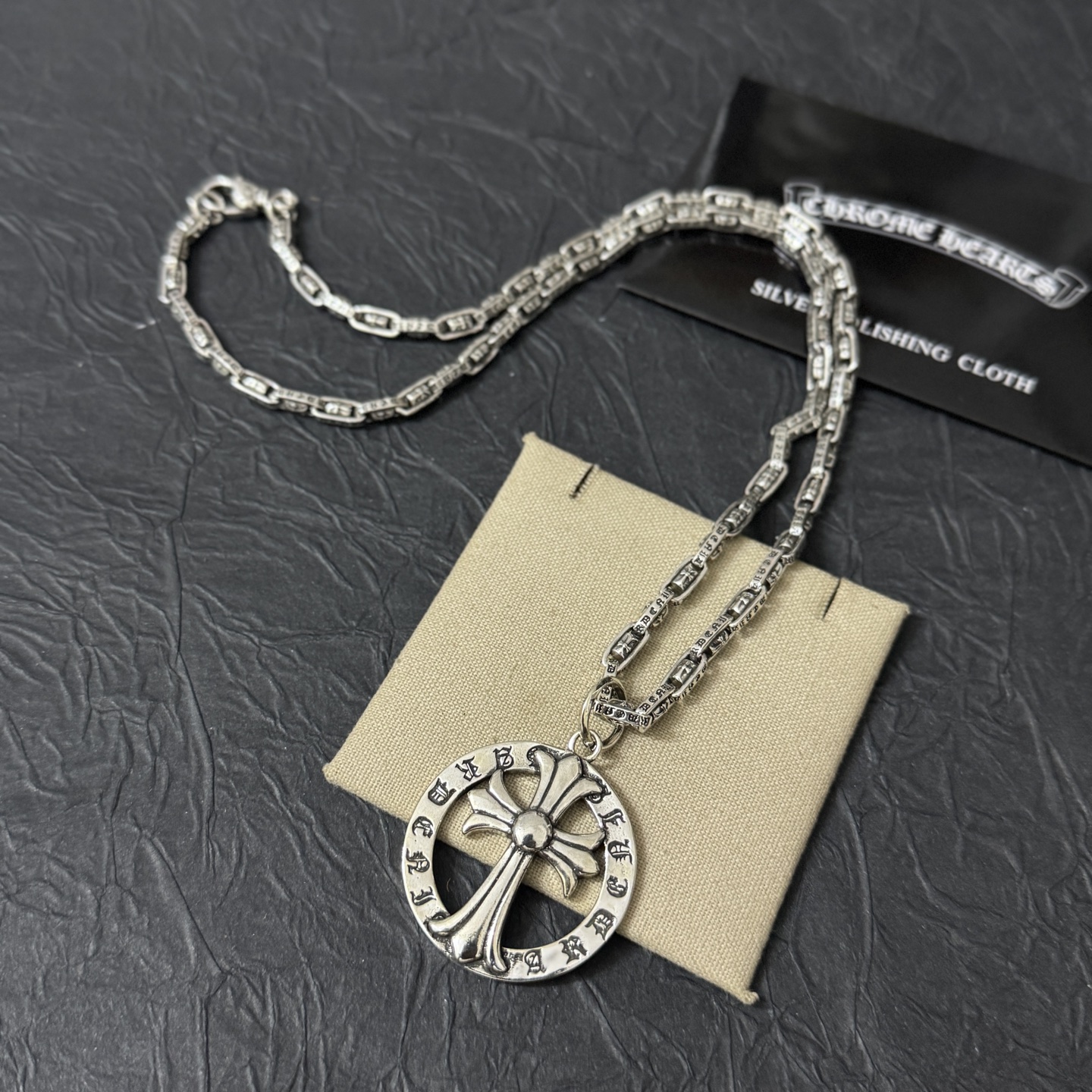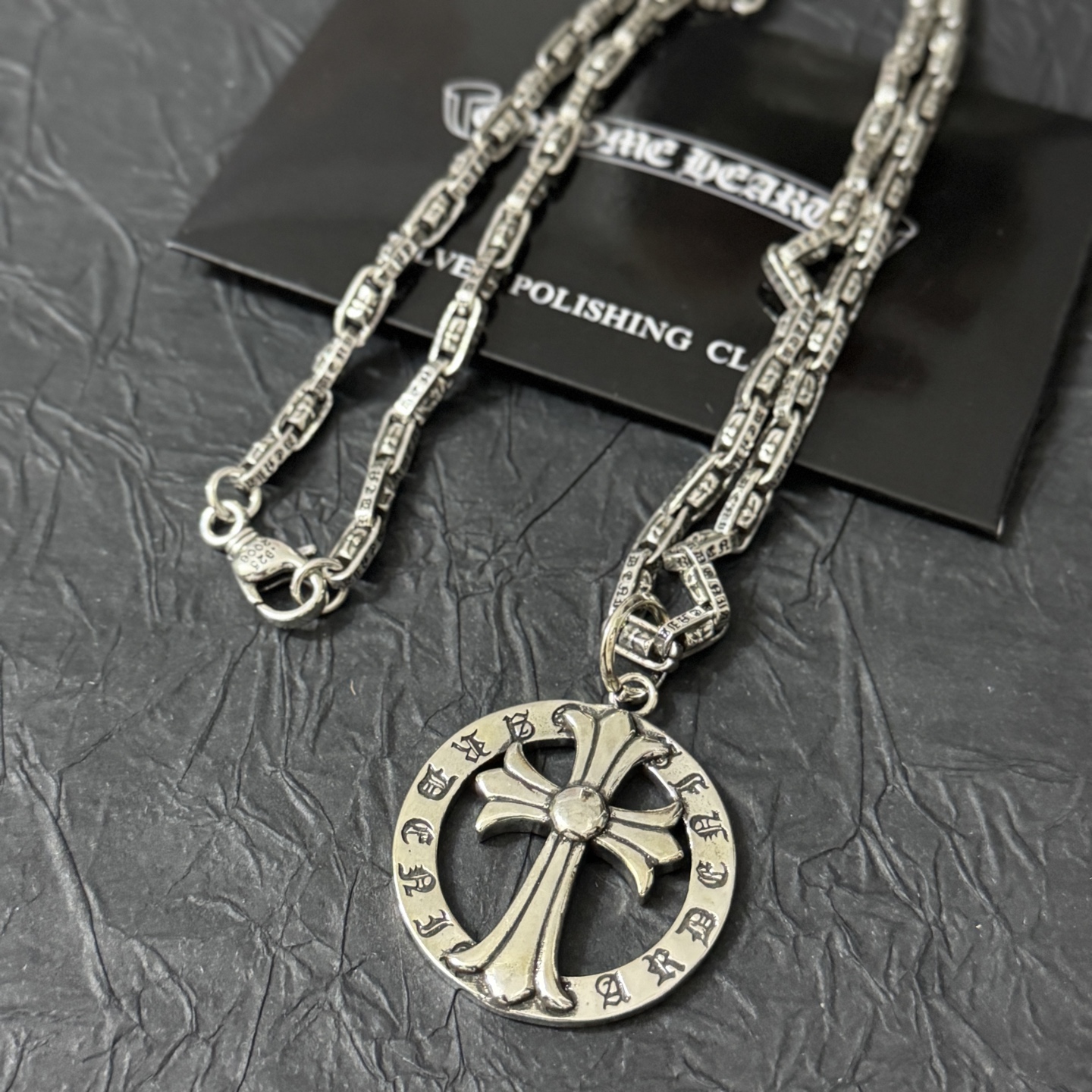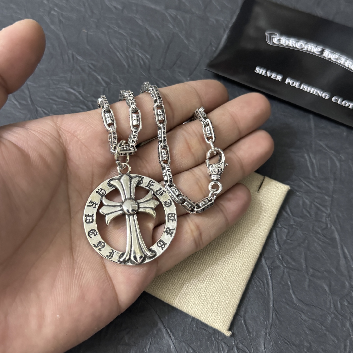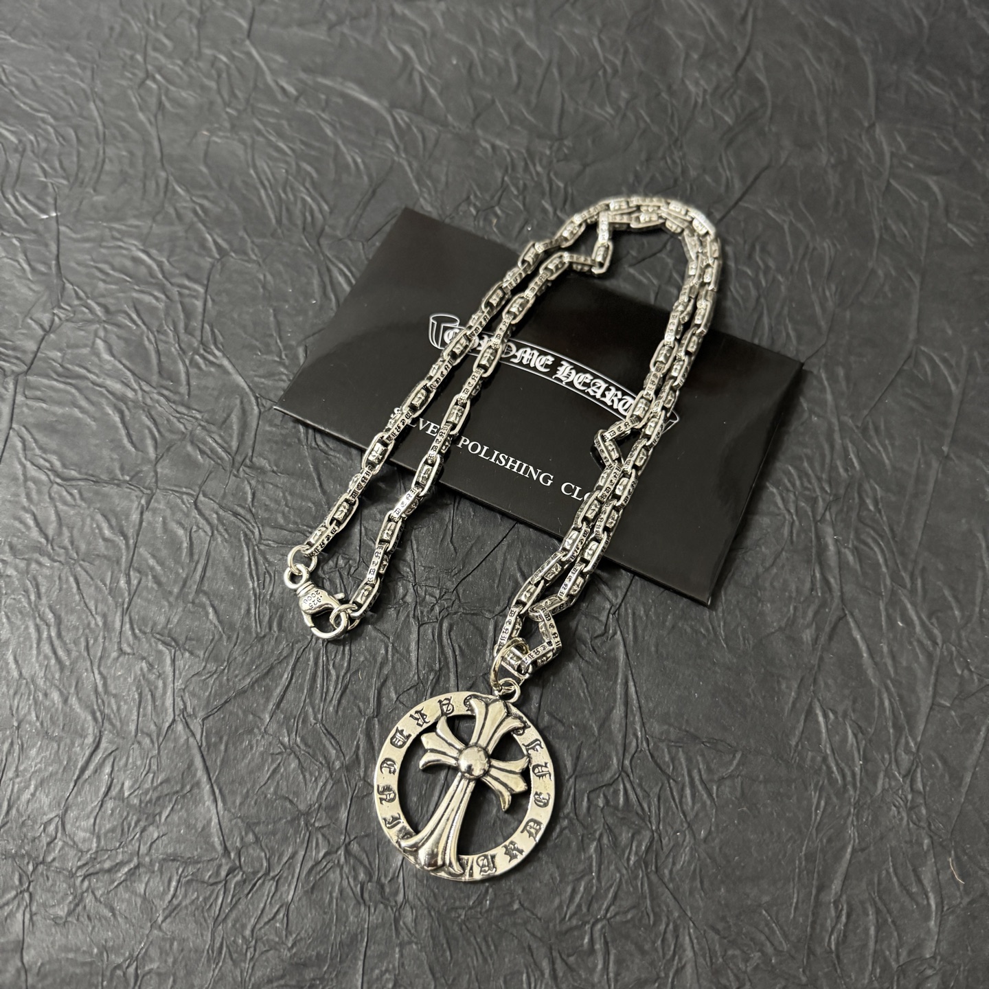 这款首饰是AAAAA 1:1 质量 (非常棒). 使用了和原版一模一样的材料. 商标部分也保持了和克罗心/Chrome Hearts一样. 图片拍摄是实物首饰拍摄, 您所收到的实物保证和我们图片一模一样.