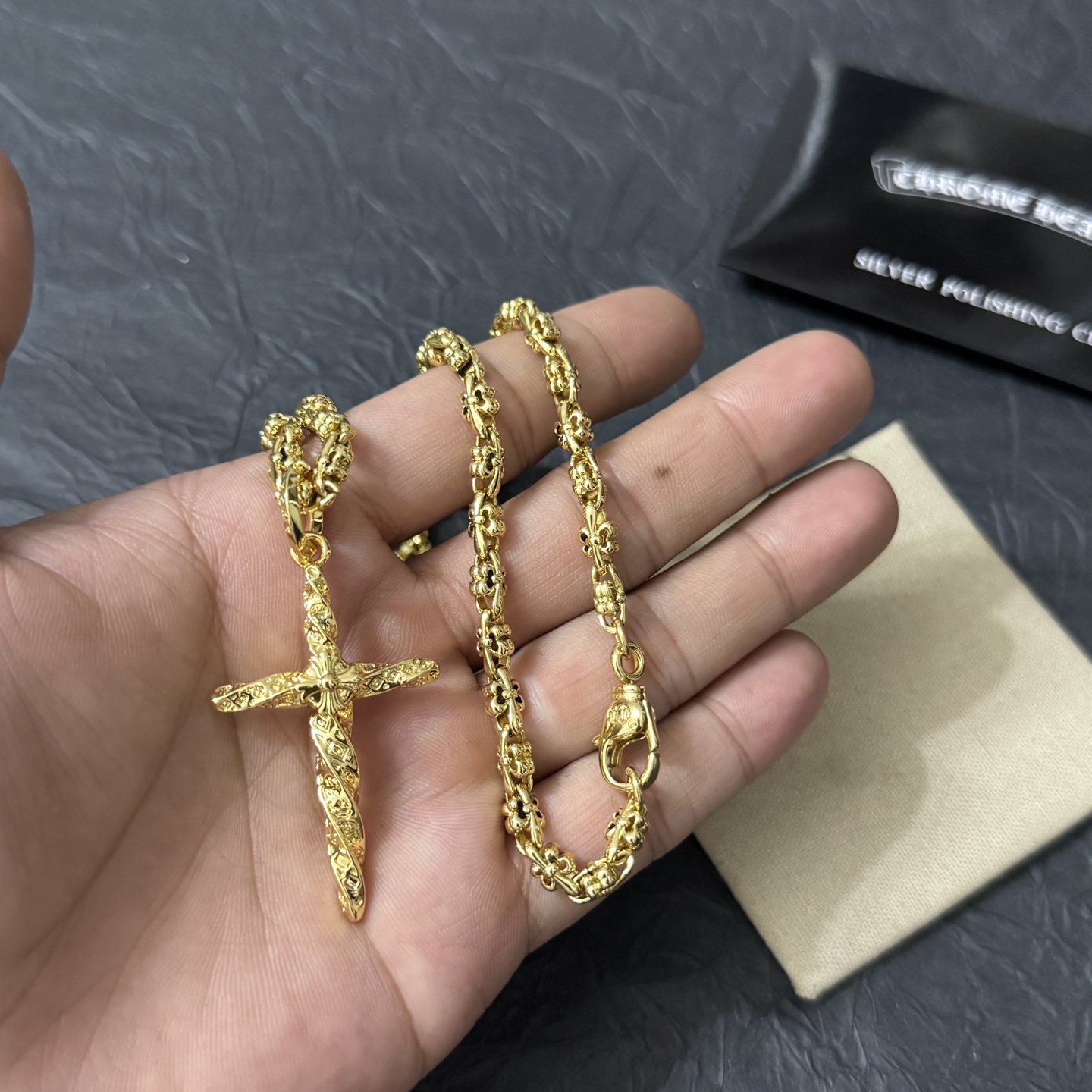 这款首饰是AAAAA 1:1 质量 (非常棒). 使用了和原版一模一样的材料. 商标部分也保持了和克罗心/Chrome Hearts一样. 图片拍摄是实物首饰拍摄, 您所收到的实物保证和我们图片一模一样.