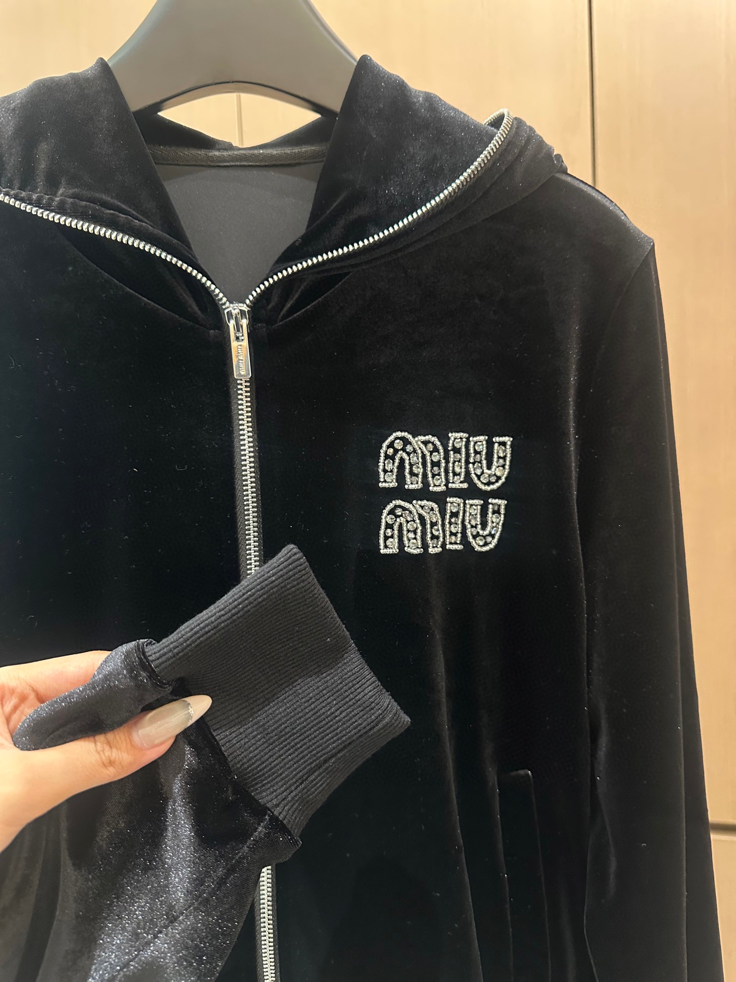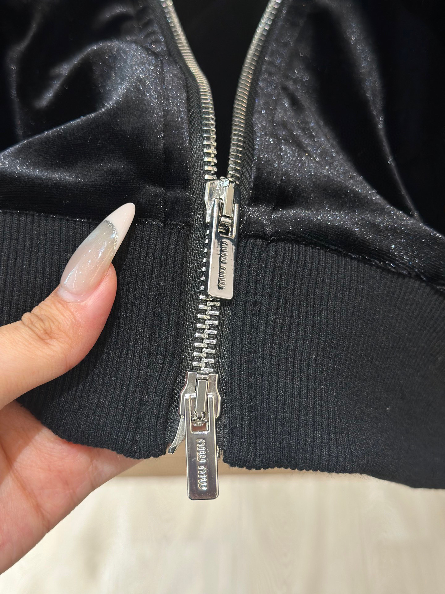 这款衣服是AAAAA 1:1 质量 (非常棒). 使用了和原版一模一样的材料. 商标部分也保持了和缪缪/Miu Miu一样. 图片拍摄是实物衣服拍摄, 您所收到的实物保证和我们图片一模一样.