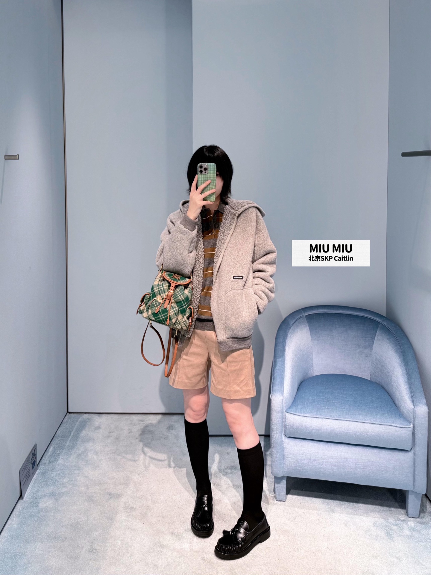 这款衣服是AAAAA 1:1 质量 (非常棒). 使用了和原版一模一样的材料. 商标部分也保持了和缪缪/Miu Miu一样. 图片拍摄是实物衣服拍摄, 您所收到的实物保证和我们图片一模一样.