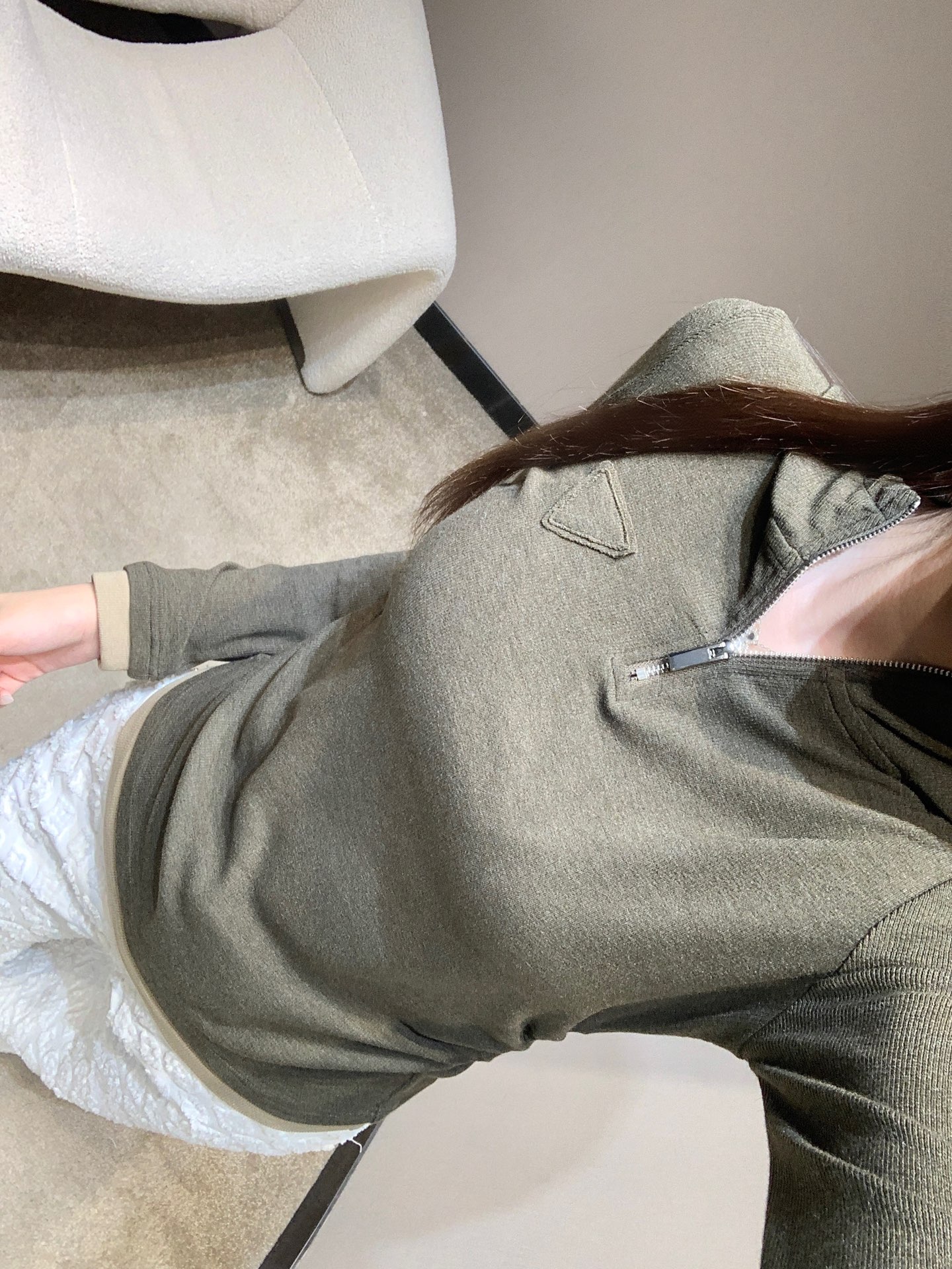 这款衣服是AAAAA 1:1 质量 (非常棒). 使用了和原版一模一样的材料. 商标部分也保持了和普拉达/Prada一样. 图片拍摄是实物衣服拍摄, 您所收到的实物保证和我们图片一模一样.