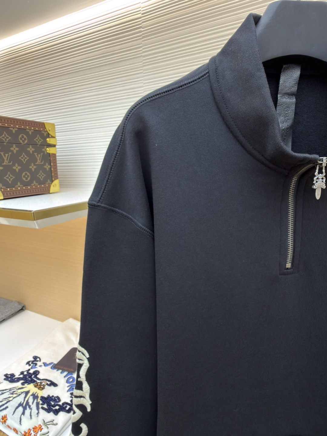 这款衣服是AAAAA 1:1 质量 (非常棒). 使用了和原版一模一样的材料. 商标部分也保持了和克罗心/Chrome Hearts一样. 图片拍摄是实物衣服拍摄, 您所收到的实物保证和我们图片一模一样.