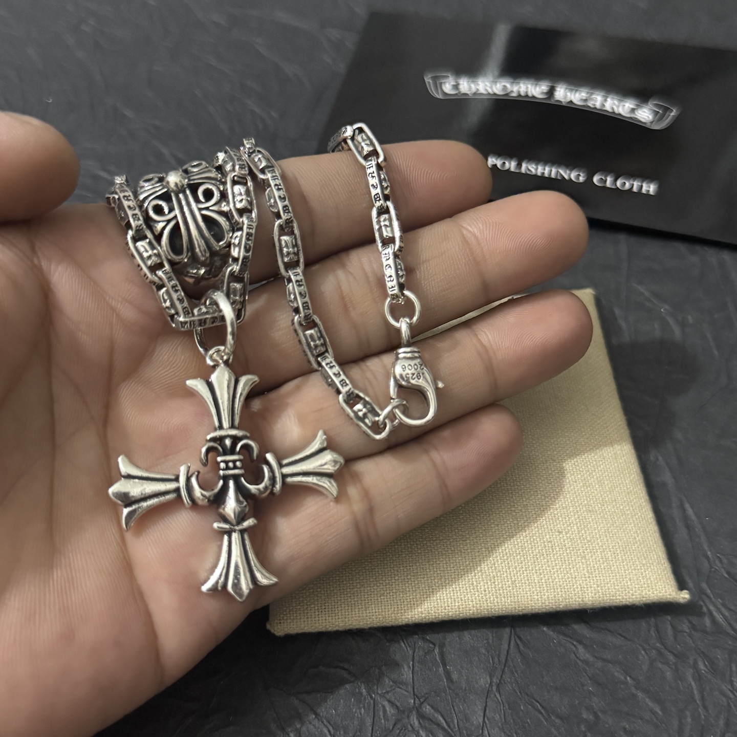 这款首饰是AAAAA 1:1 质量 (非常棒). 使用了和原版一模一样的材料. 商标部分也保持了和克罗心/Chrome Hearts一样. 图片拍摄是实物首饰拍摄, 您所收到的实物保证和我们图片一模一样.