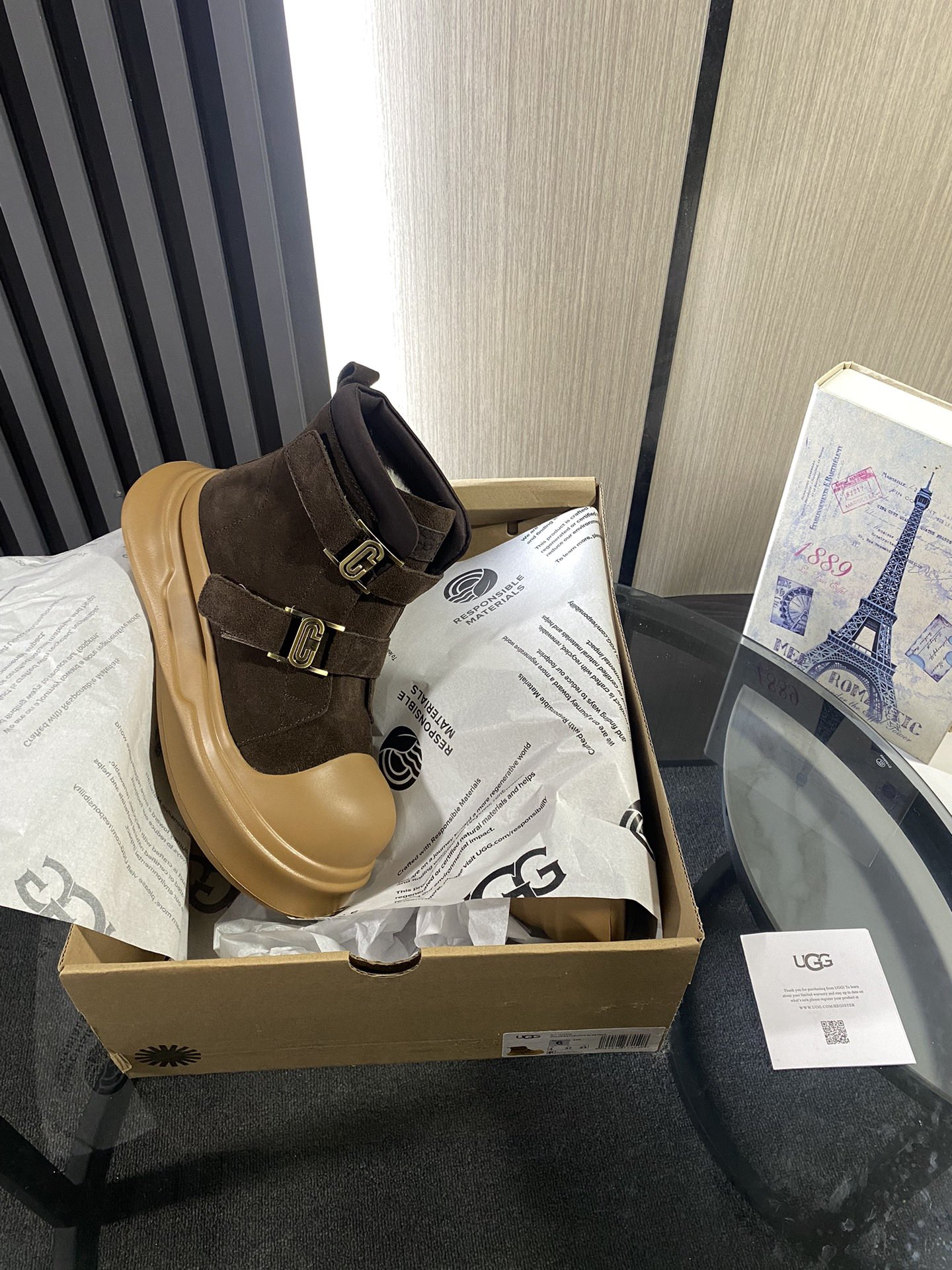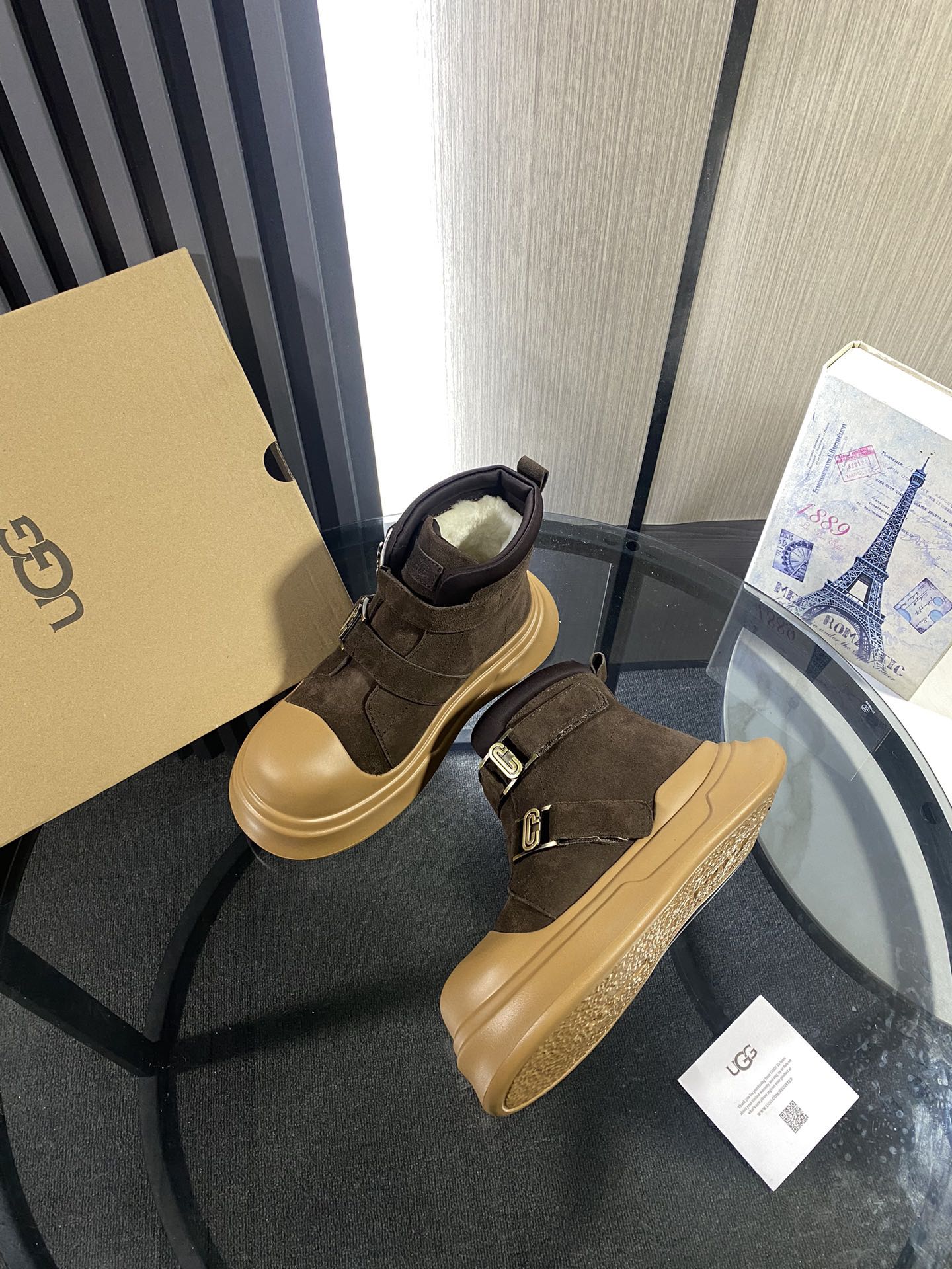这款鞋子是AAAAA 1:1 质量 (非常棒). 使用了和原版一模一样的材料. 商标部分也保持了和UGG雪地靴一样. 图片拍摄是实物鞋子拍摄, 您所收到的实物保证和我们图片一模一样.