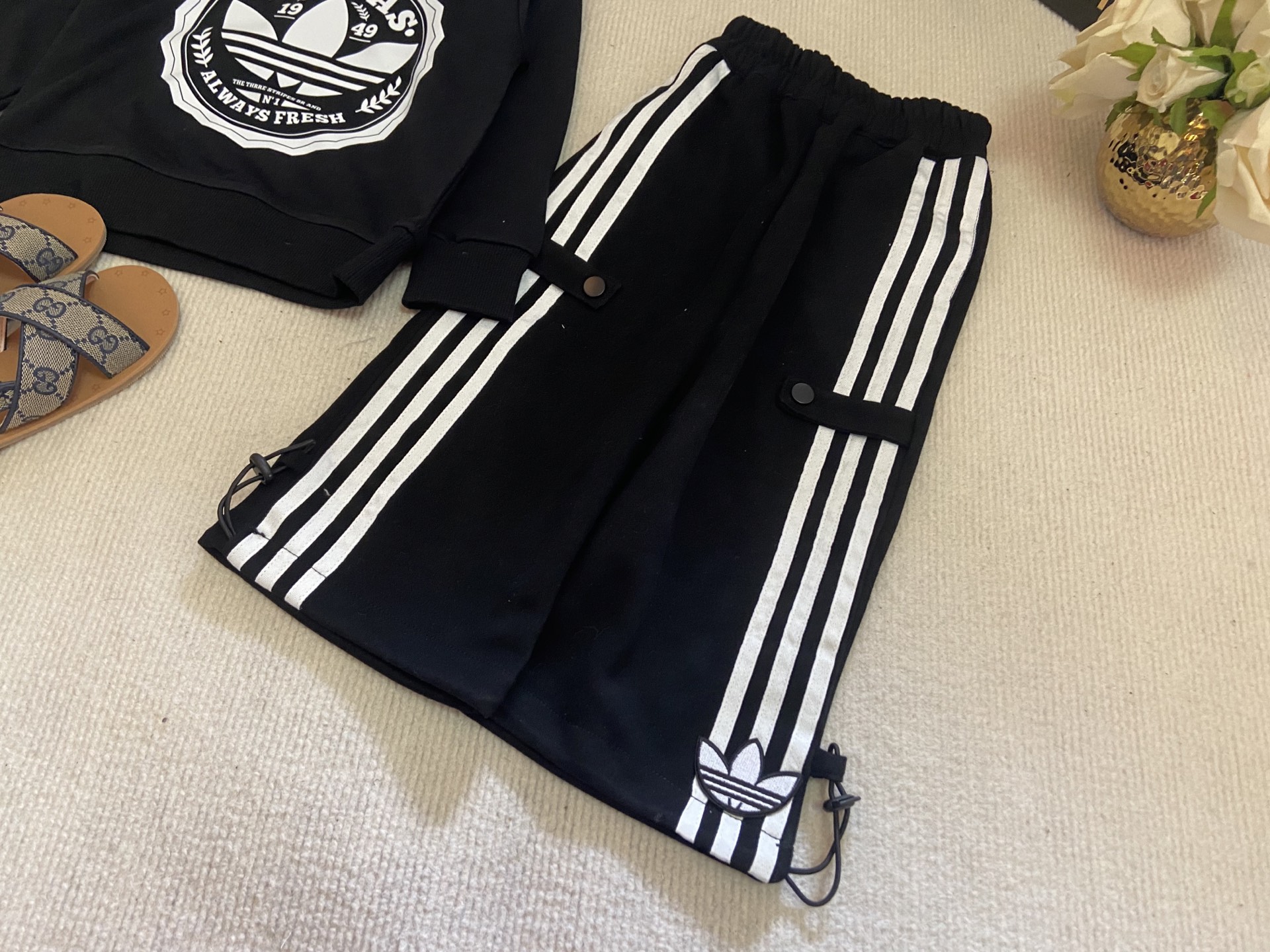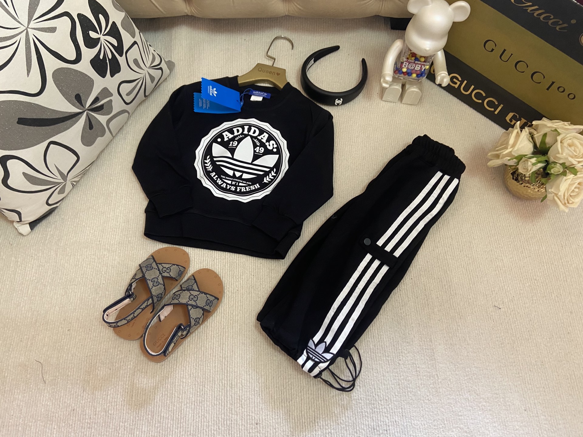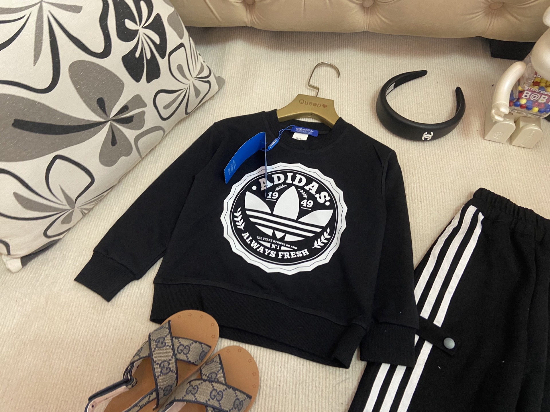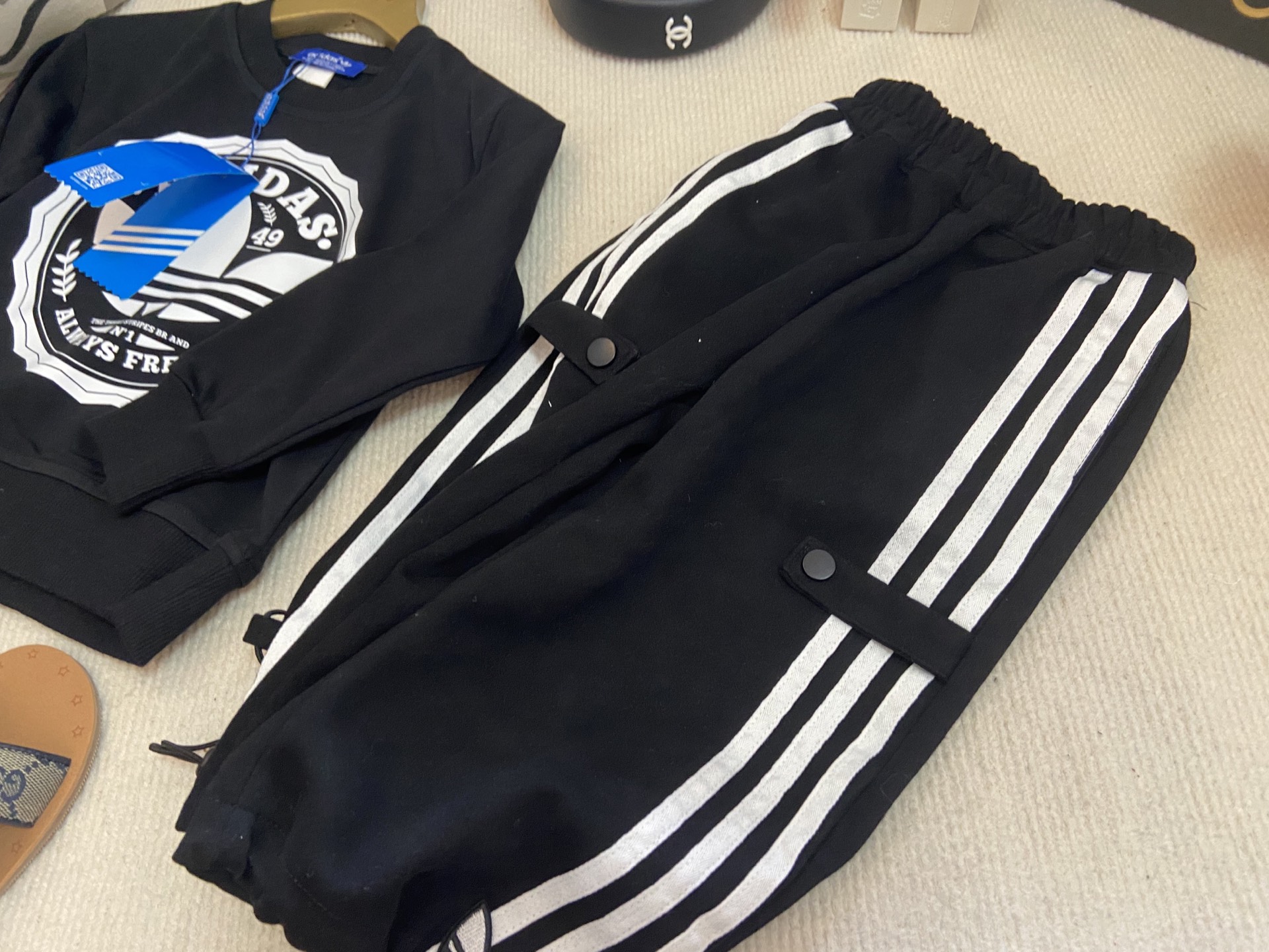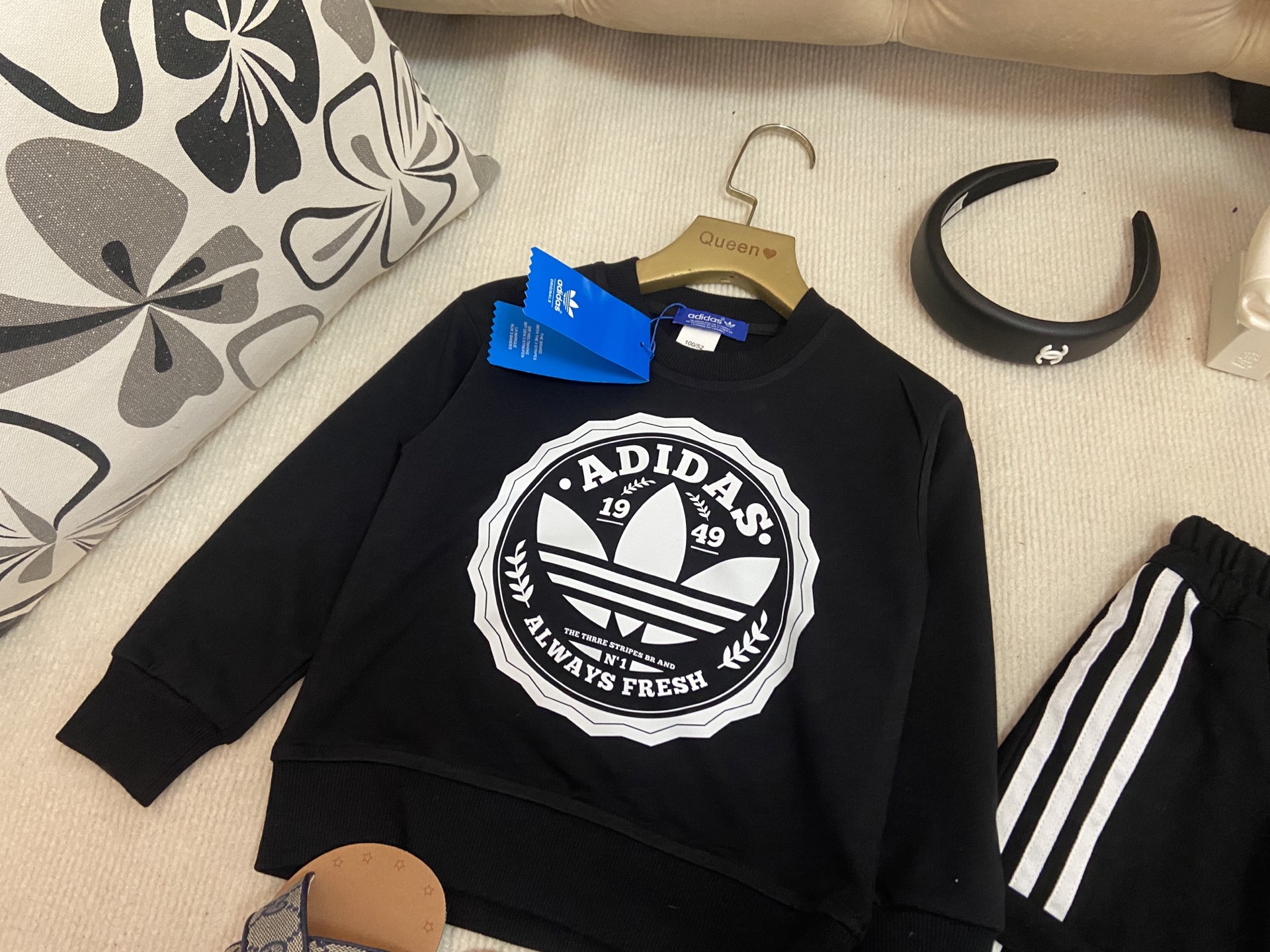 这款children's clothes是AAAAA 1:1 质量 (非常棒). 使用了和原版一模一样的材料. 商标部分也保持了和阿迪达斯/Adidas一样. 图片拍摄是实物children's clothes拍摄, 您所收到的实物保证和我们图片一模一样.
