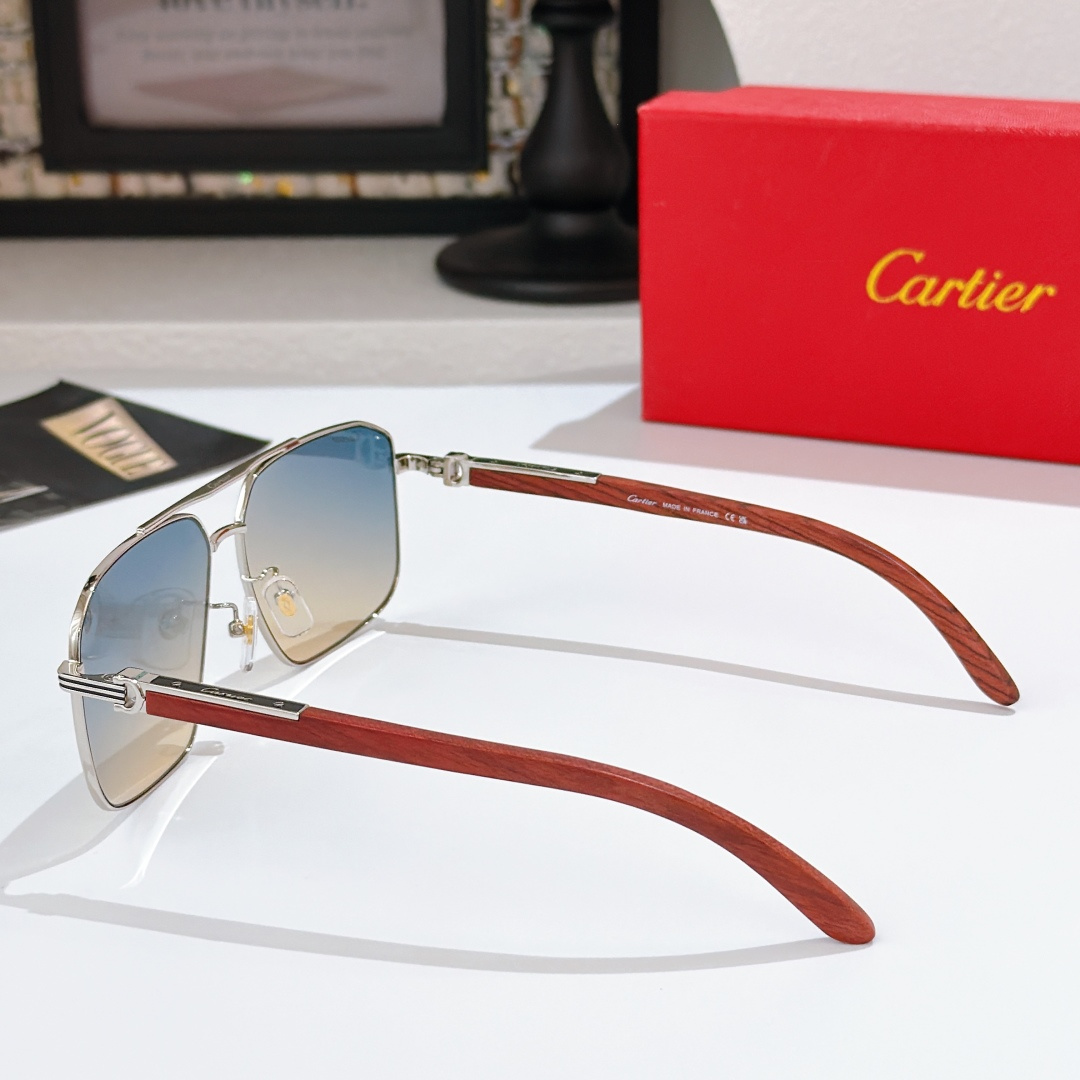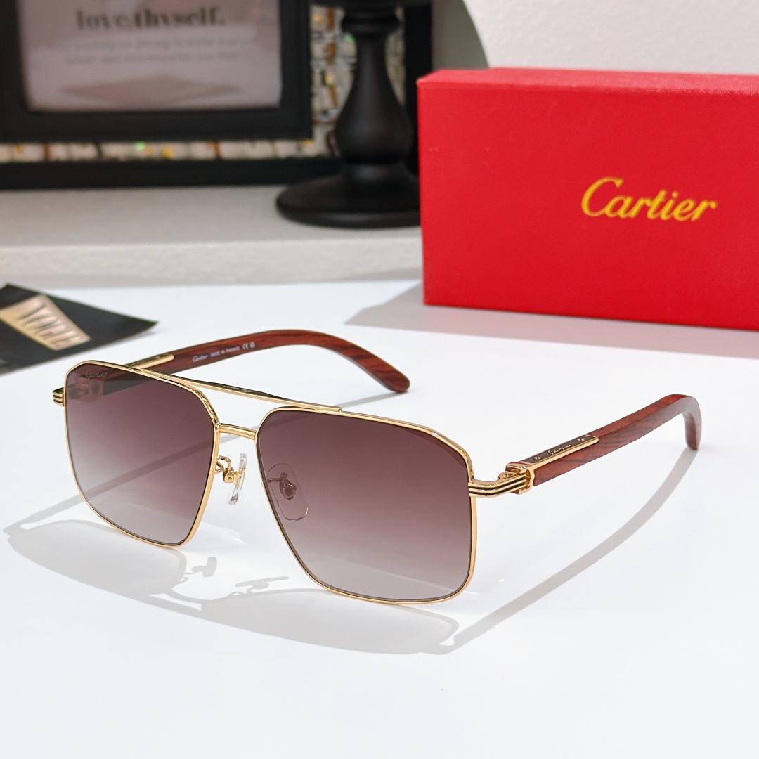 这款太阳眼镜是AAAAA 1:1 质量 (非常棒). 使用了和原版一模一样的材料. 商标部分也保持了和卡地亚/Cartier一样. 图片拍摄是实物太阳眼镜拍摄, 您所收到的实物保证和我们图片一模一样.